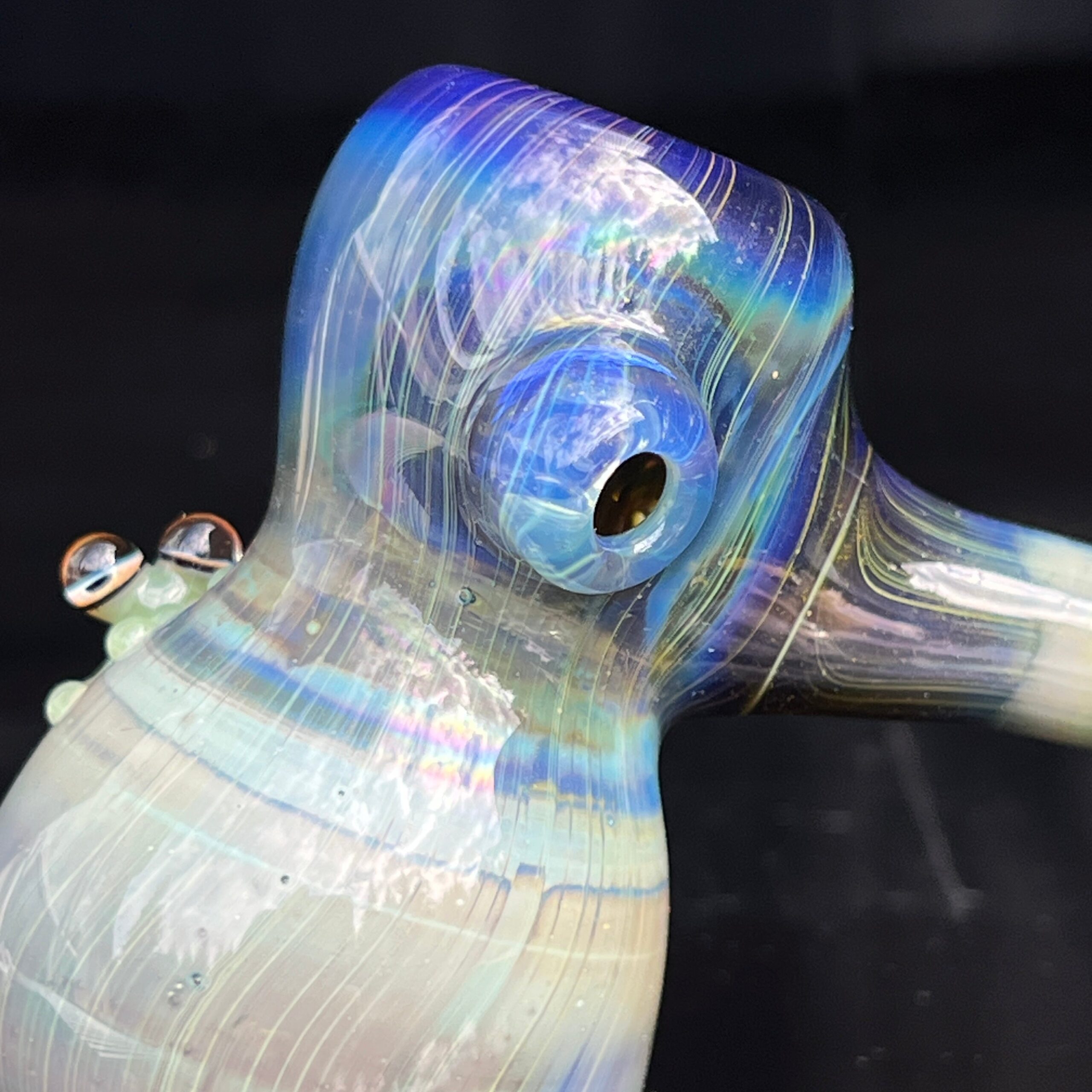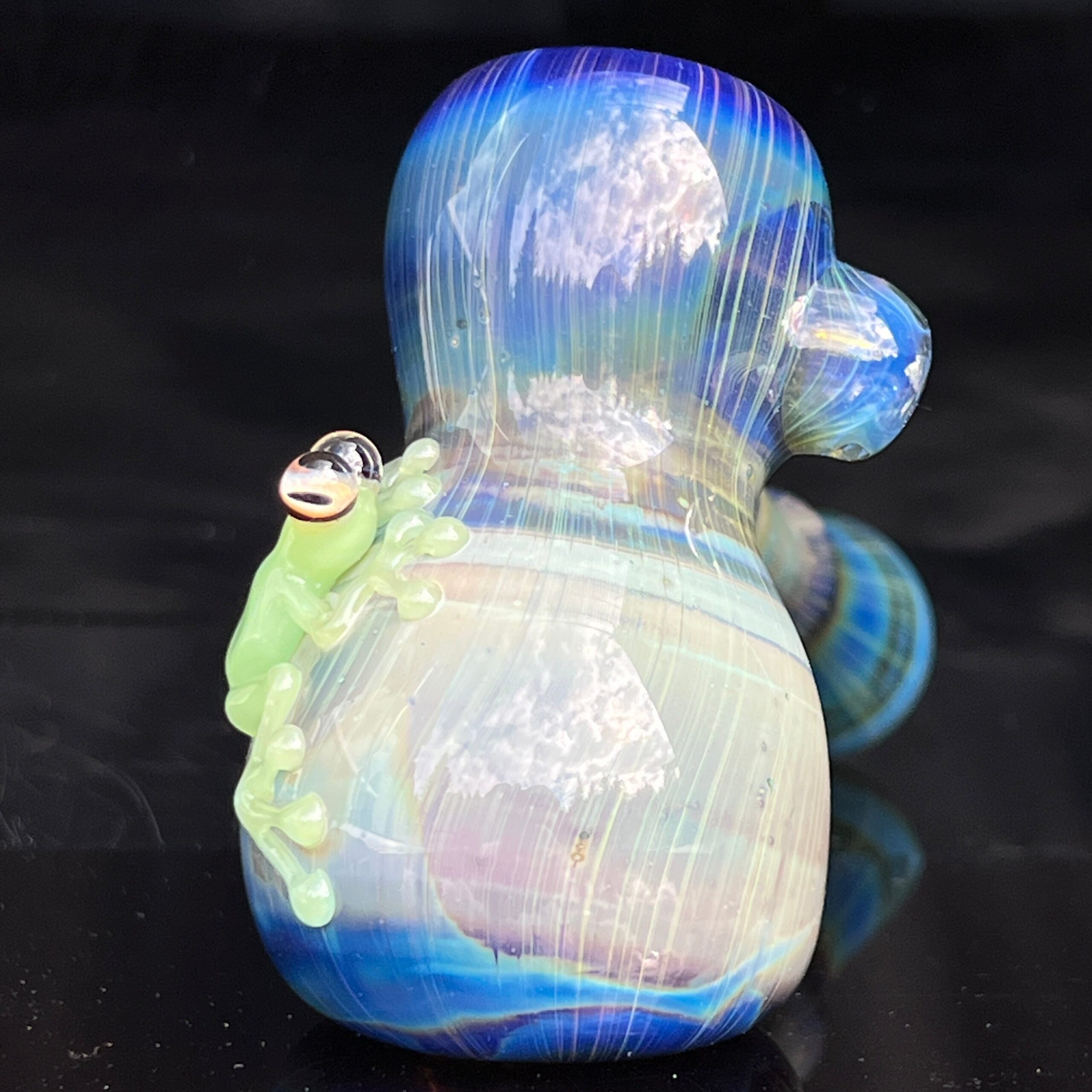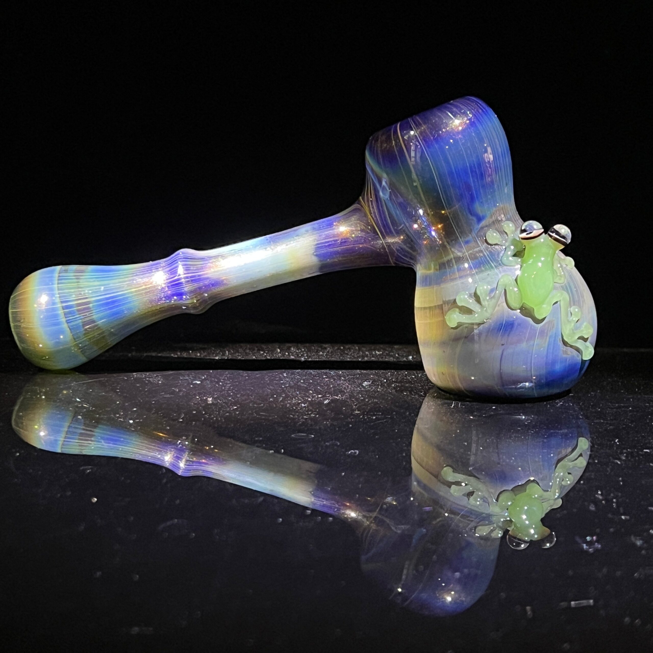 - Color-Changing Glass: The Adventure Frog Hammer is not just aesthetically pleasing; it’s dynamic. The glass develops deeper, more vibrant colors over time, creating a unique piece that evolves with you.