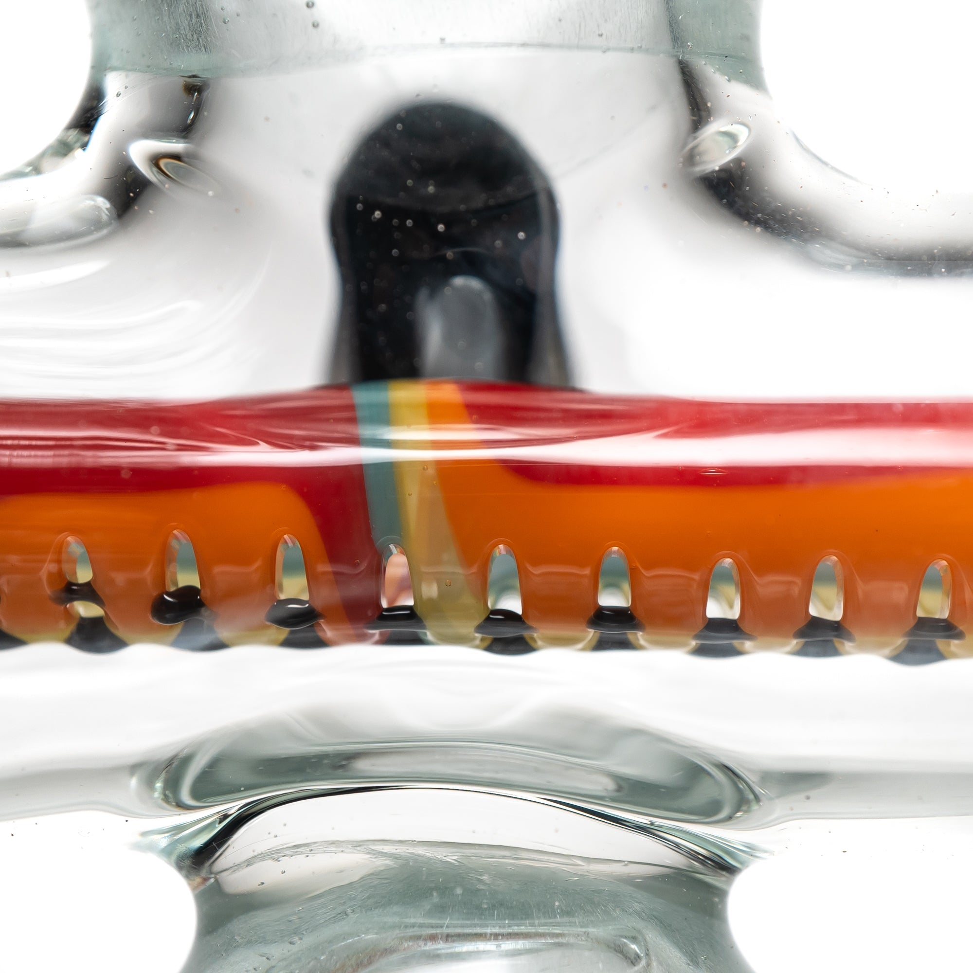 Tired of harsh hits and lackluster flavor from your dab rig? Prepare to experience a revolution in smooth, flavorful extraction with the Ben Wilson – Triple Donut Inline – Smokey Green Satin & Multi-Color Linework.