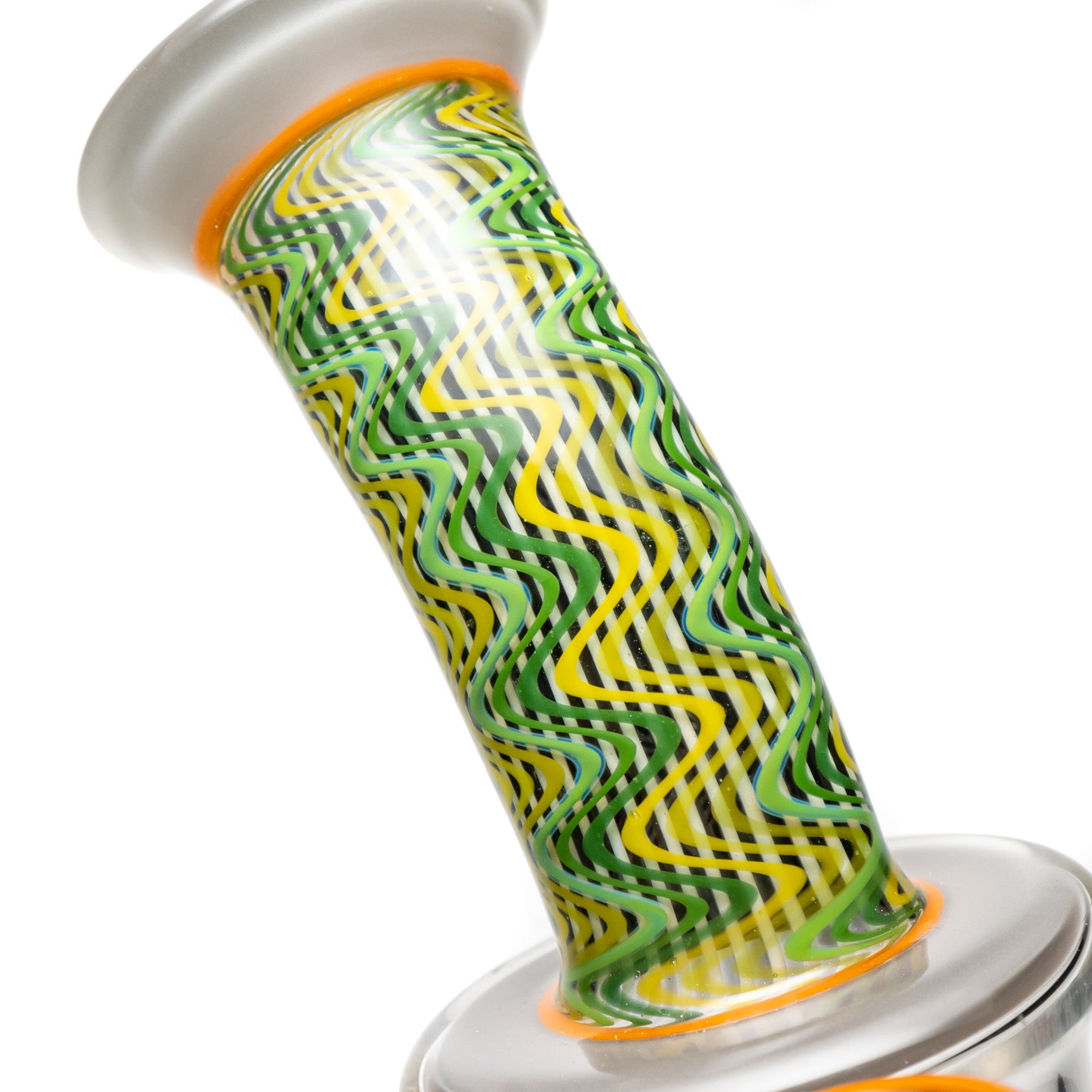 The Ben Wilson x Leisure – Hollow Foot Inline Recycler is meticulously crafted from high-quality borosilicate glass, known for its durability and heat resistance. Its dimensions of approximately 9″ in height and 3.5″ base width make it both functional and aesthetically pleasing. Always practice safe usage; never leave unattended, and keep out of reach of children.