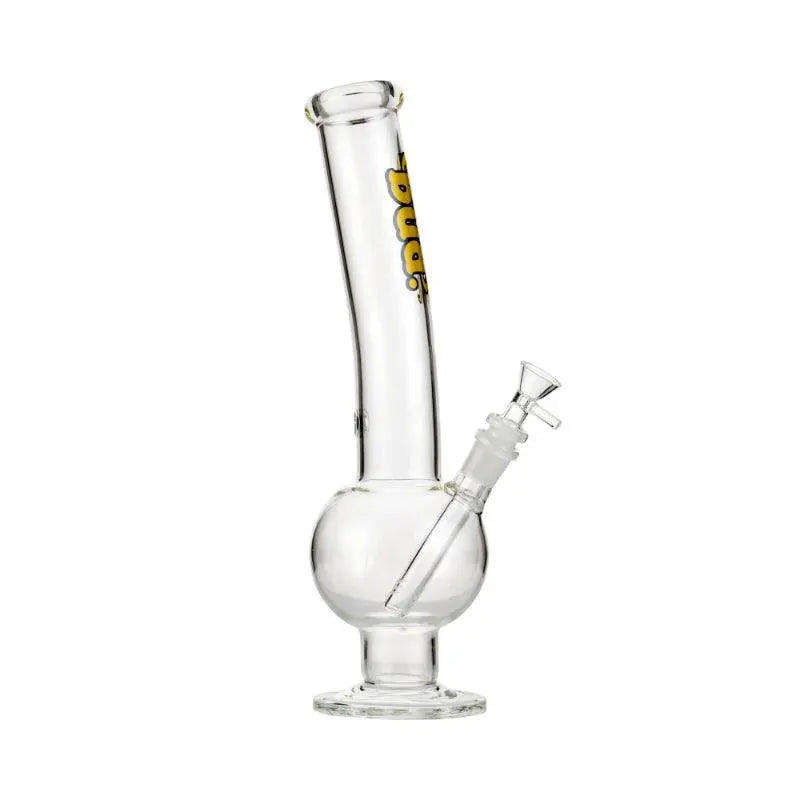 This masterfully crafted 33cm glass bong is the ultimate solution for those seeking an exceptional smoke. Made from high-quality borosilicate glass, this bubble bong features a unique bent neck design that not only adds style but also provides a superior grip for enhanced control. The wide, bulbous water chamber ensures full-bodied, flavorful hits with every inhale, while the carb hole allows for precise control over your smoking experience. With a stable flat base, you can enjoy your sessions without worrying about tipping over. To top it off, the Bud Bent Bubble Bong comes complete with a diffuser downstem and cone piece, making it perfect for both casual and daily smokers.