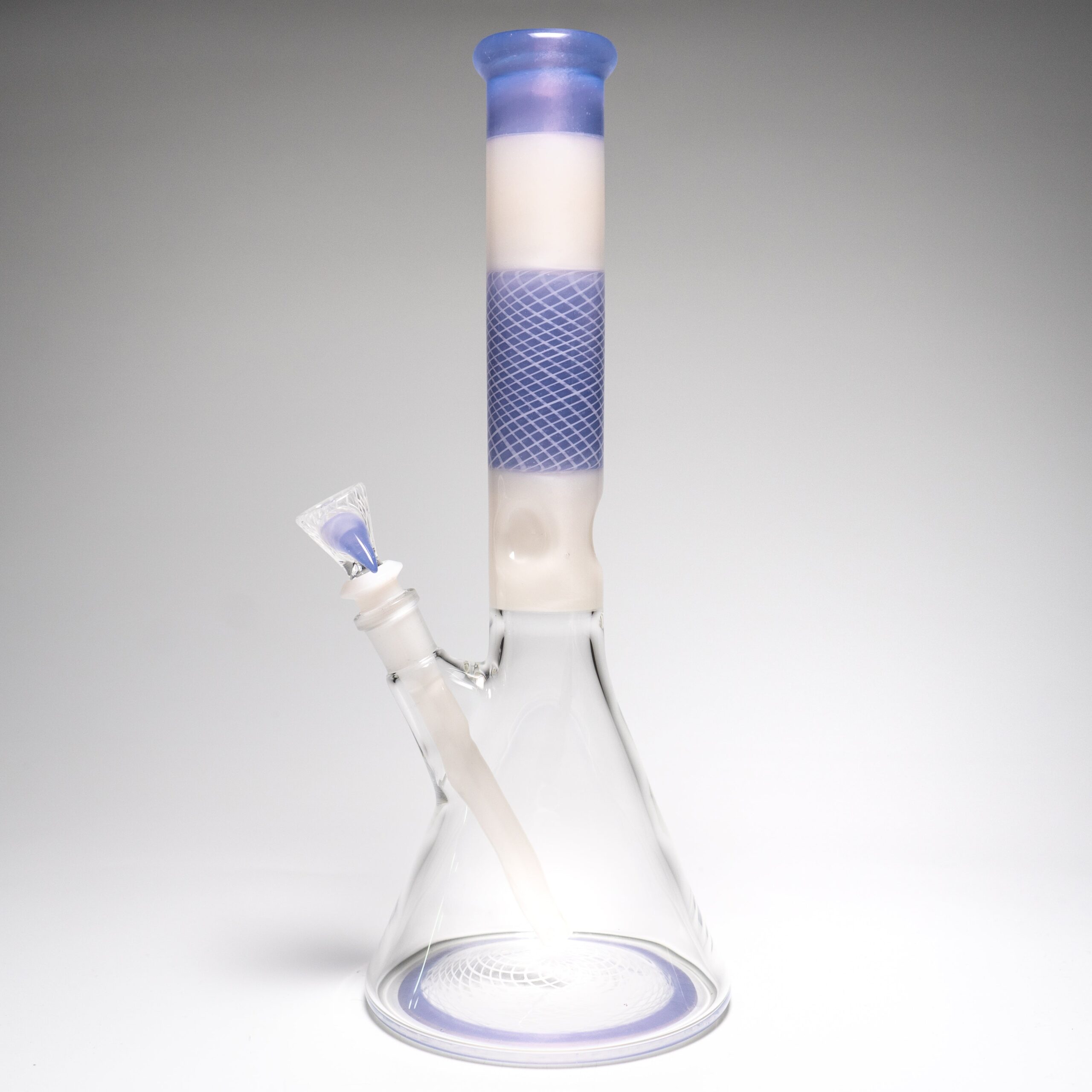 Design: Unique Worked Beaker design with Purple/White Satin and UV Reactive Retticello sections.