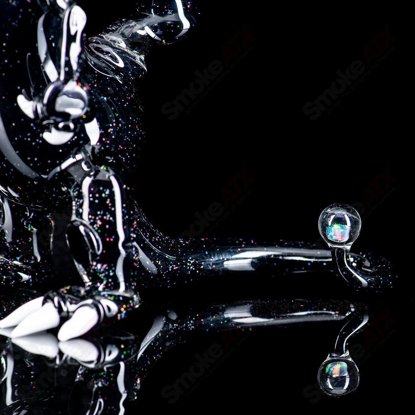 Dimensions: 14mm mouthpiece, 9″ height. Materials: High-quality Hendy glass. Design: Unique Crushed Opal design.