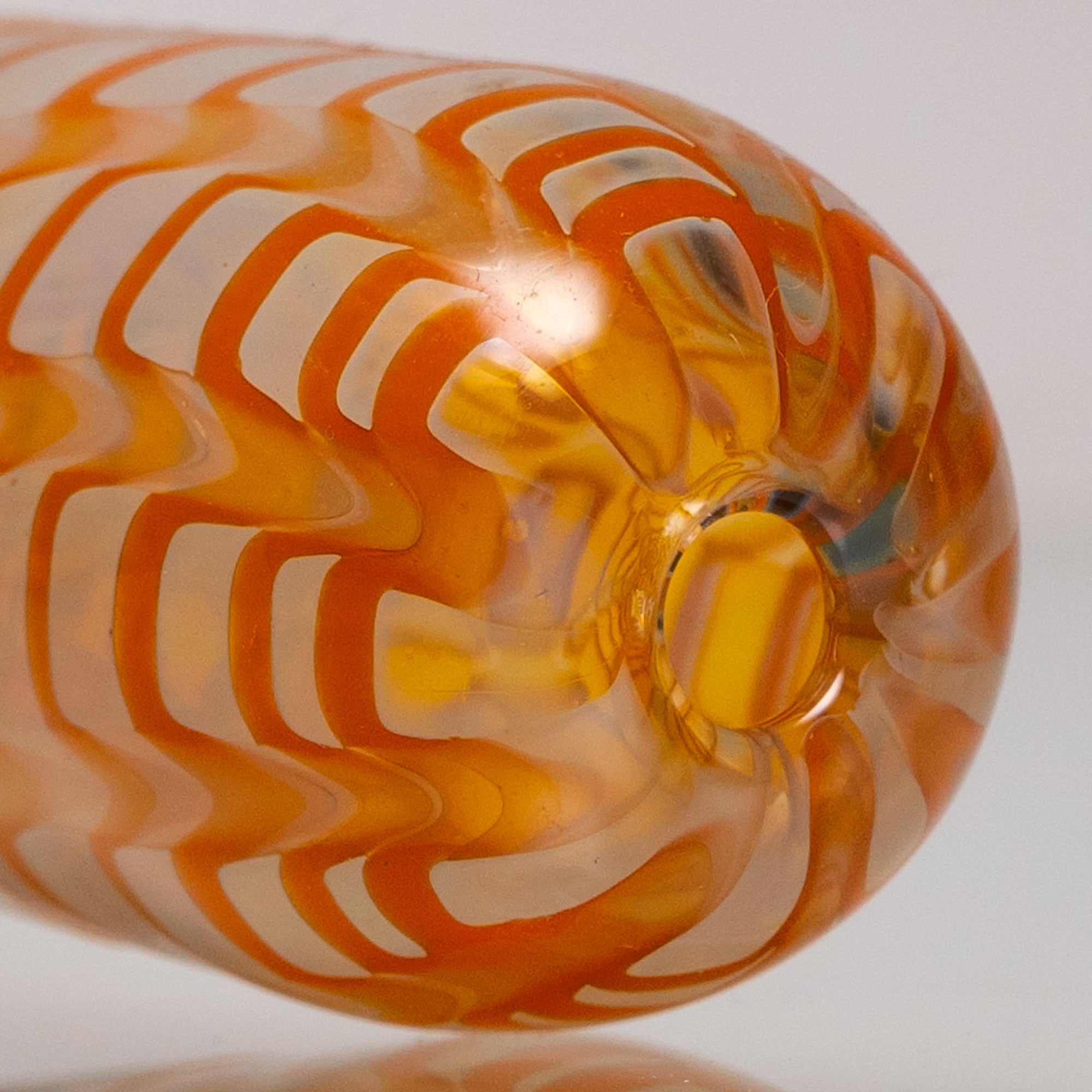 Design: Unique fume and rake technique with orange coloration. The swirling design is unique to each piece.