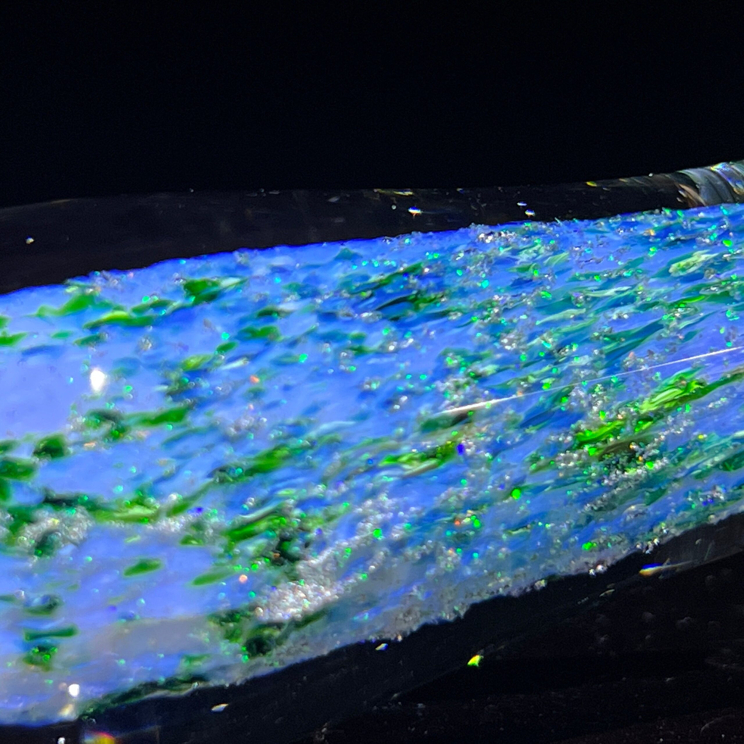 Materials: High-quality clear glass, pure silver, crushed opals.
