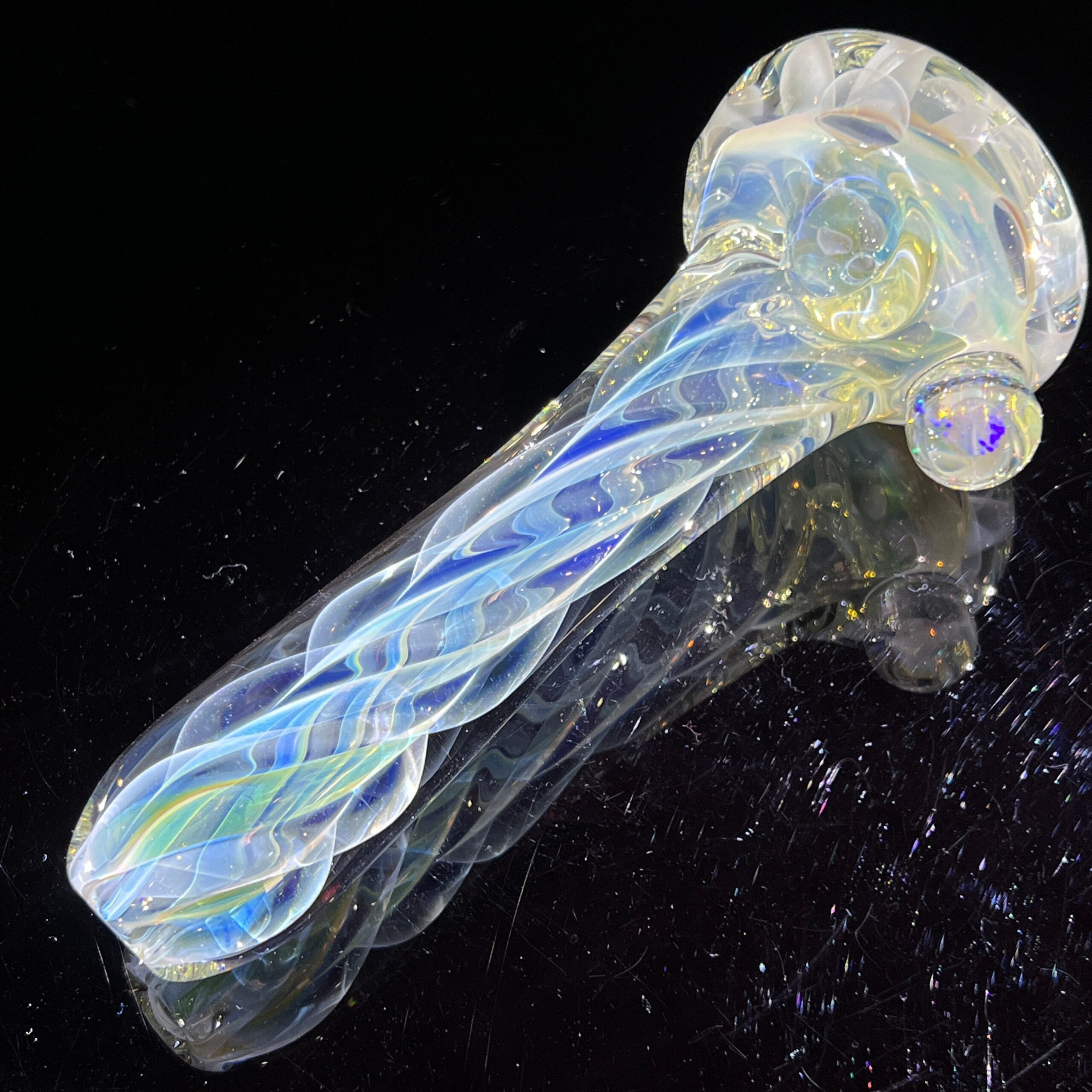 - Color-Changing Glass: The glass subtly alters its hue with use, transitioning from beautiful yellows to silvery, electric blues, and a spectrum of colors in between. Benefit: Watch your pipe evolve and develop a unique patina, reflecting your personal journey with the piece.