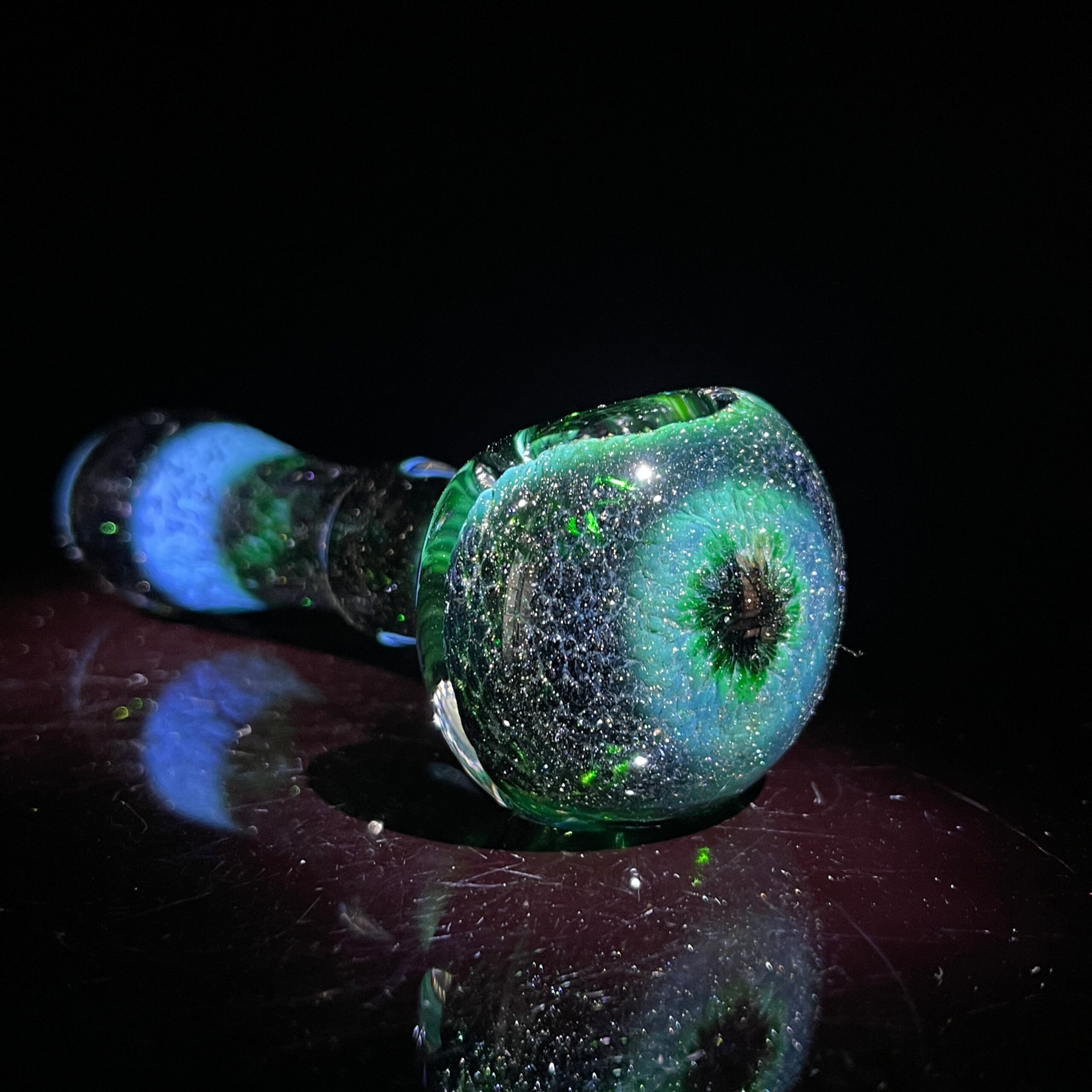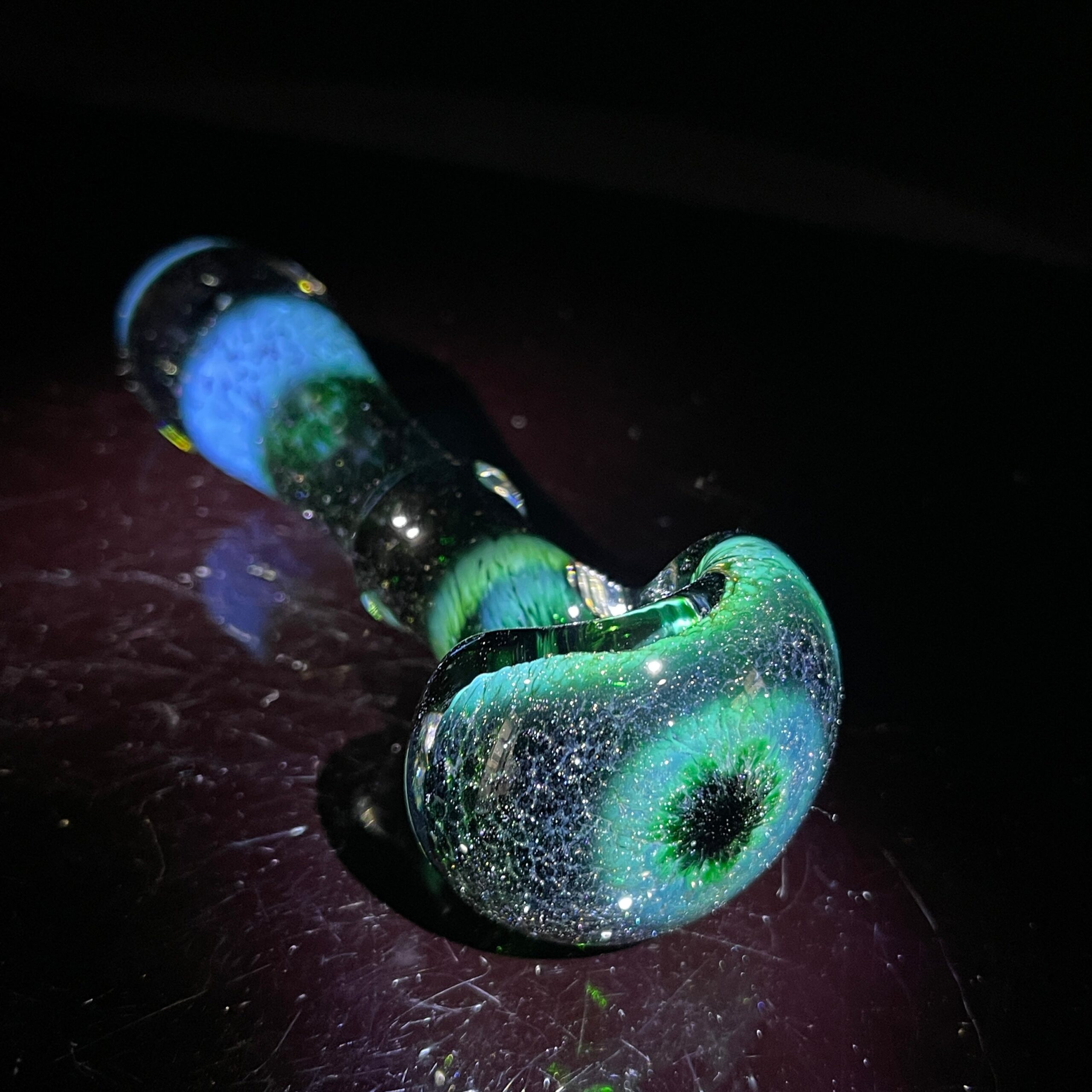 The Experimental Jade Pipe isn’t just a pipe; it’s a statement. This epic green frit pipe, crafted by Beezy, is like holding a piece of the lush Hawaiian rainforest in your hand. Its vibrant green hue, achieved through a unique fritting technique, is unlike anything you’ve seen before. Imagine sprinkling magical stardust onto glass – that’s the essence of fritting, resulting in a textured, earthy finish that’s both visually stunning and delightfully tactile.