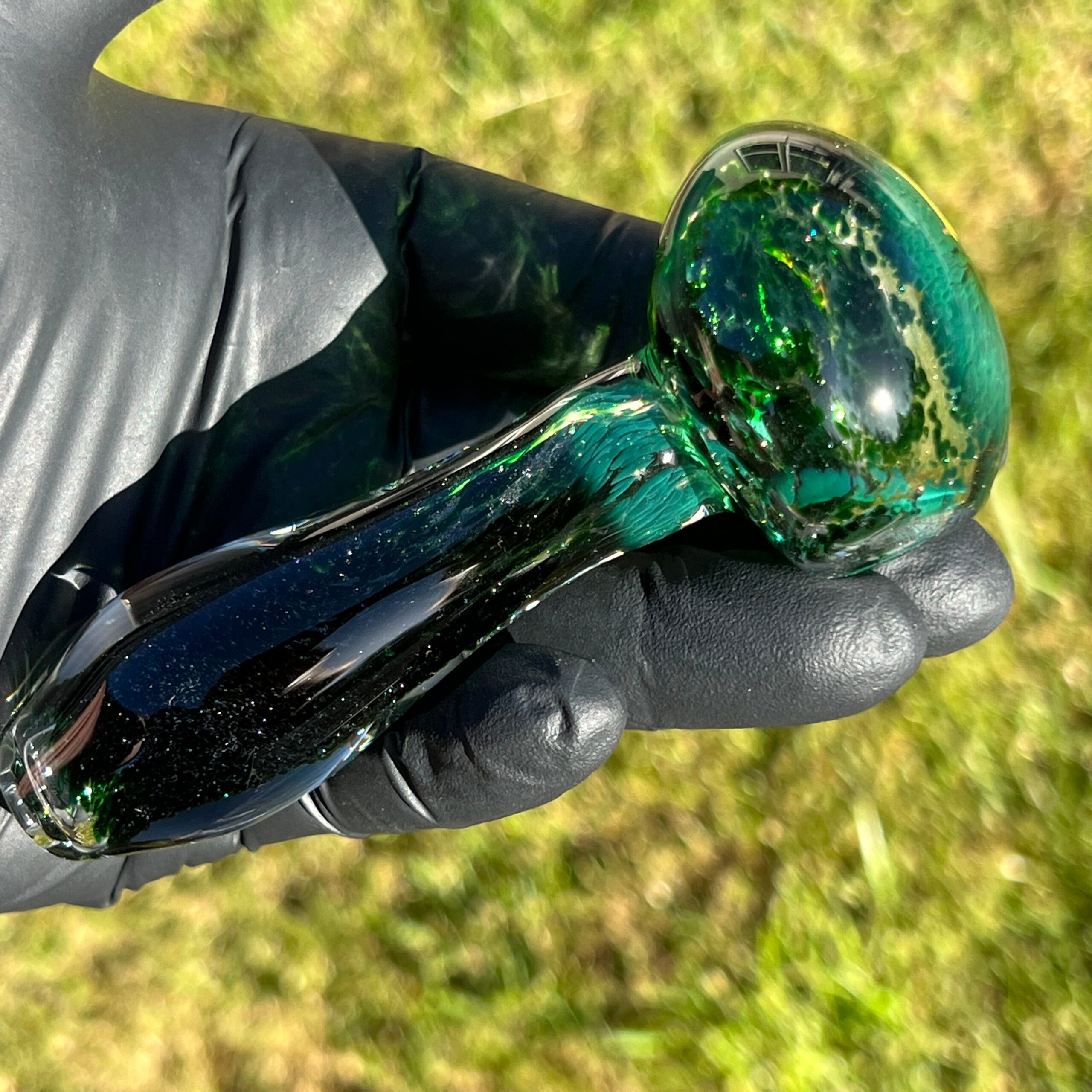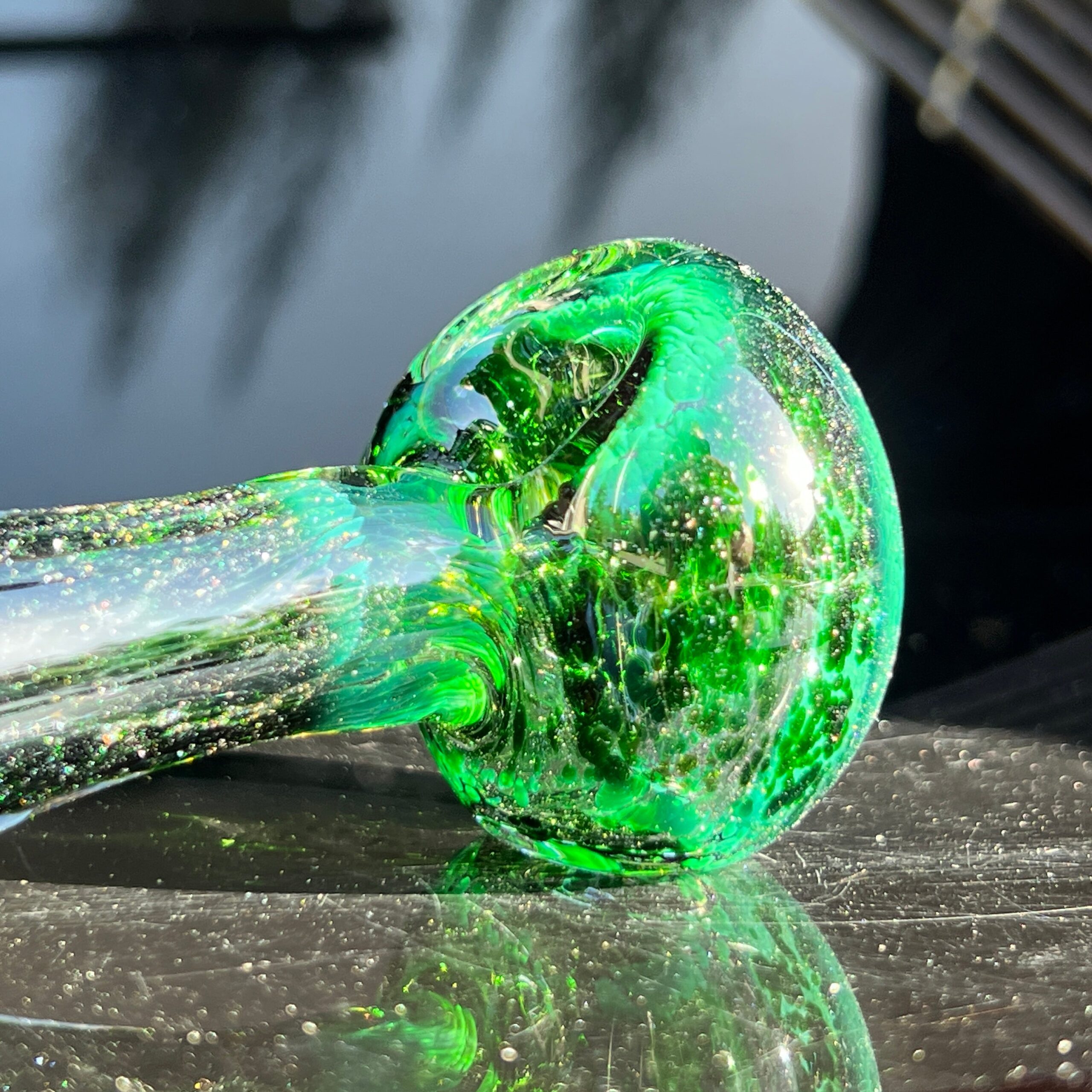 - Stunning Fritted Glass: Beezy’s signature fritting technique creates a mesmerizing, textured green glass infused with colorful sparkles. This isn’t your average, smooth glass pipe. The fritting process adds depth and visual interest, making this pipe a conversation starter. Benefit: Unique, eye-catching design that sets it apart from mass-produced pipes.