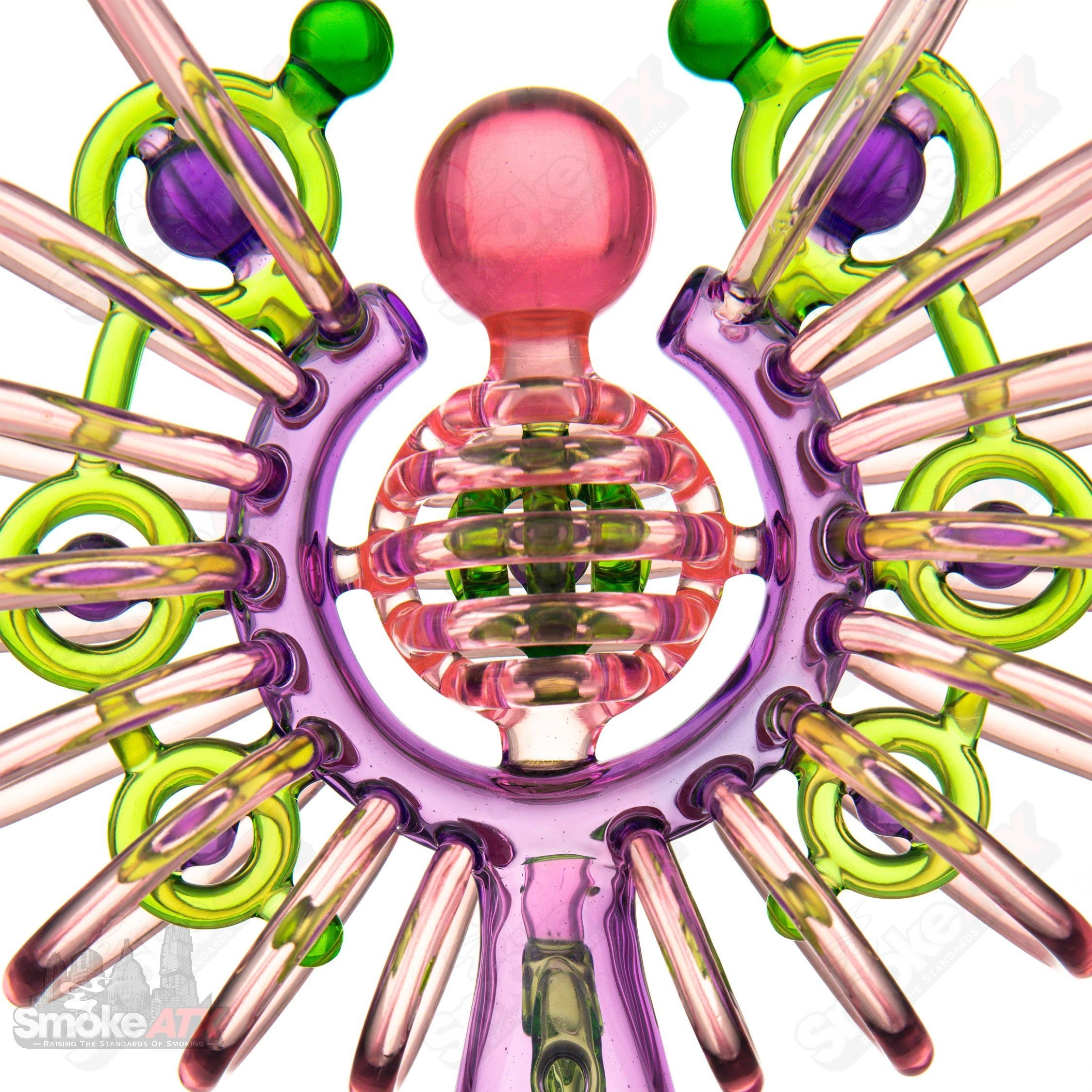 - Design: Multi-dimensional spherical chamber, three-holed inverted percolator, 14mm joint