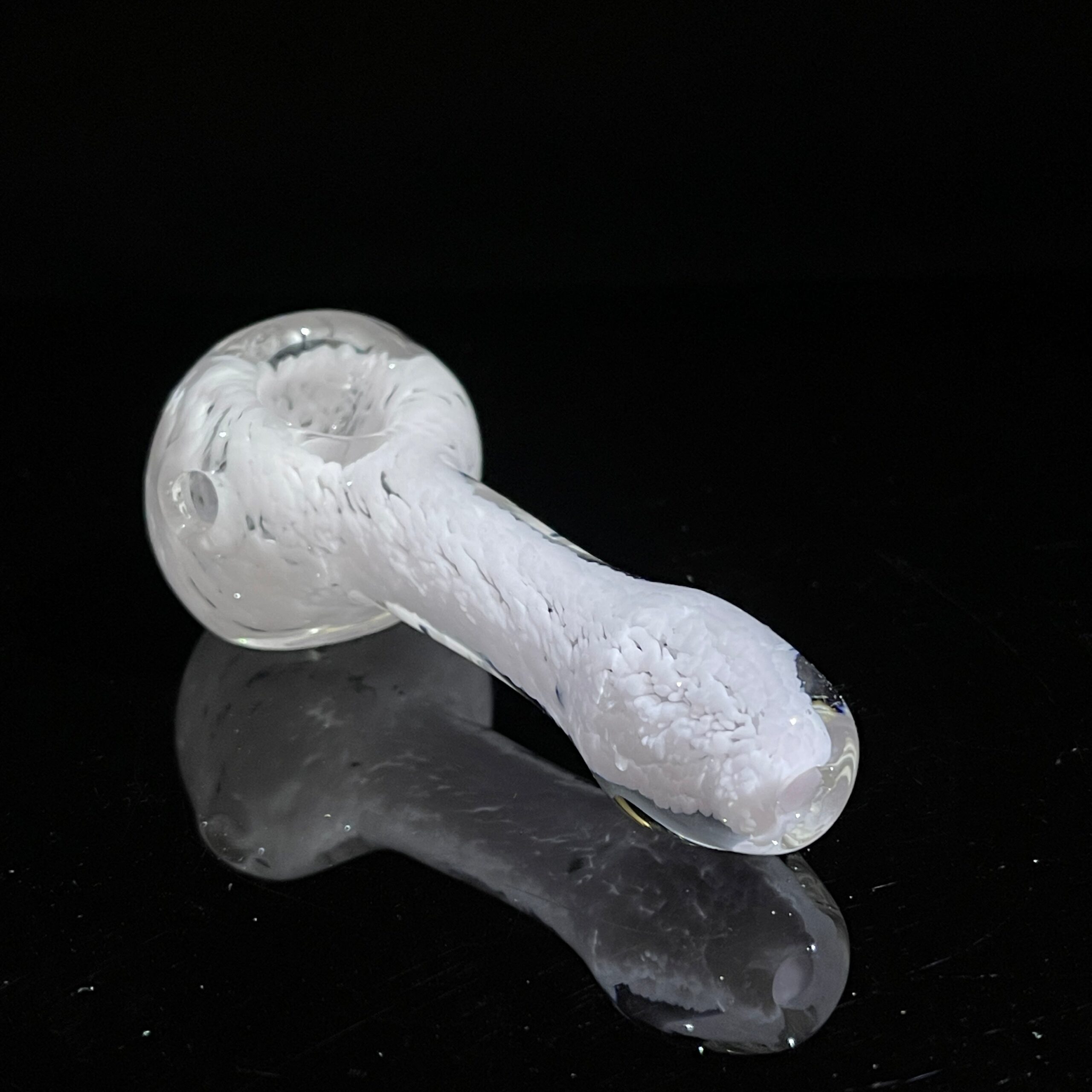 The Frit Glass Spoon isn’t just a vape; it’s a statement. Its stunning design, achieved through the ancient art of fritting, showcases an explosion of color with an array of different glass shades scattered throughout the piece. “Fritting,” the process of embedding tiny bits of crushed glass into blown glass, creates a mesmerizing depth and visual appeal unlike any other vape on the market. This isn’t just a functional device; it’s a wearable work of art.