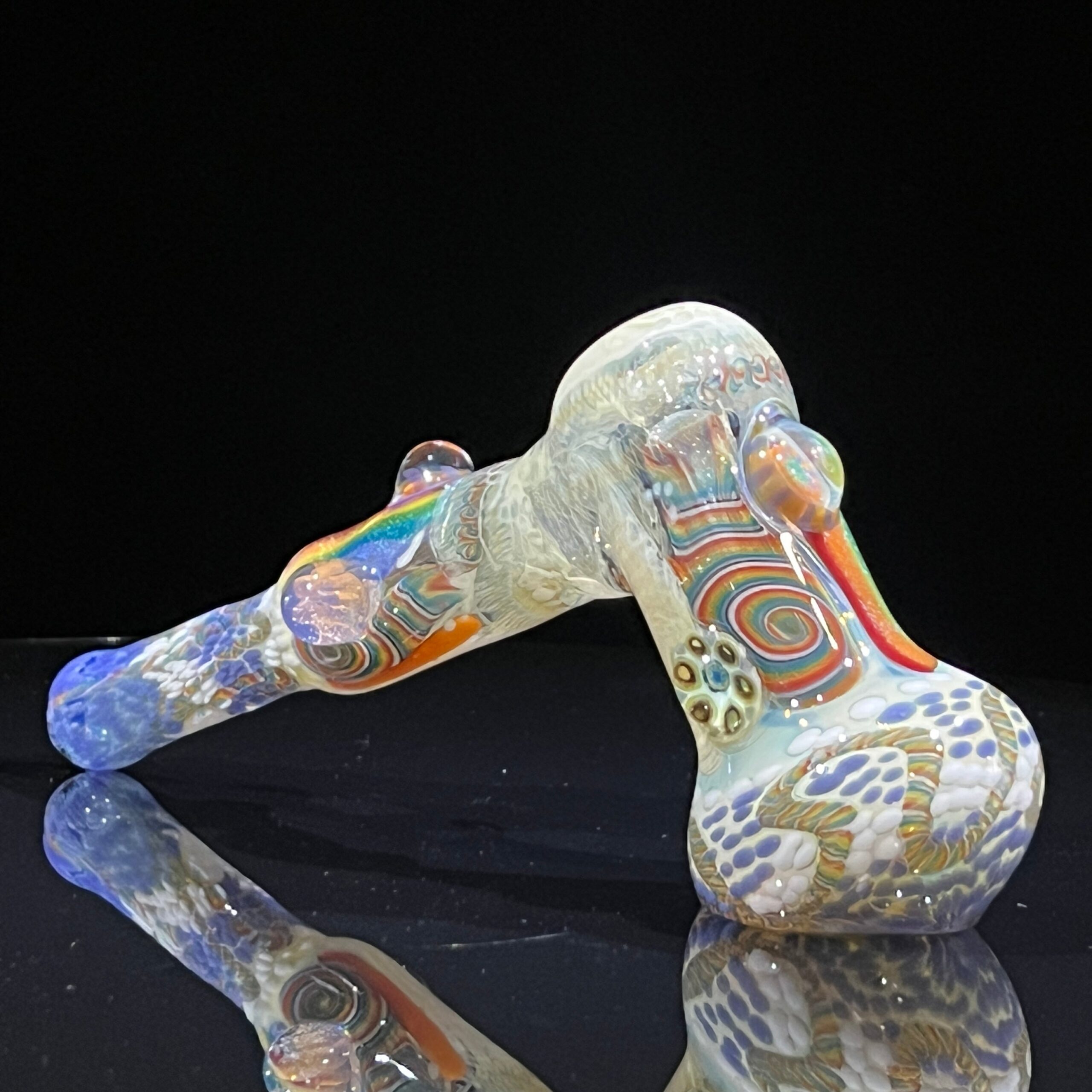 - Inside Out Color Work & Color Thumbprints: These advanced glassblowing techniques create a depth and complexity of color unseen in mass-produced pieces. The result is a truly one-of-a-kind, vibrant piece that reflects the artist’s skill and dedication.