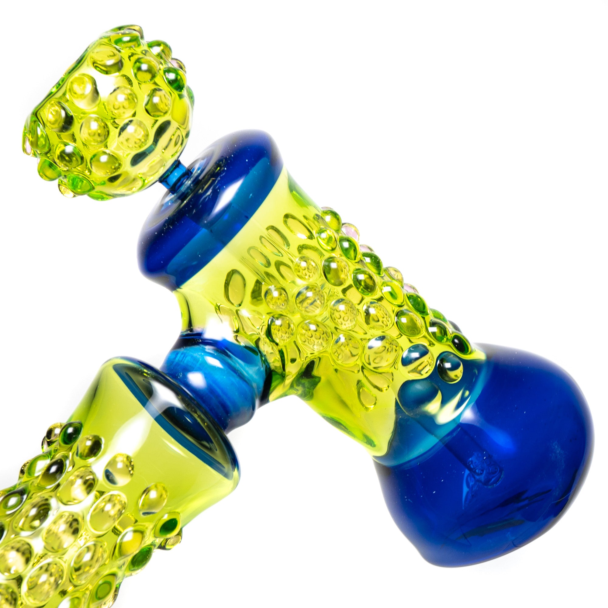Design: Transparent Green & Cobalt multi-section Hammer Bubbler design.