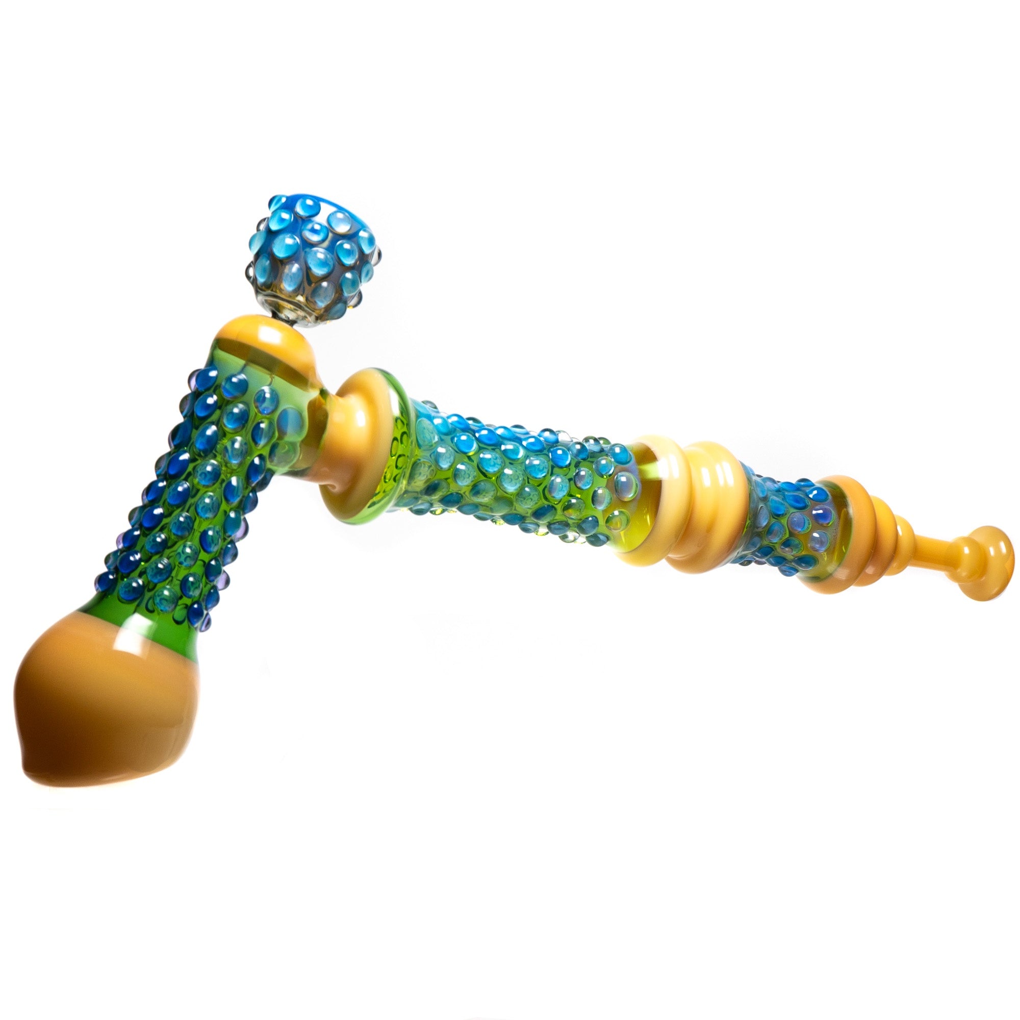 The Goo Roo Designs 24″ Hammer Bubbler isn’t just another bubbler; it’s a statement. This meticulously crafted piece boasts a striking Green Blue & Milky Orange color scheme, delivering both visual appeal and exceptional performance. Its innovative design addresses common vaping frustrations, providing a smoother, more flavorful, and ultimately more satisfying experience.
