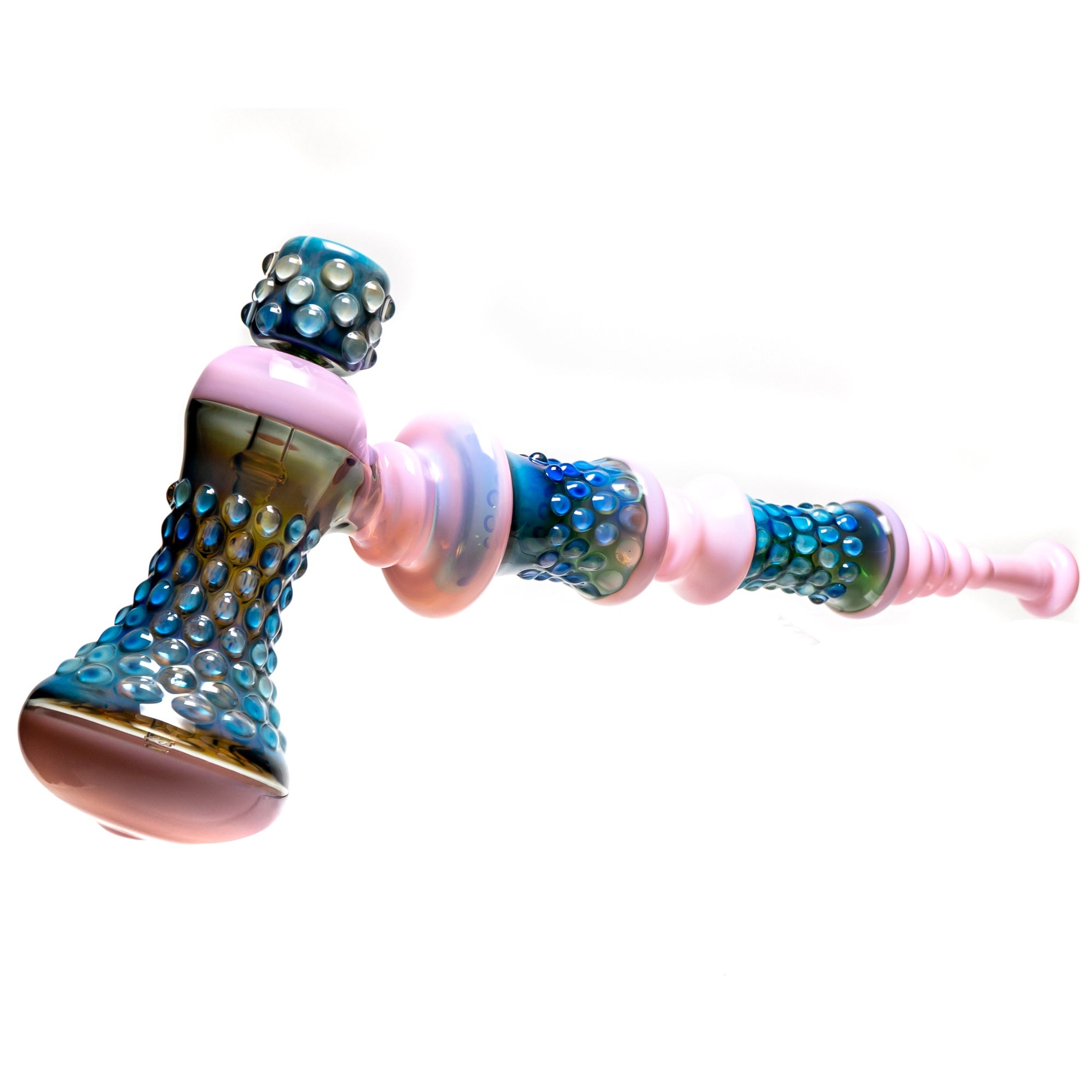 Design: Hammer-shaped bubbler with a milky pink, smoke & fume aesthetic.