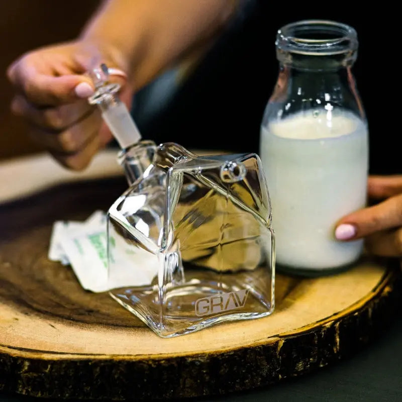 To keep your Pink GRAV Milk Carton Bong in top condition, regular cleaning is essential. Start by emptying any remaining water and disassembling the bong. Rinse the pieces with warm water and use a pipe cleaner or cotton swabs to remove any residue. For stubborn buildup, soak the pieces in a mixture of warm water and isopropyl alcohol, then rinse thoroughly. Allow the bong to dry completely before reassembling and using it again.