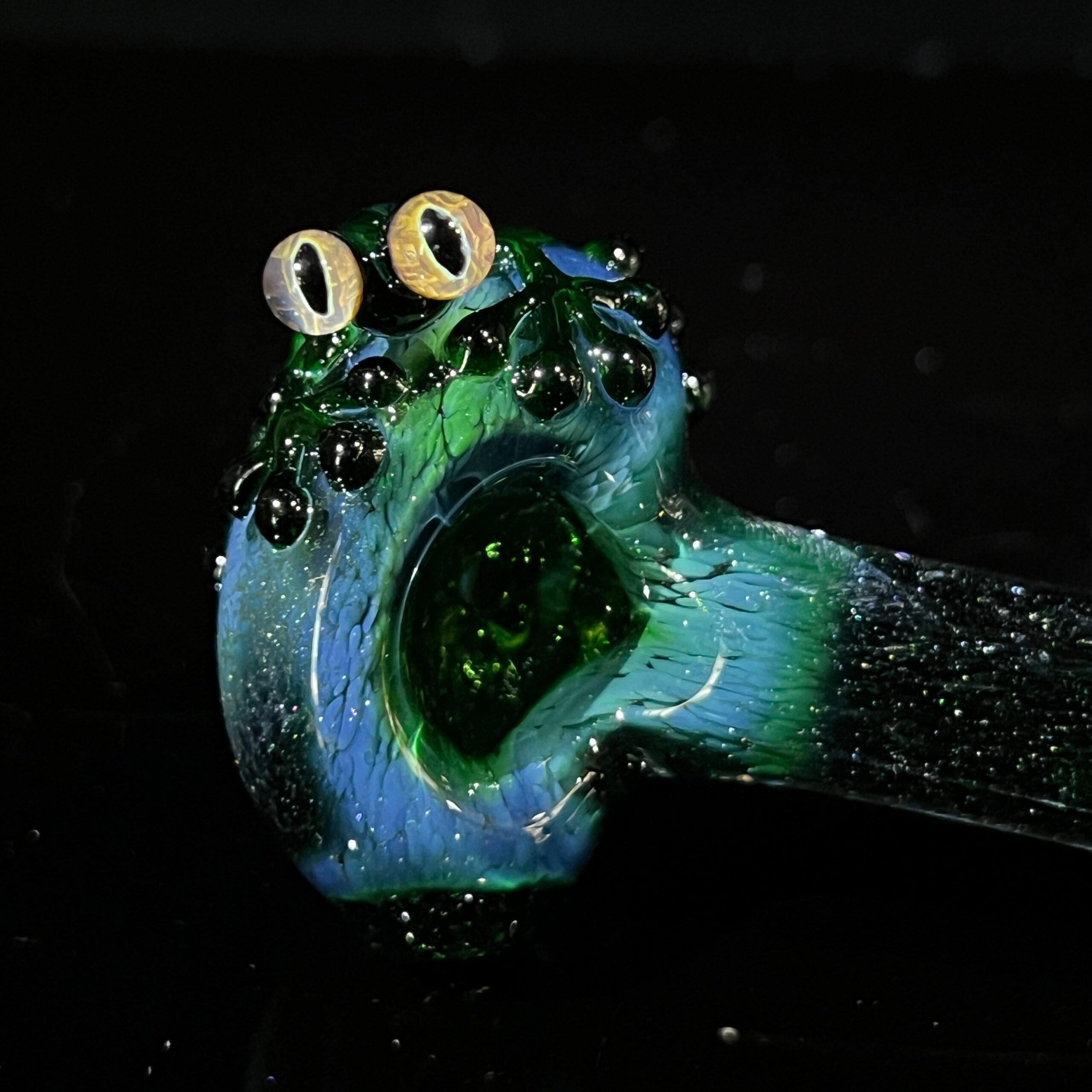 - Handmade Glass Construction: Beezy’s meticulous craftsmanship ensures superior quality, durability, and a unique aesthetic unlike any mass-produced pipe. This means your Green Frog Spoon will last, offering a long-lasting and visually stunning addition to your collection.