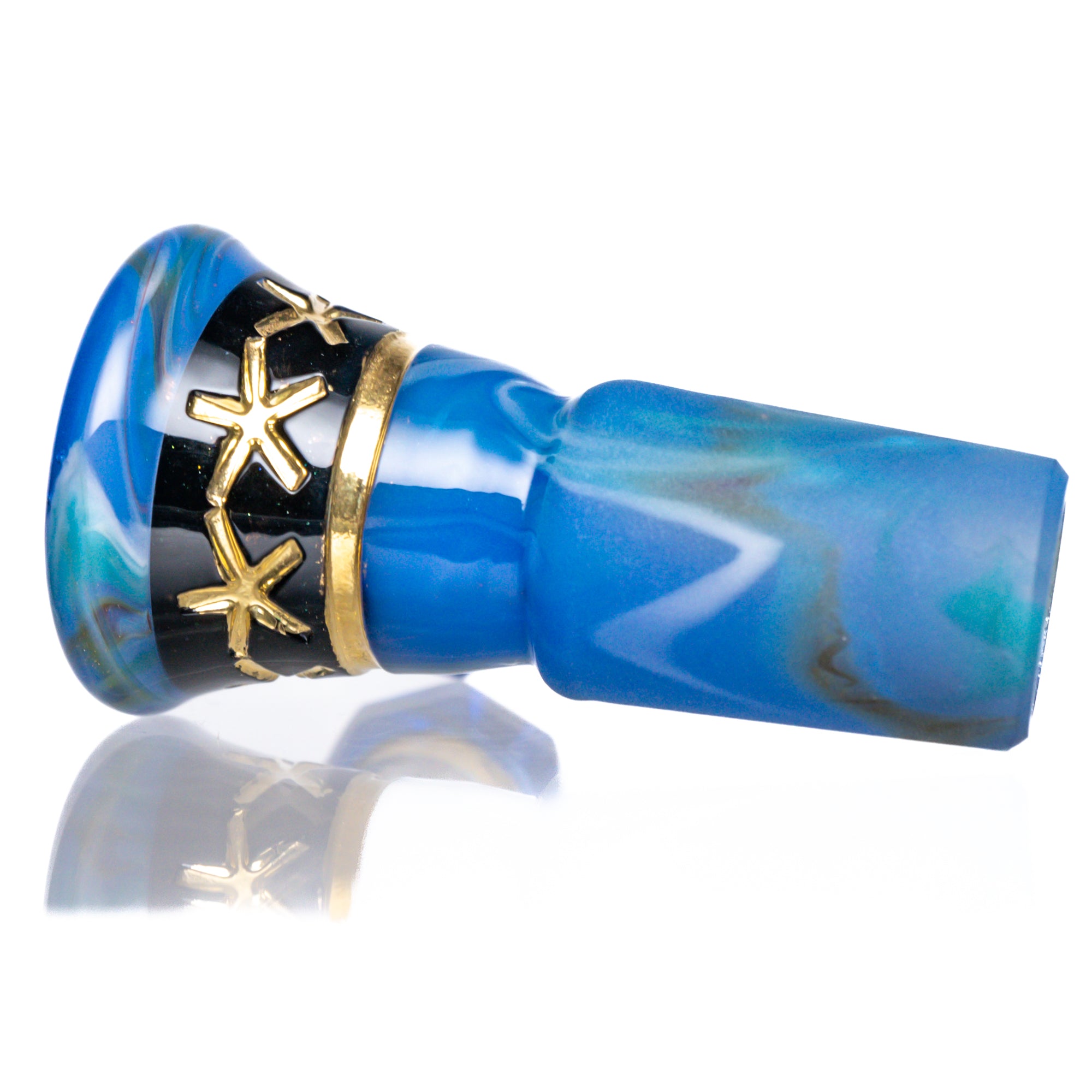 - Design: 18mm male joint, 4-hole slide, Stars & Water etched design.