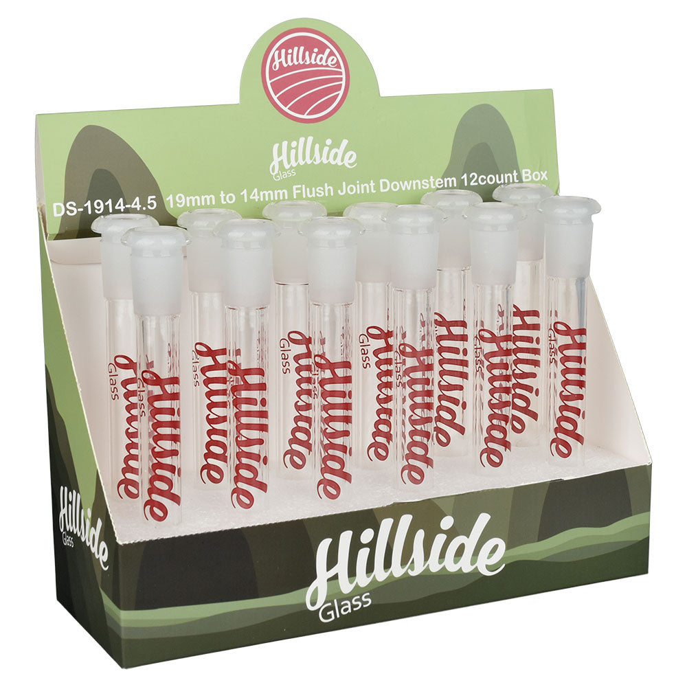 The Hillside Glass Downstem measures 4.5 inches in length and is constructed from high-quality borosilicate glass. Its sleek design and iconic Hillside logo make it a stylish addition to any smoking setup. Please use this product responsibly and follow all safety guidelines provided by the manufacturer.