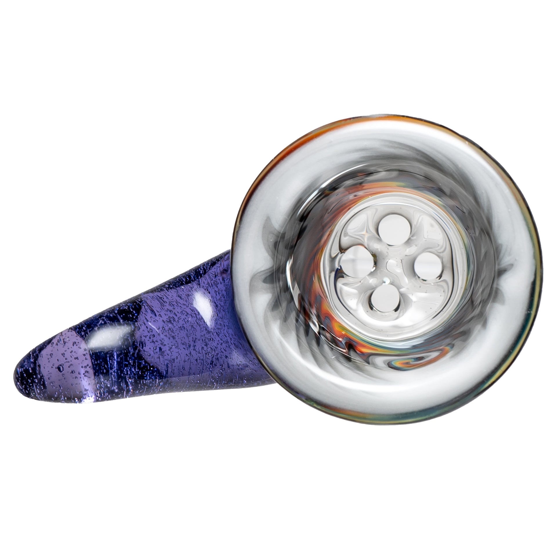 - Design: Smoke & Rainbow linework with Purple Lollipop handle; 18mm male joint; 4-hole martini bowl.