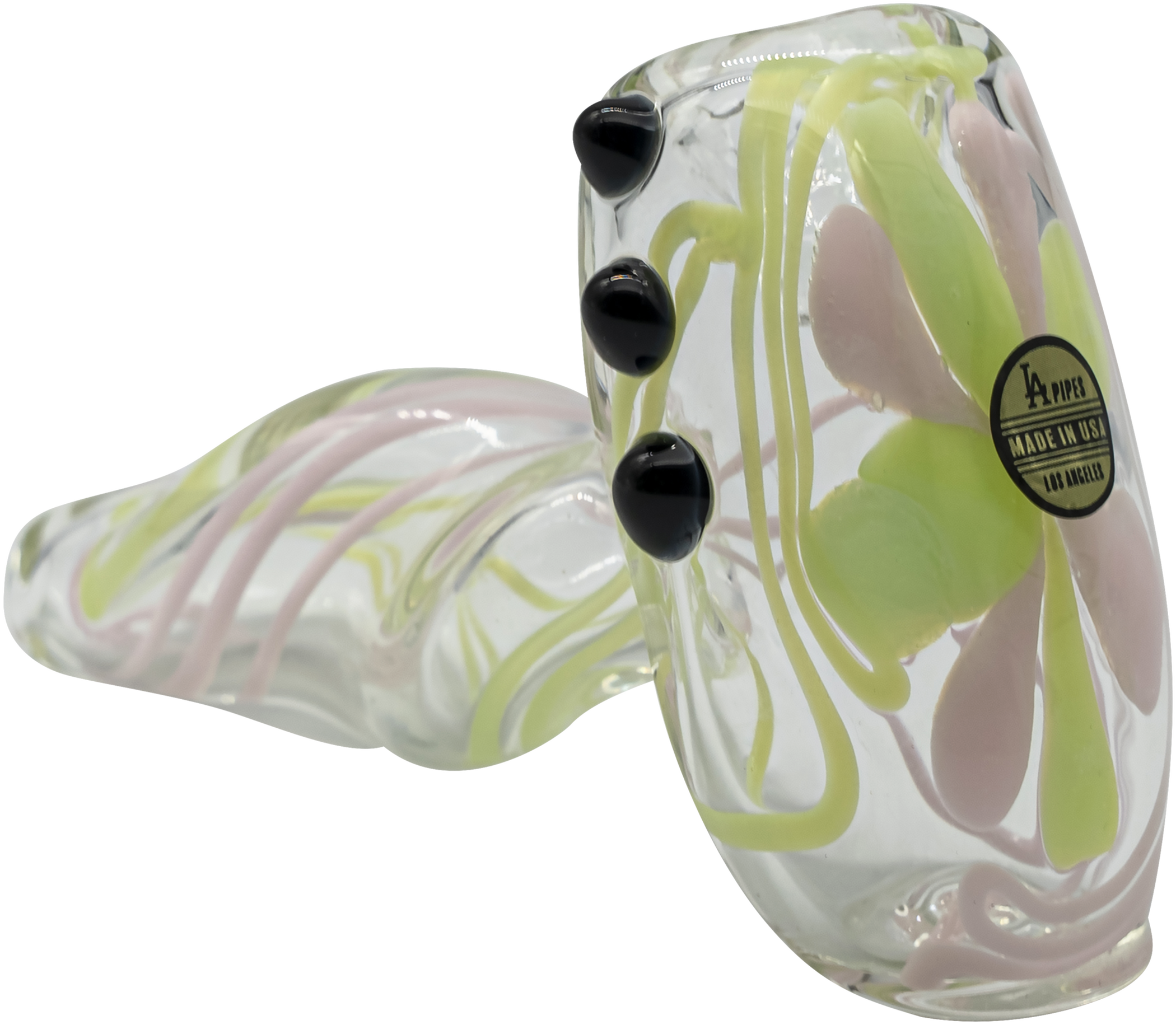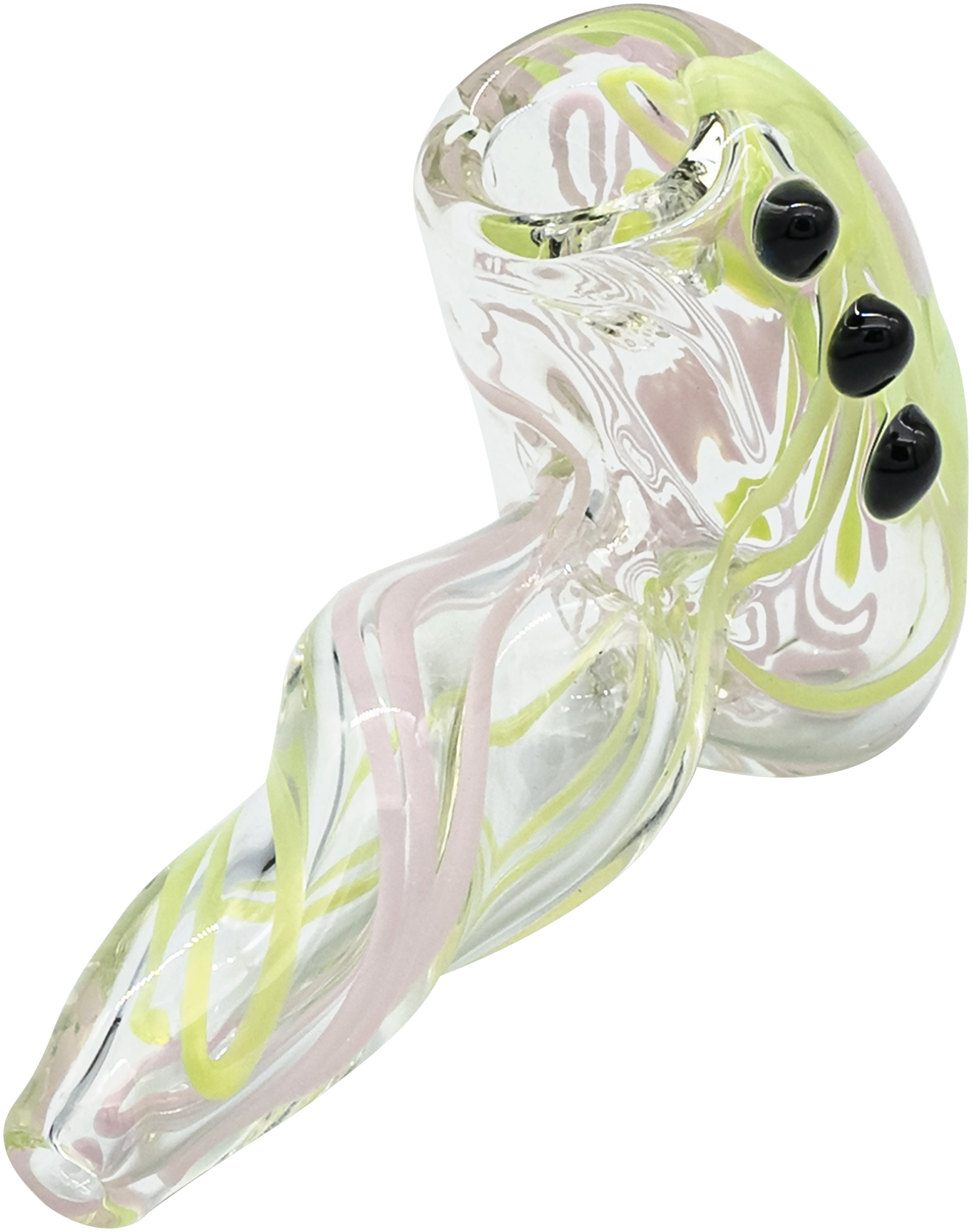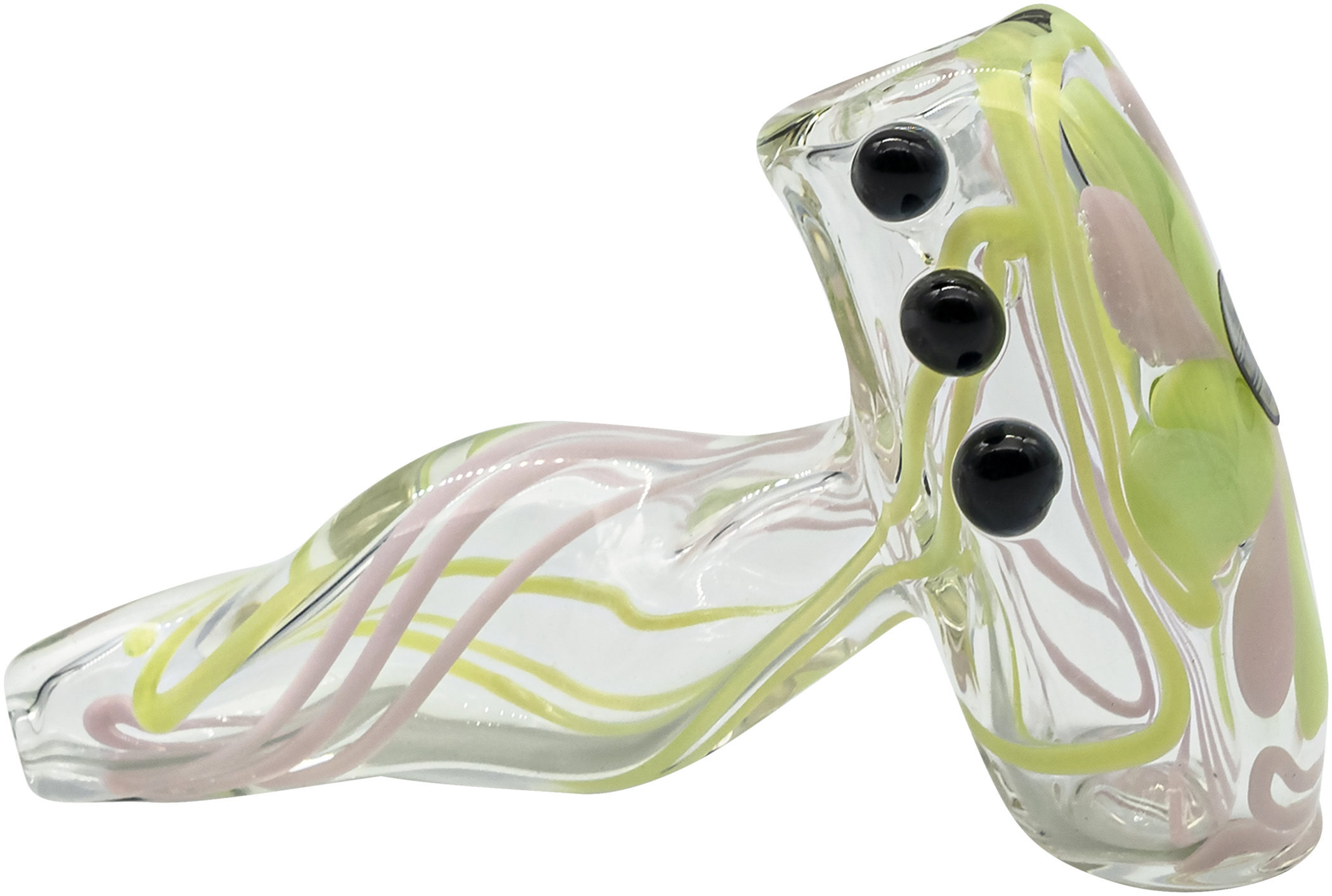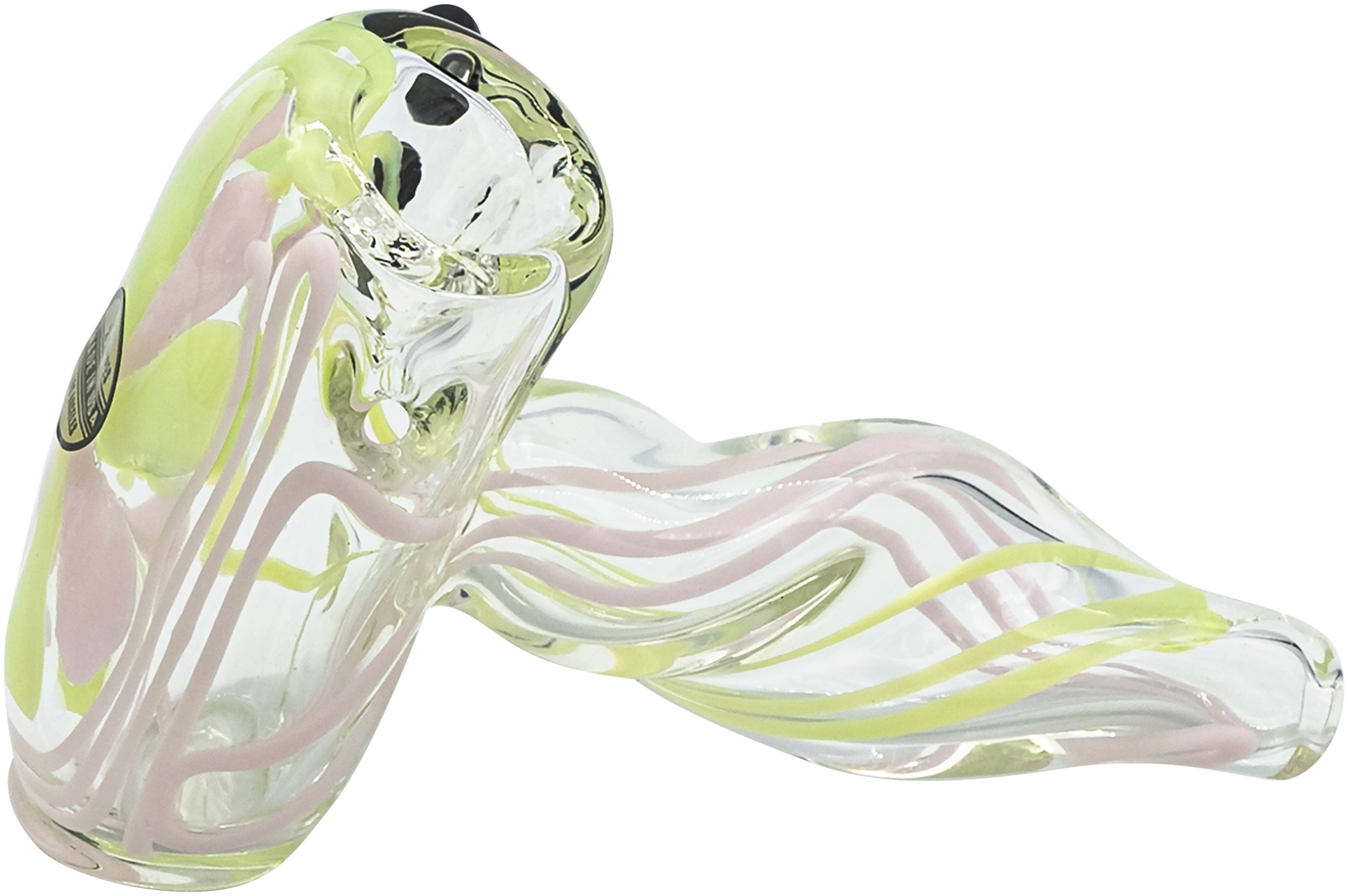 This isn’t just a pipe; it’s a statement. Crafted with meticulous attention to detail in Los Angeles, the Green Slyme and Bubble Gum Twist Hammer Pipe boasts a range of features designed to elevate your enjoyment:
