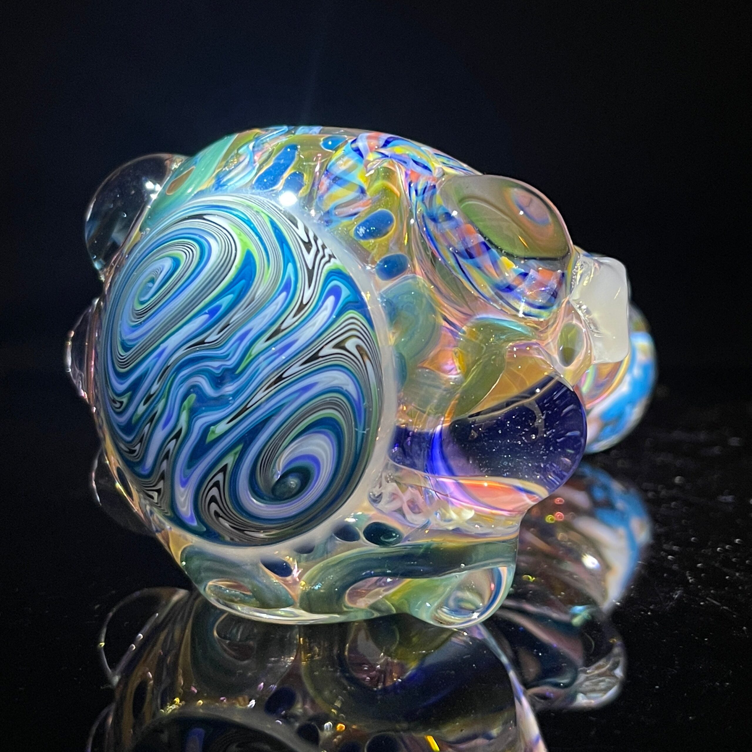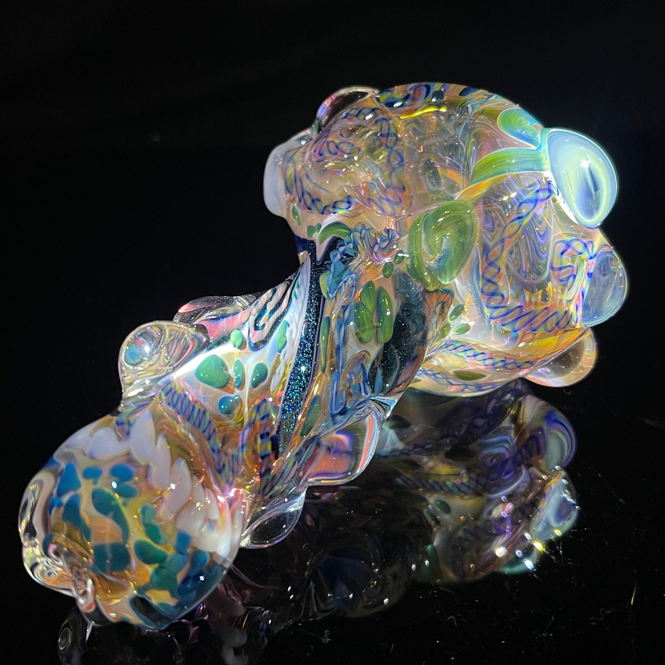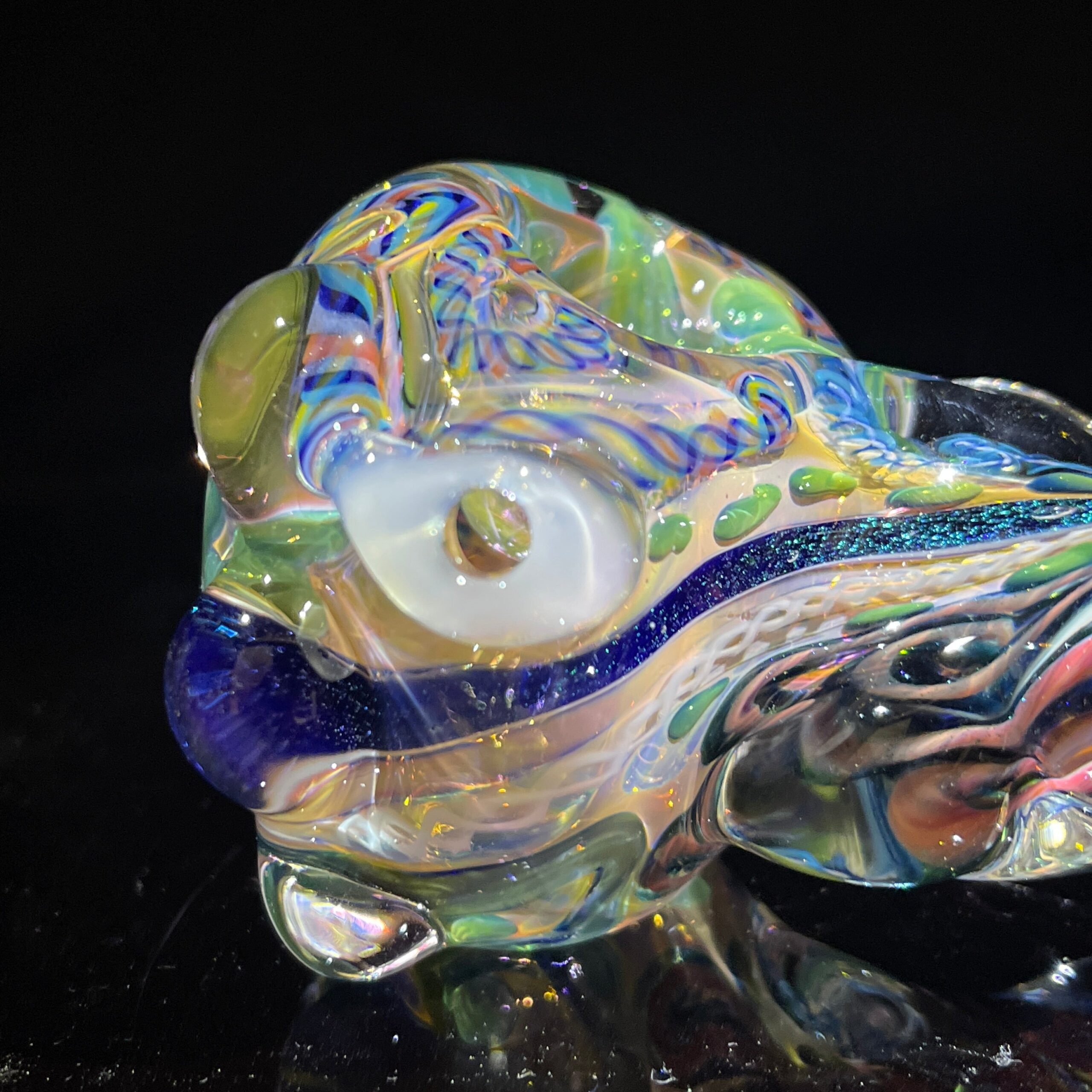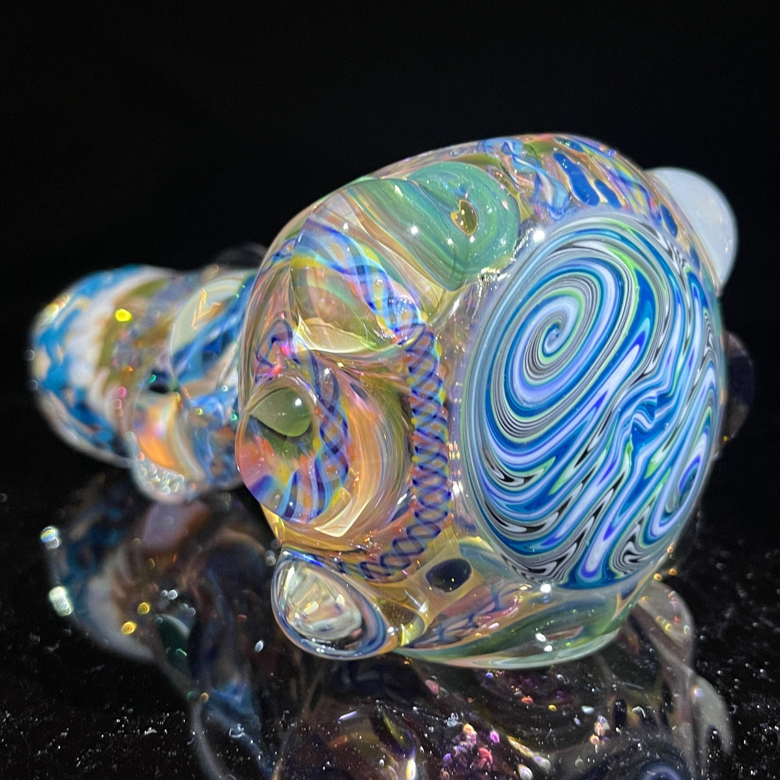- Twisty Cane and Dichroic Ribbons: The intricate swirls of cane and dichroic glass create a mesmerizing visual spectacle. Dichroic glass displays vibrant, iridescent colors that shift depending on the angle and lighting, making each pipe a one-of-a-kind masterpiece.