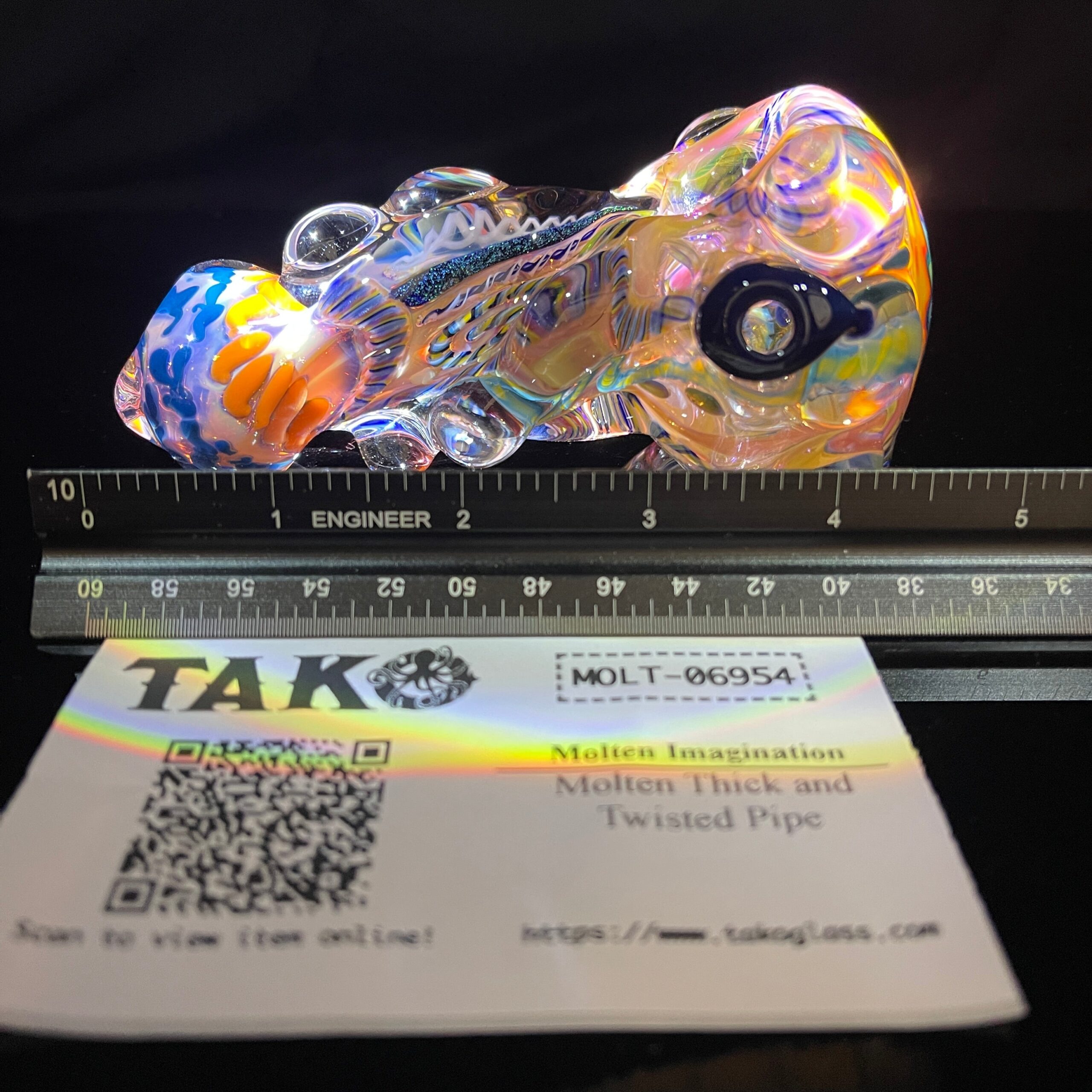 Unlike flimsy, cheaply made pipes, the Molten Thick and Twisted Pipe offers unparalleled durability and a stunning, unique design you won’t find anywhere else. Its substantial weight and thick glass construction provide a feeling of quality and longevity.