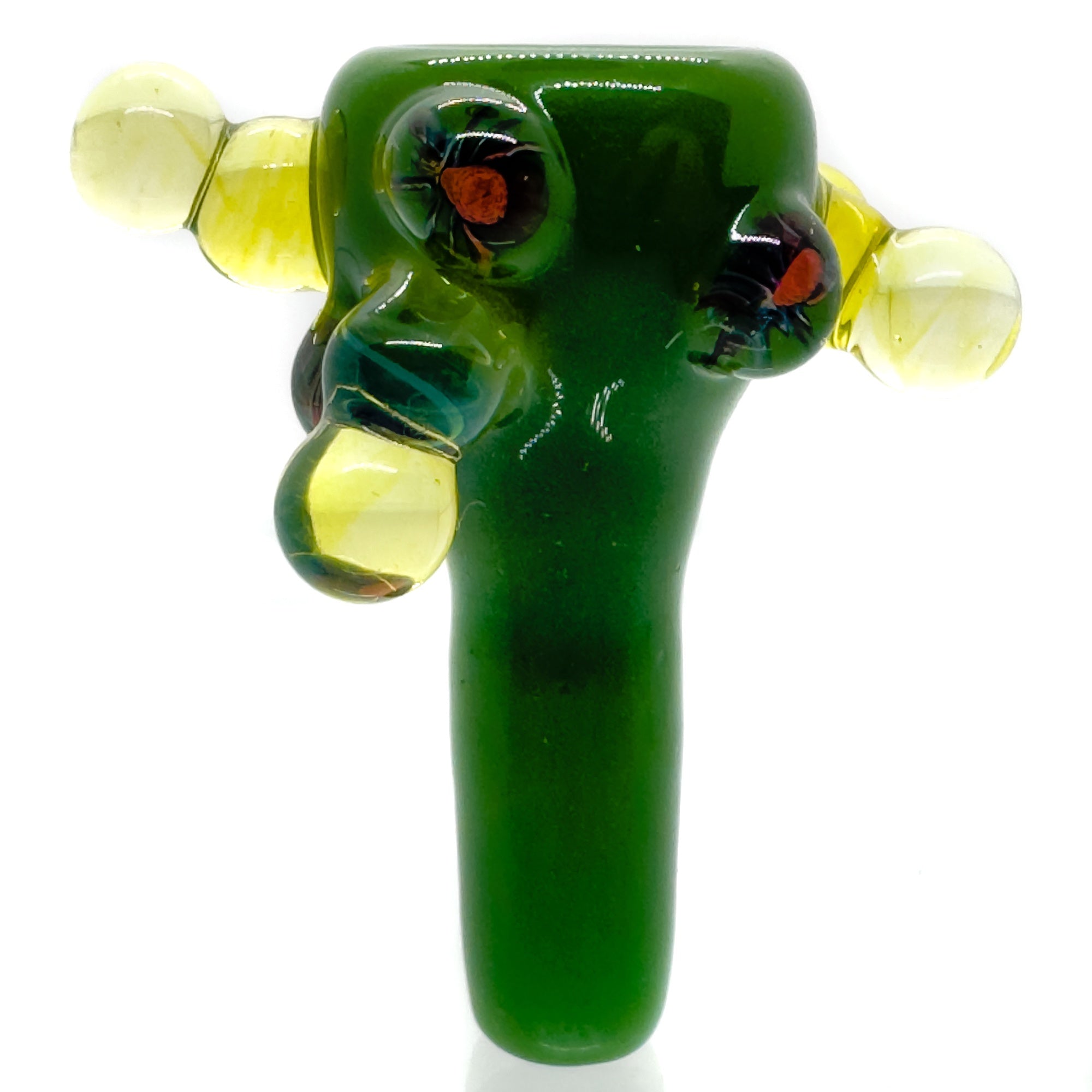 - Design: Hand-formed, Gak Green color, 14mm male joint, Spidermite MIllies, Fume Trichromes