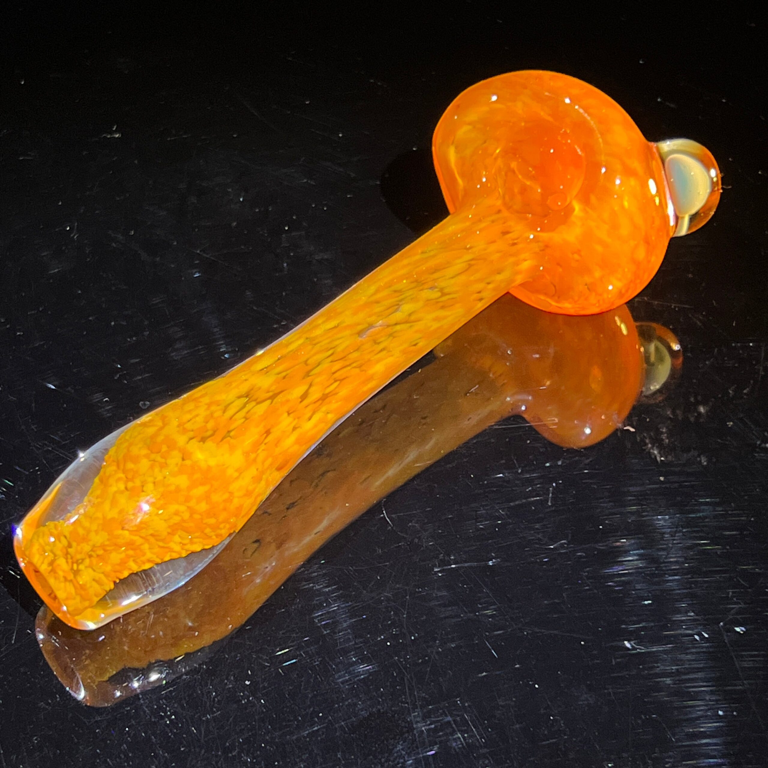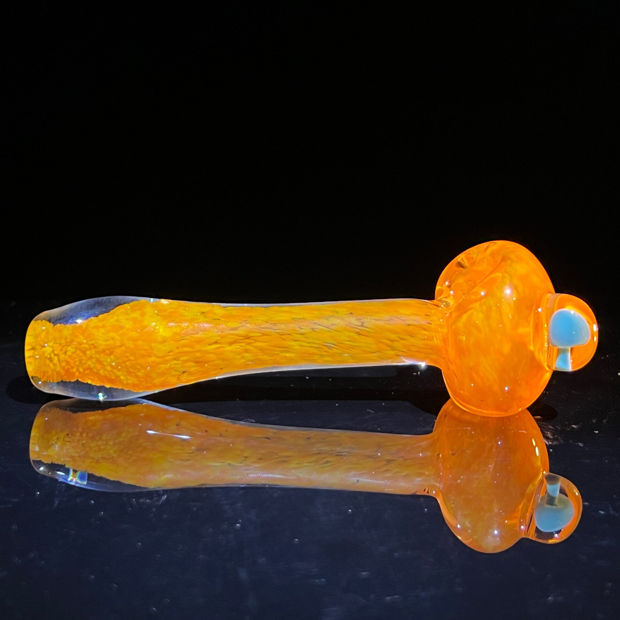 - Magnified Mushroom Marble Detail: A captivating, hand-blown glass marble featuring a magnified mushroom sits at the bowl’s edge, adding a touch of whimsical magic to this already enchanting piece. Benefit: A truly unique and visually stunning design that sets it apart from any other pipe you’ve ever seen.