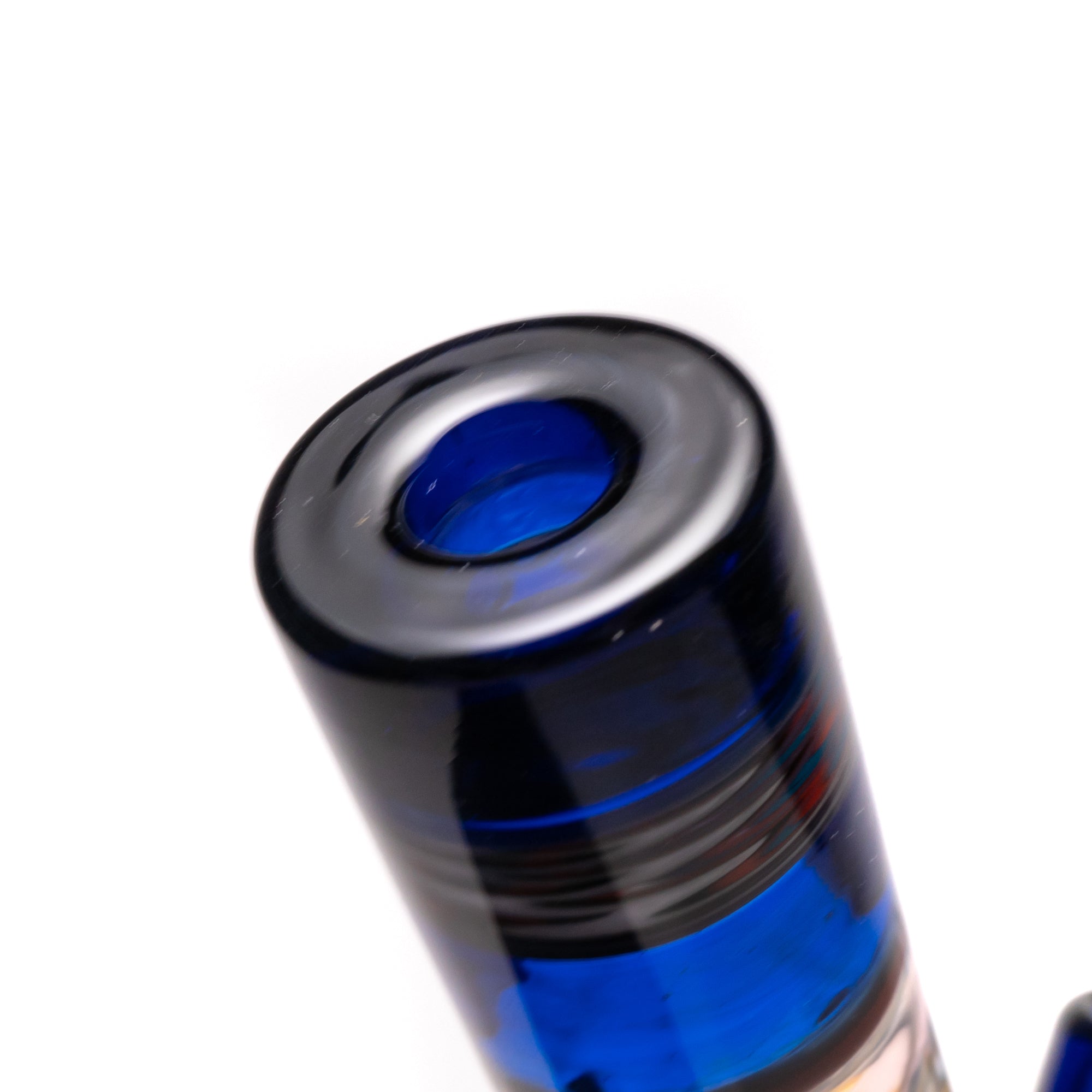 - Color Sections & Fume w/ Linework & Millie Inlays on Neck, Can & Base: More than just a functional piece, this tube is a work of art. The vibrant cobalt and red color sections, accented with red, white, and blue, along with intricate linework and Millie inlays, create a stunning visual experience. The design itself adds to the overall enjoyment.