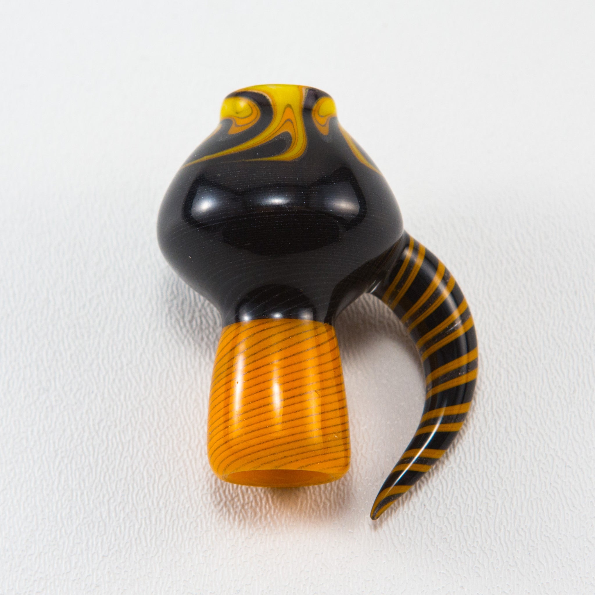 This meticulously hand-formed 14mm female yellow and steel wool stringer vacuum-stacked joint dome represents the pinnacle of Phil Siegel’s artistry. Each of the ten ever made for individual sale showcases his unique approach: