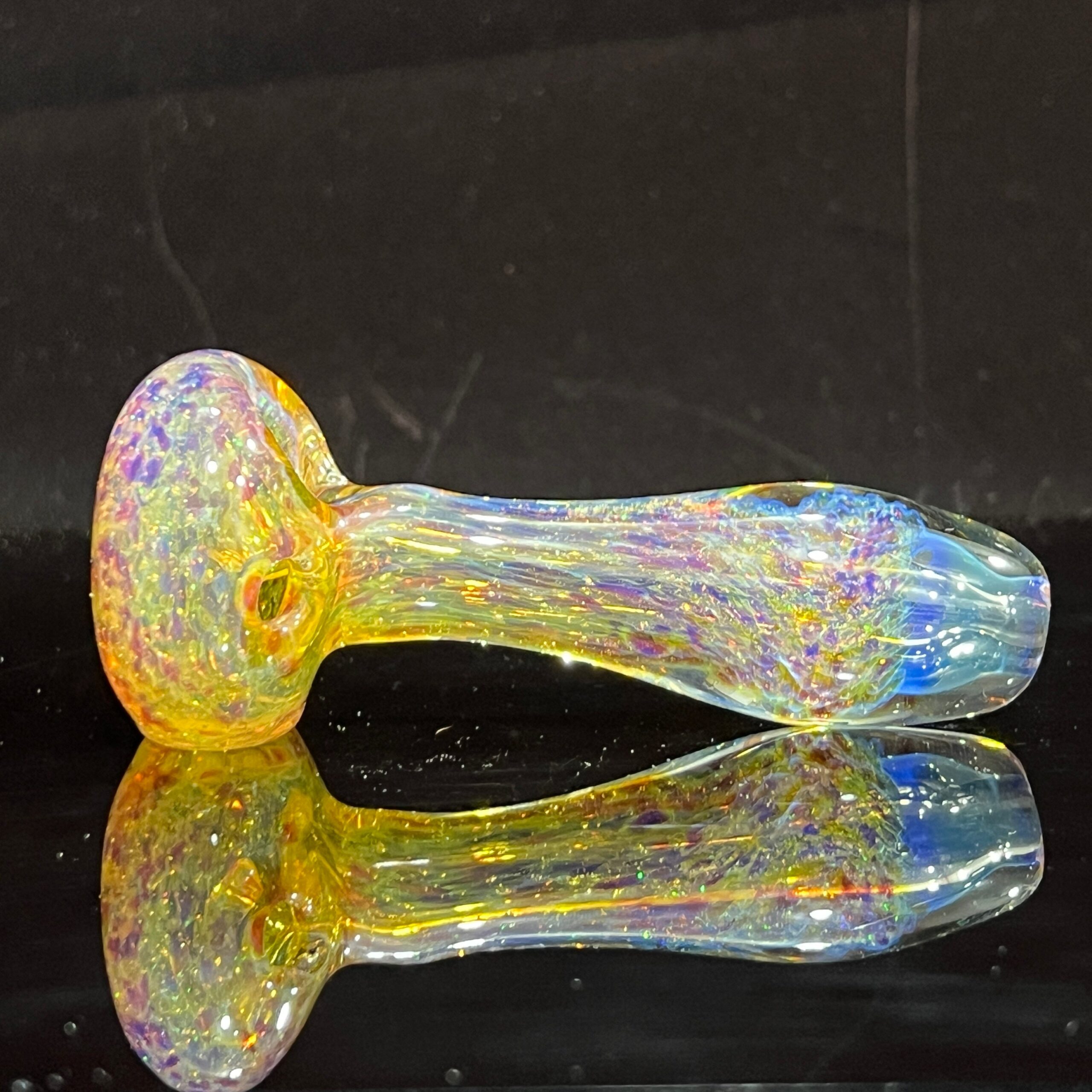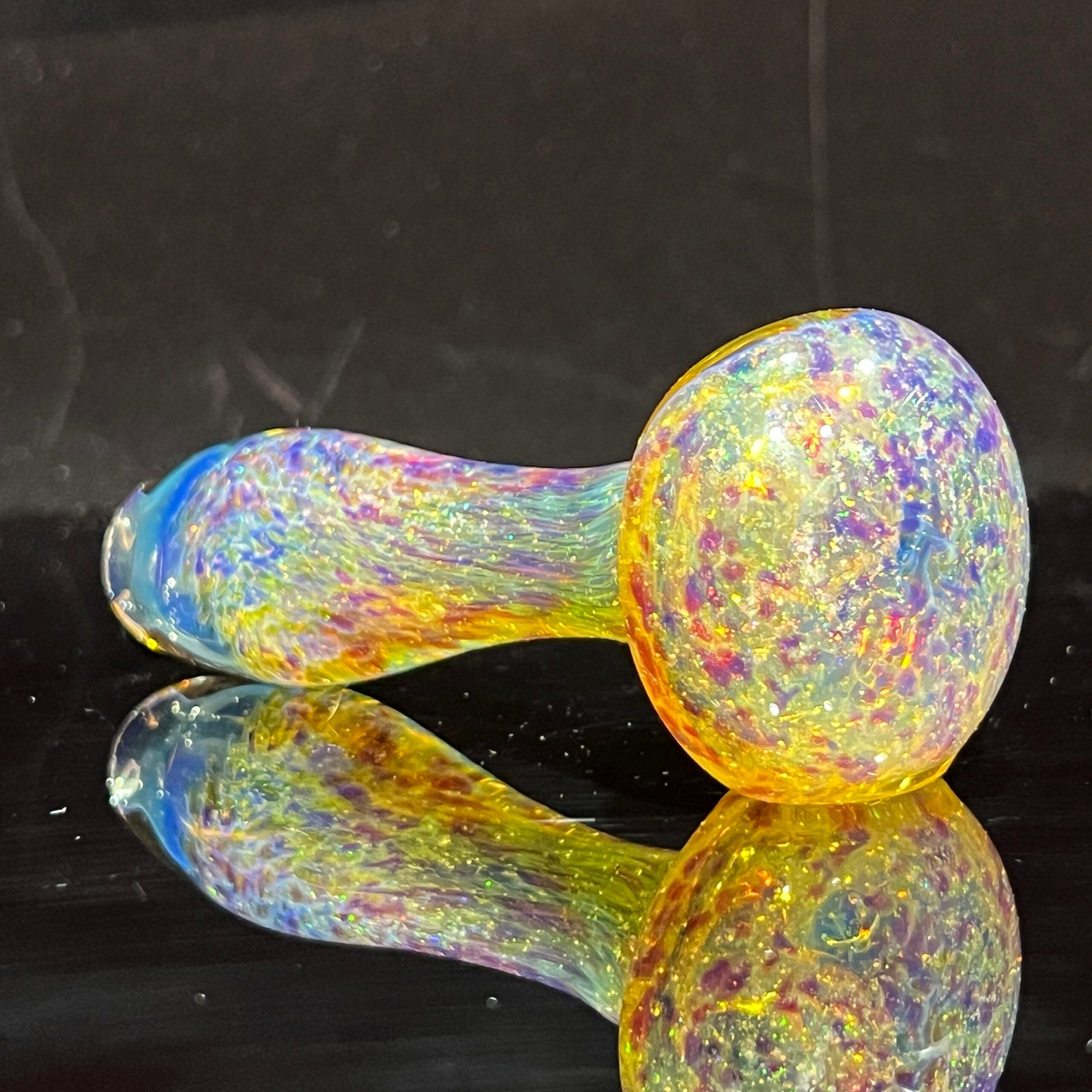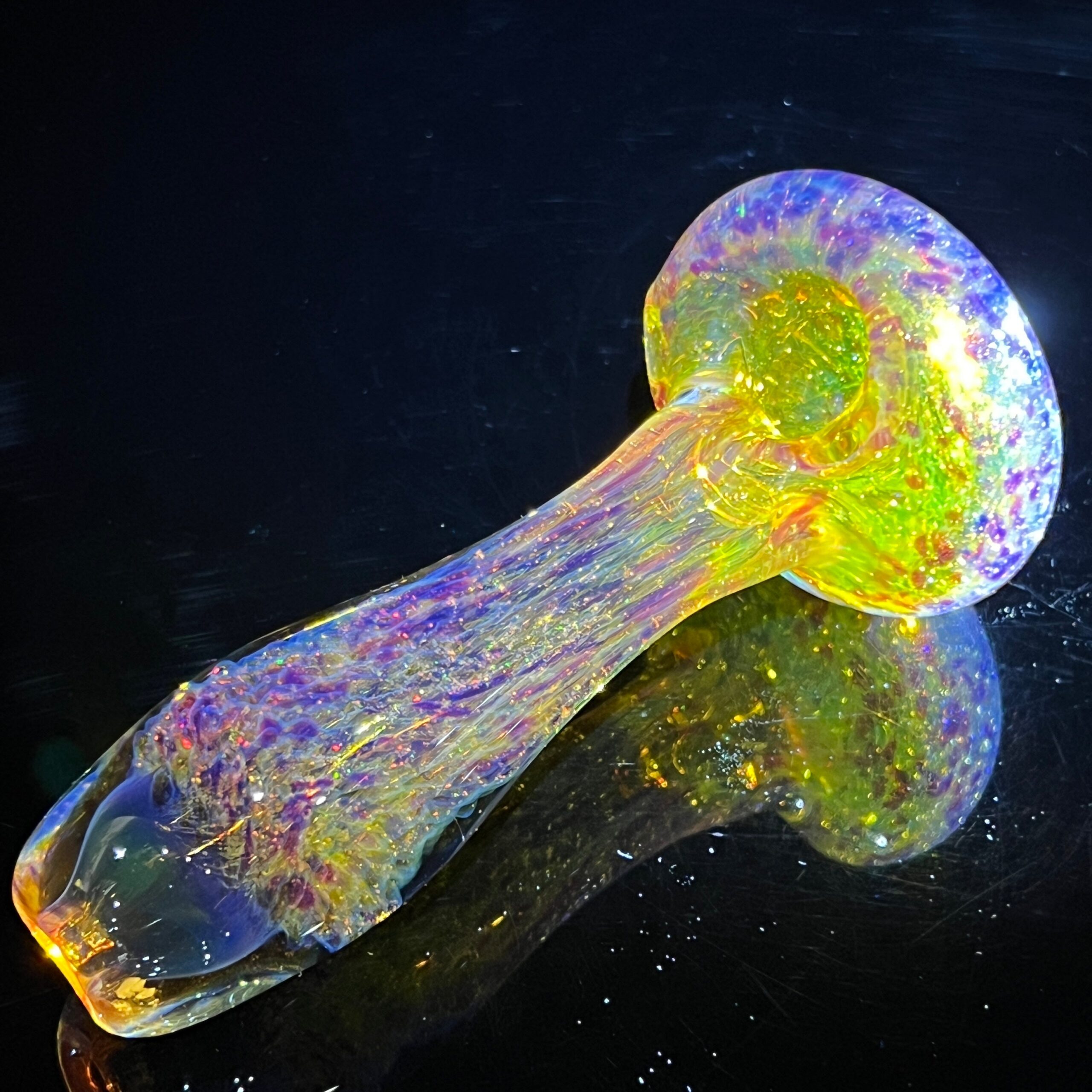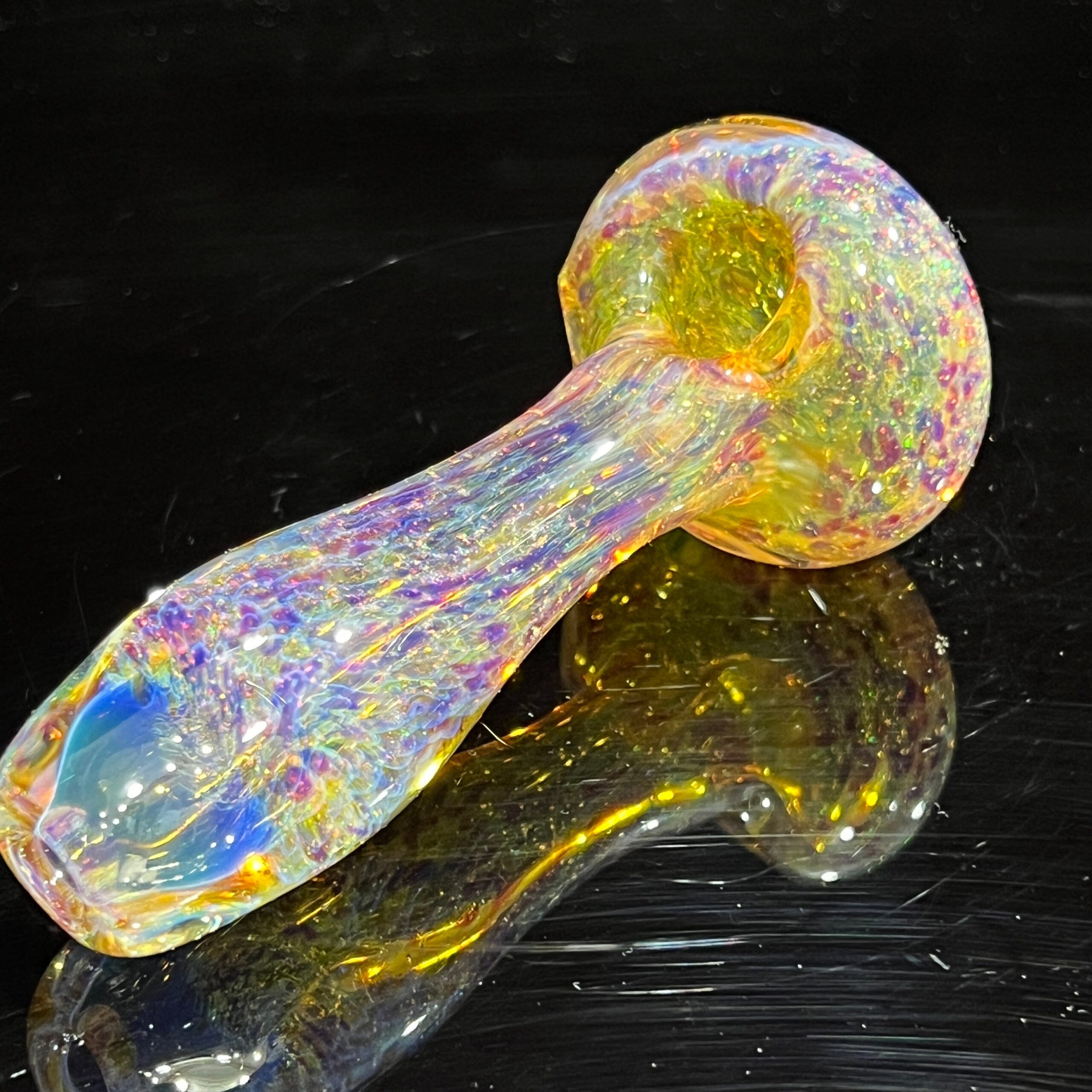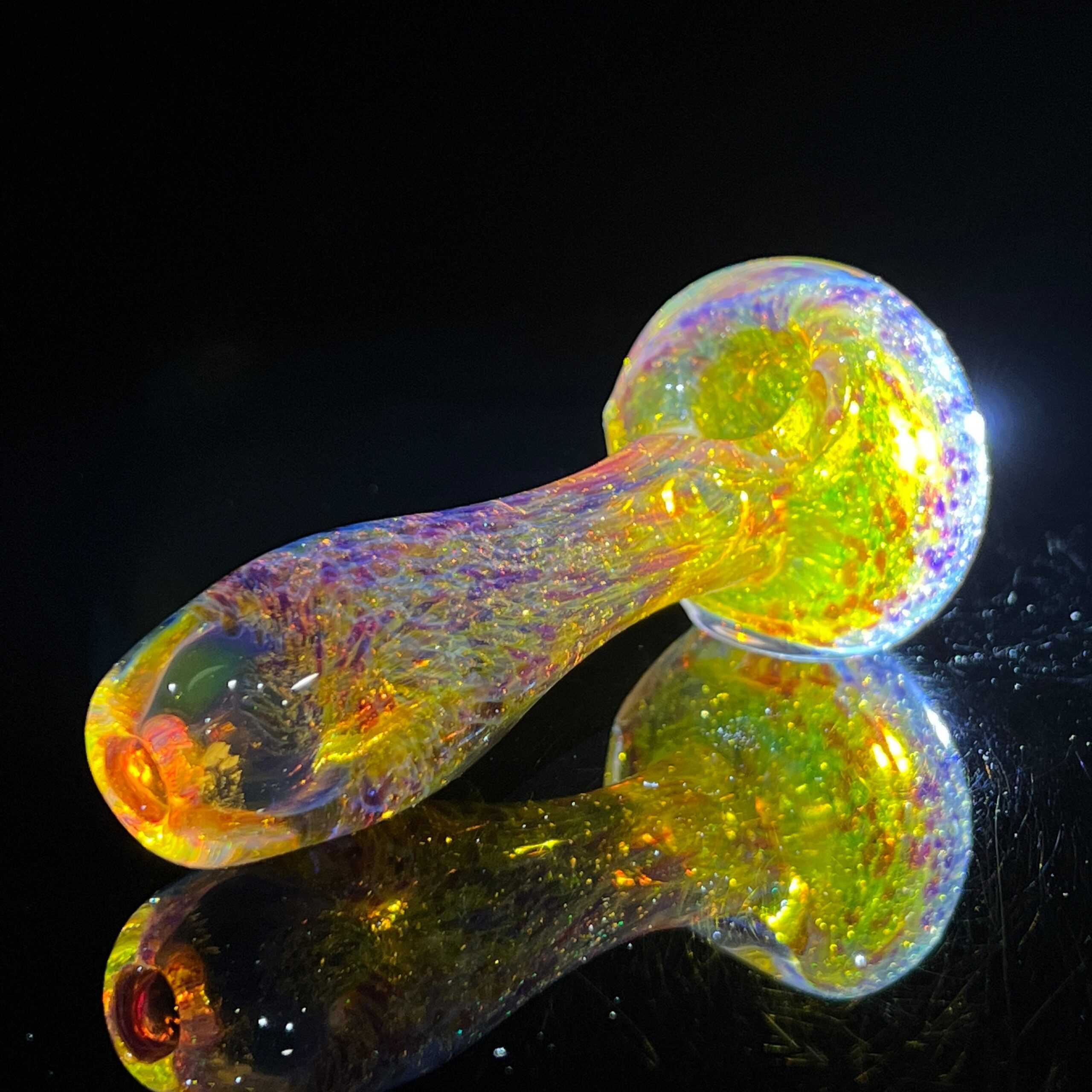 Design: Unique, color-changing fume frit with embedded crushed opals creating a “Space Dust” effect and a proprietary “Purple Nebula Ghost” effect.
