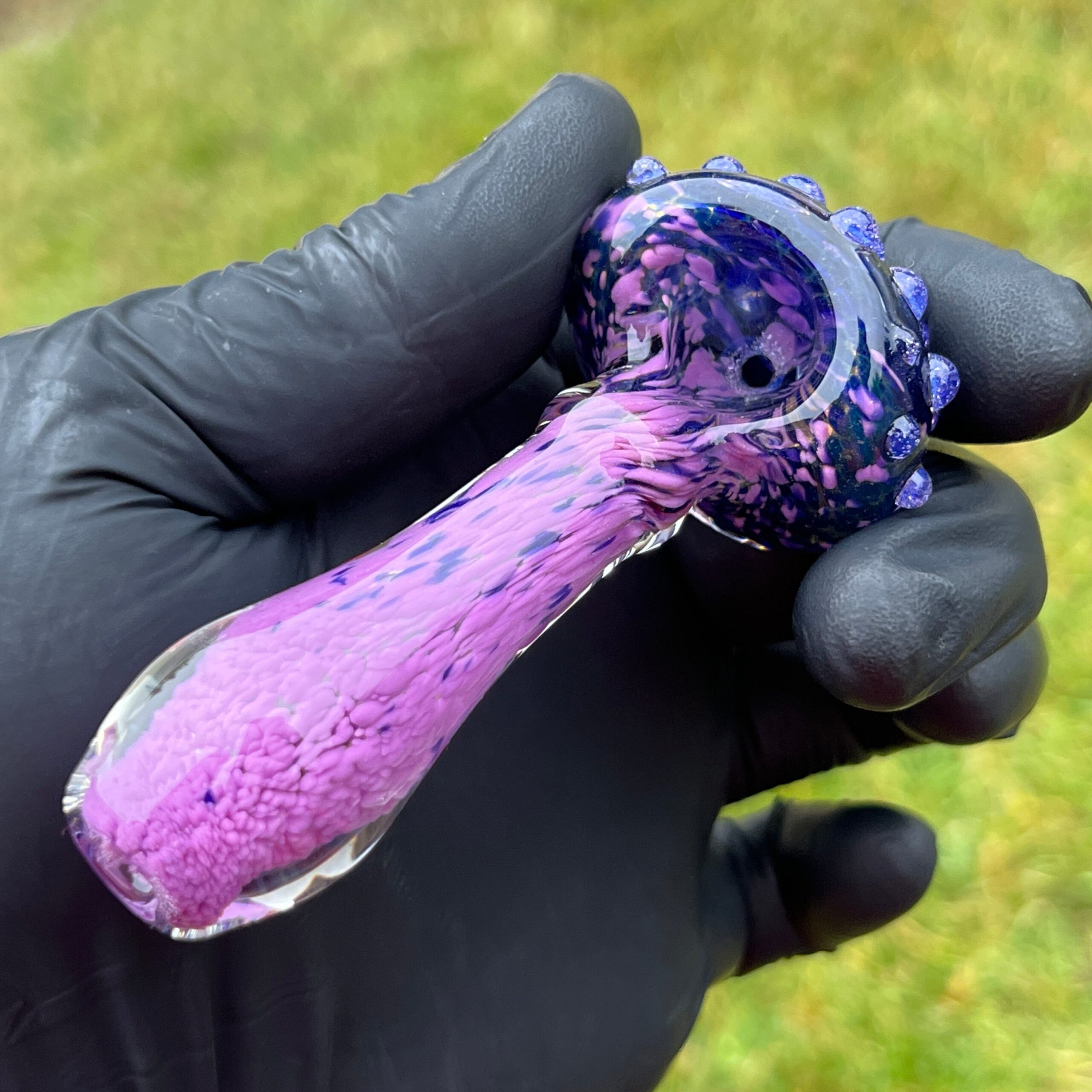 • Vibrant Purple Frit and Dotted Marbles: The mesmerizing purple frit finish, combined with strategically placed, tactile glass marbles on the bowl, creates a truly unique aesthetic. This isn’t just eye candy; the marbles provide exceptional grip, preventing accidental drops and ensuring a secure, confident hold – unlike smooth pipes that can be difficult to manage.