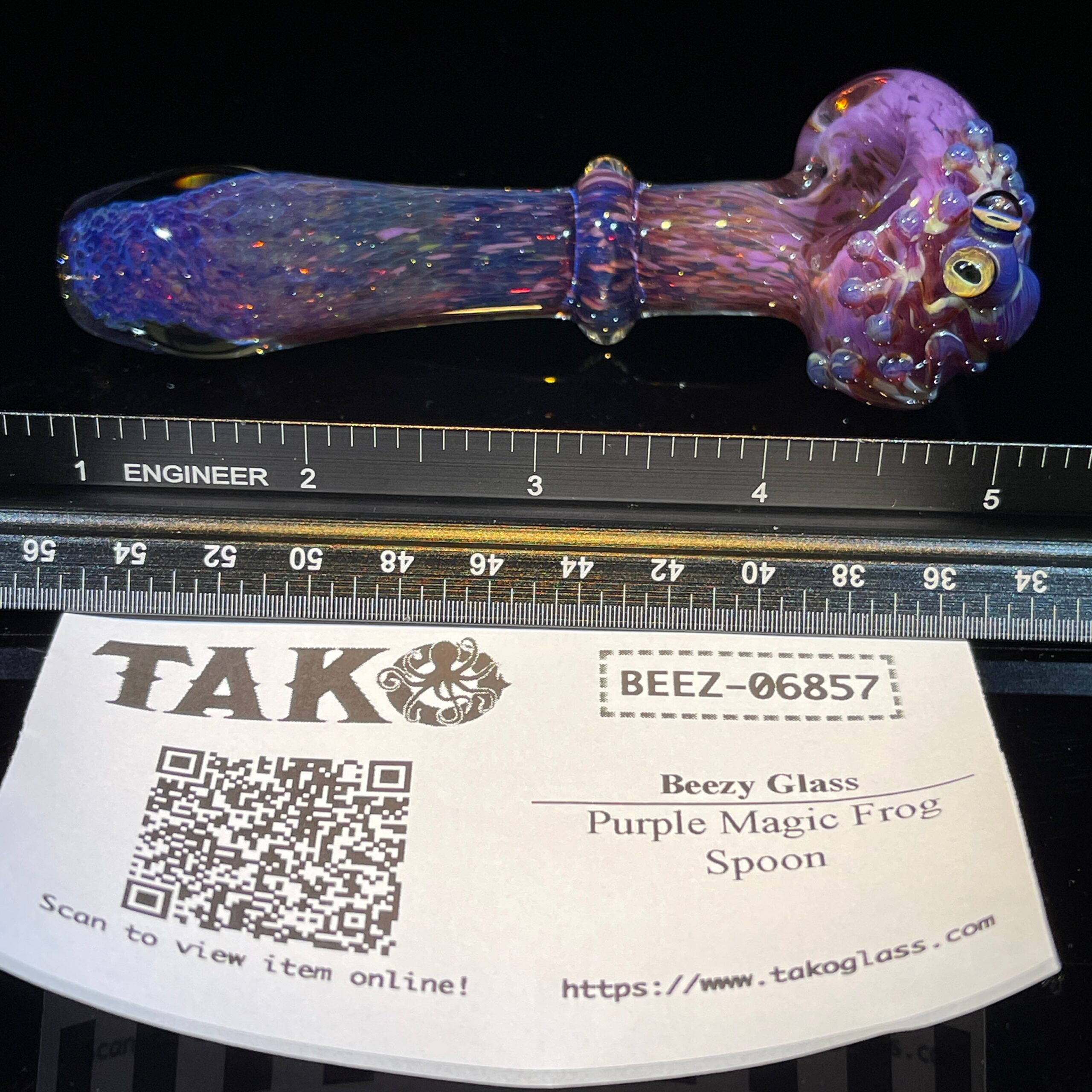 - Stunning Design: The intricate detail of the frog and the mesmerizing purple glass, speckled with shiny sparkles, creates a visually striking piece. Benefit: Makes vaping a stylish and enjoyable experience. This spoon is a conversation piece; it’s art you can use.