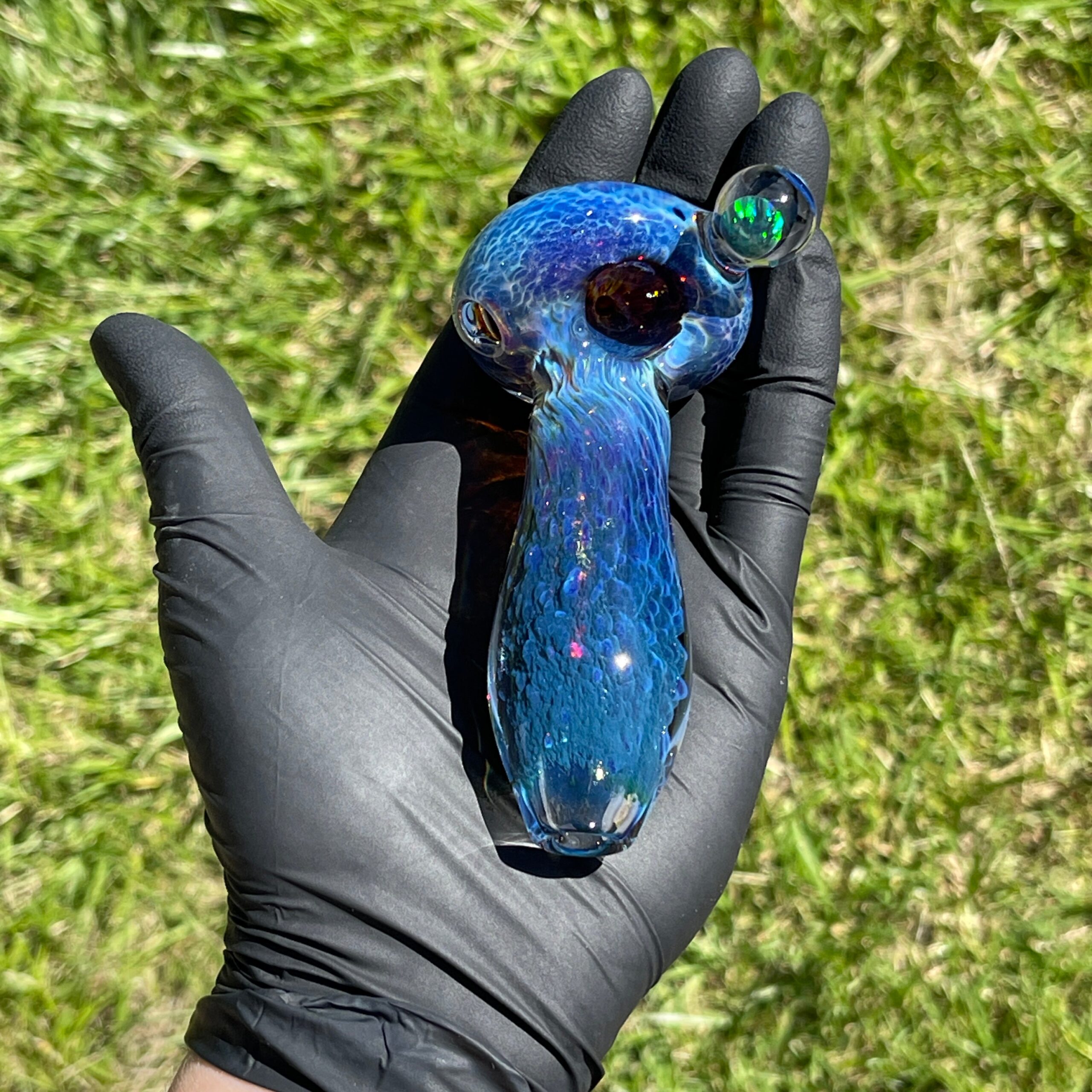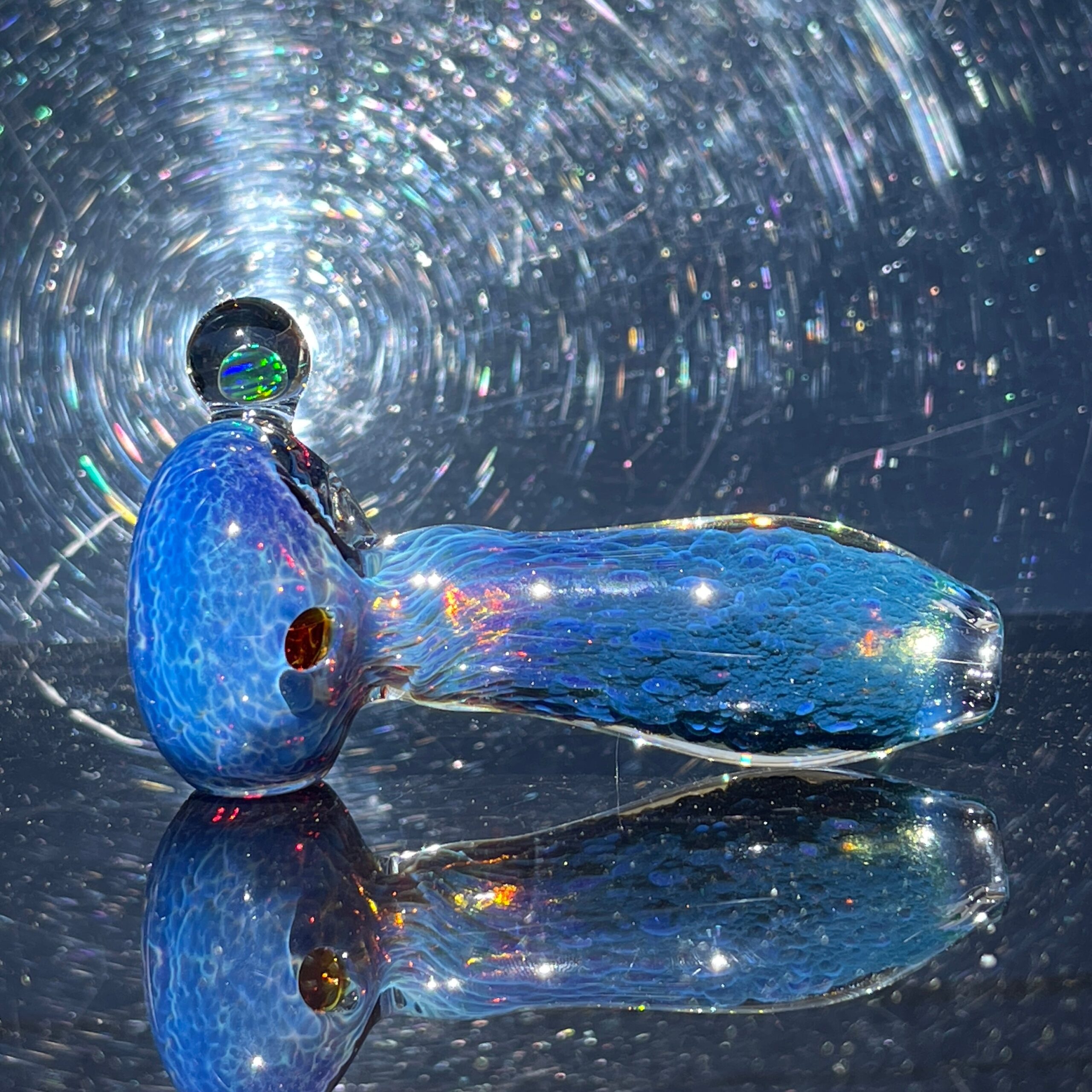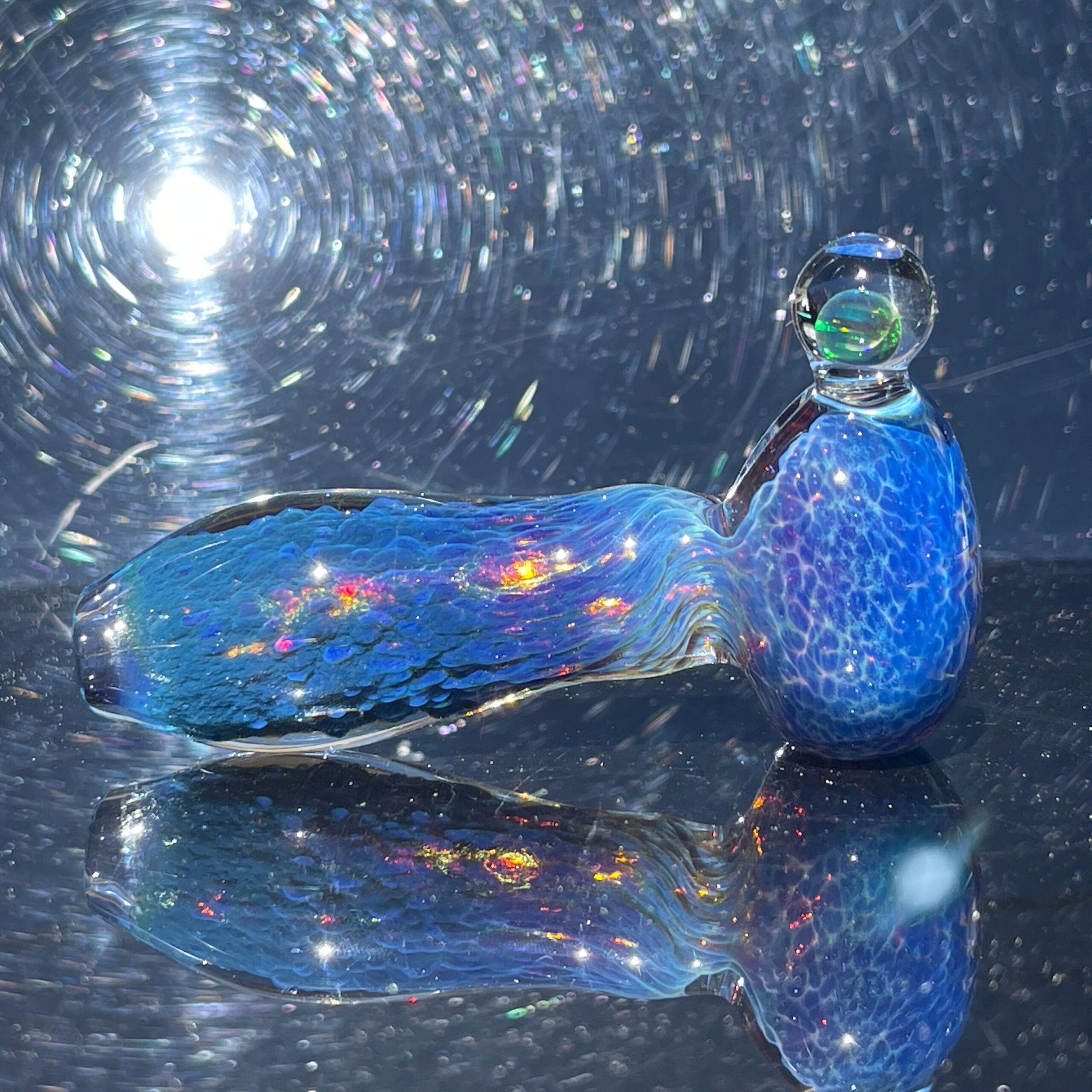 Design: Frit spoon design with embedded Purple Nebula clouds and a large black opal marble.