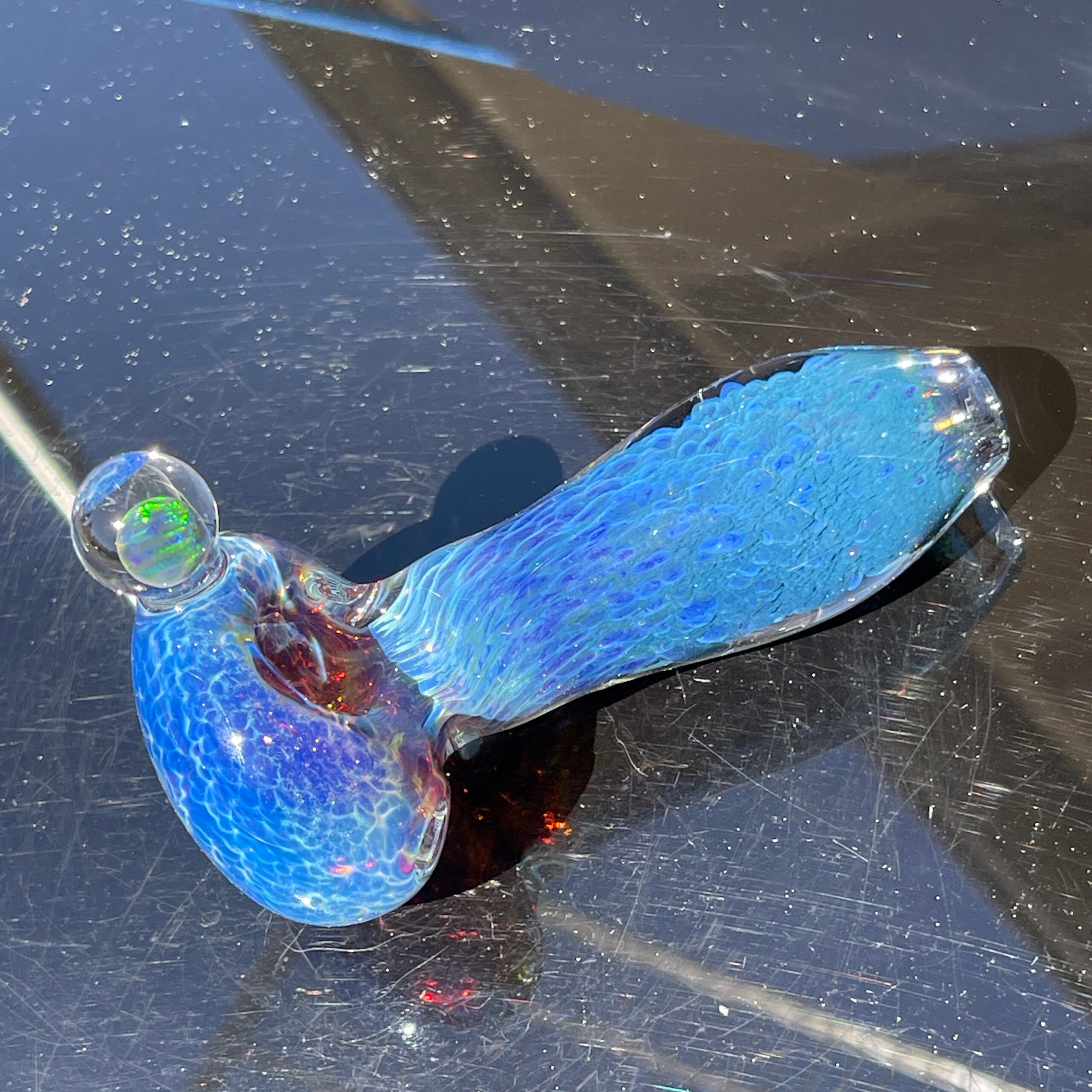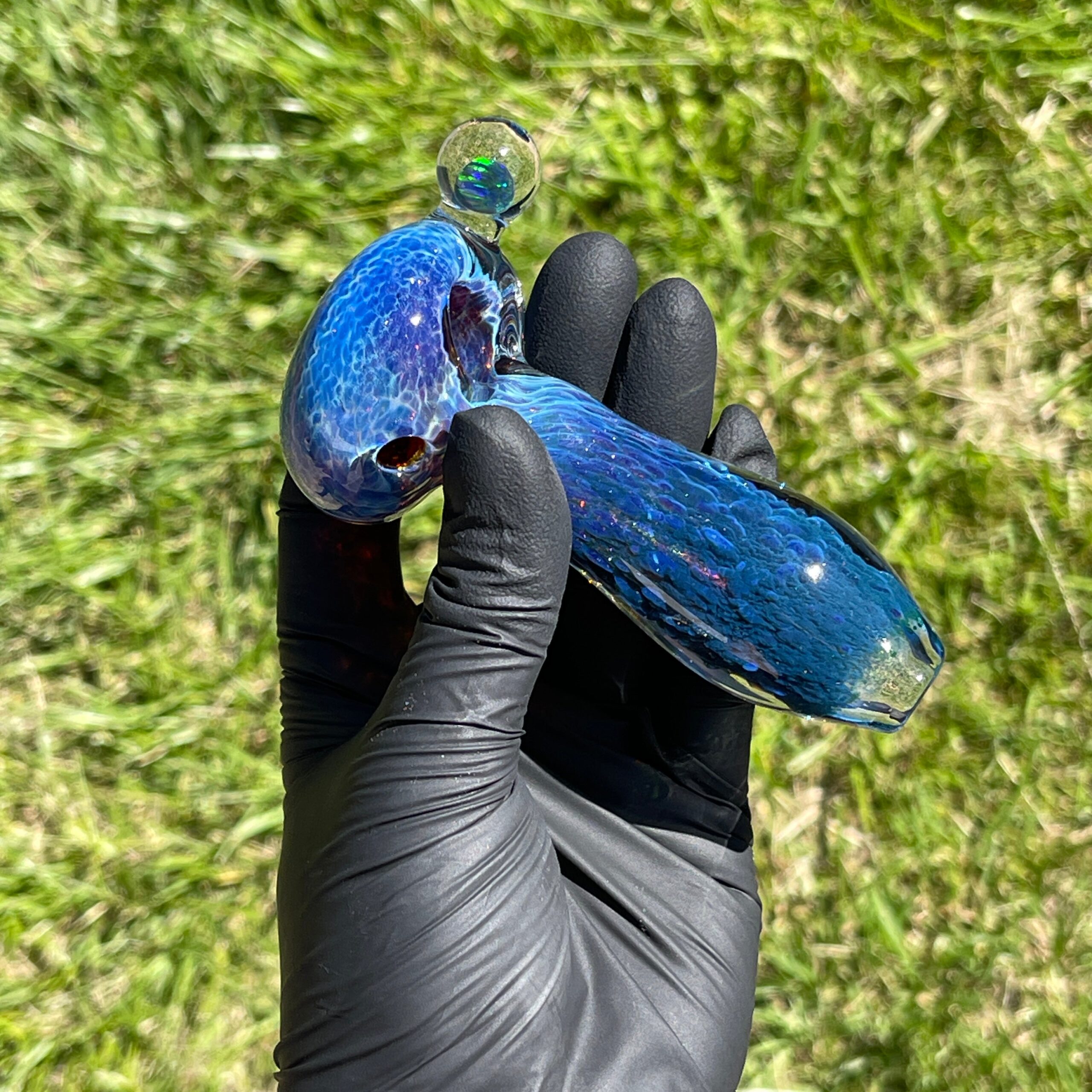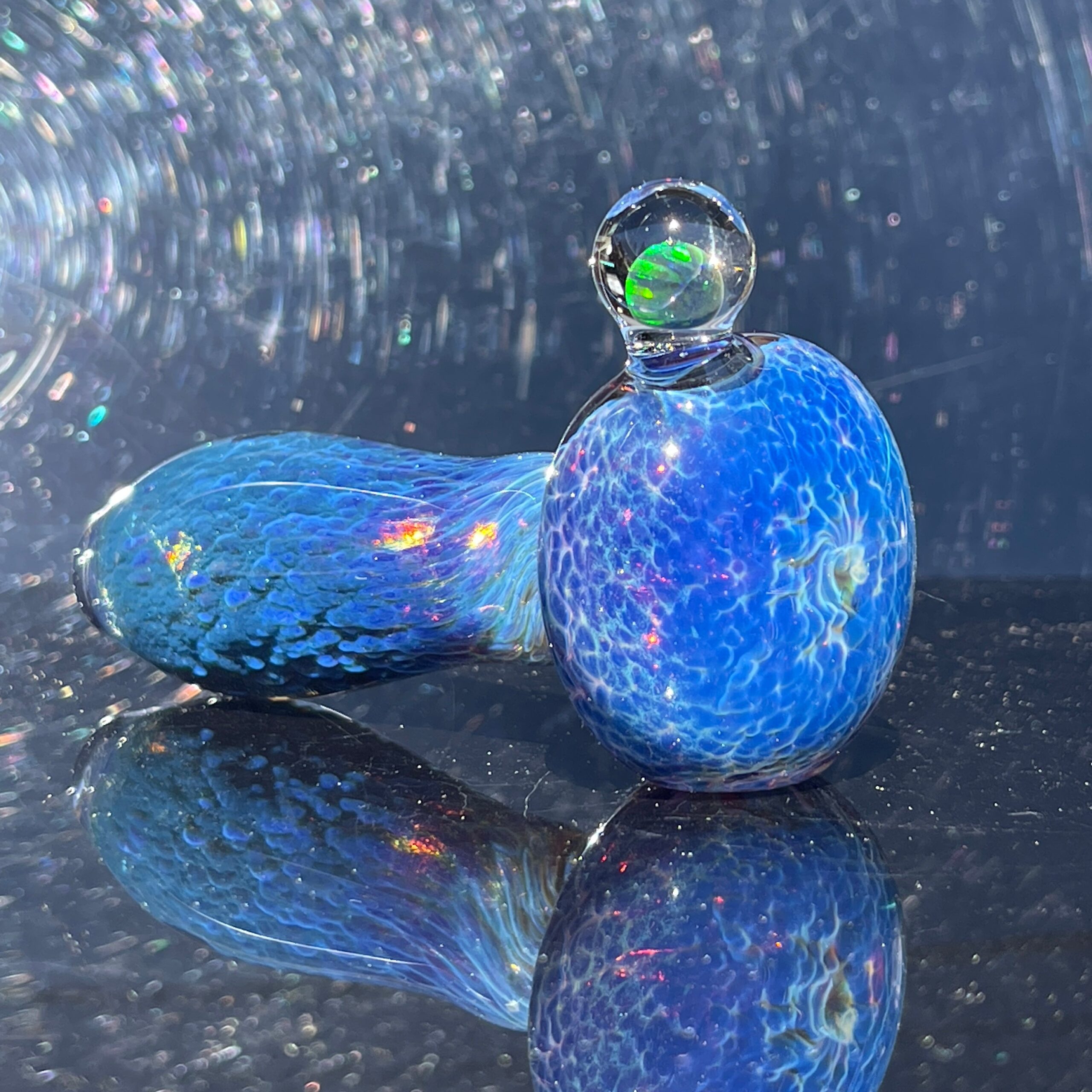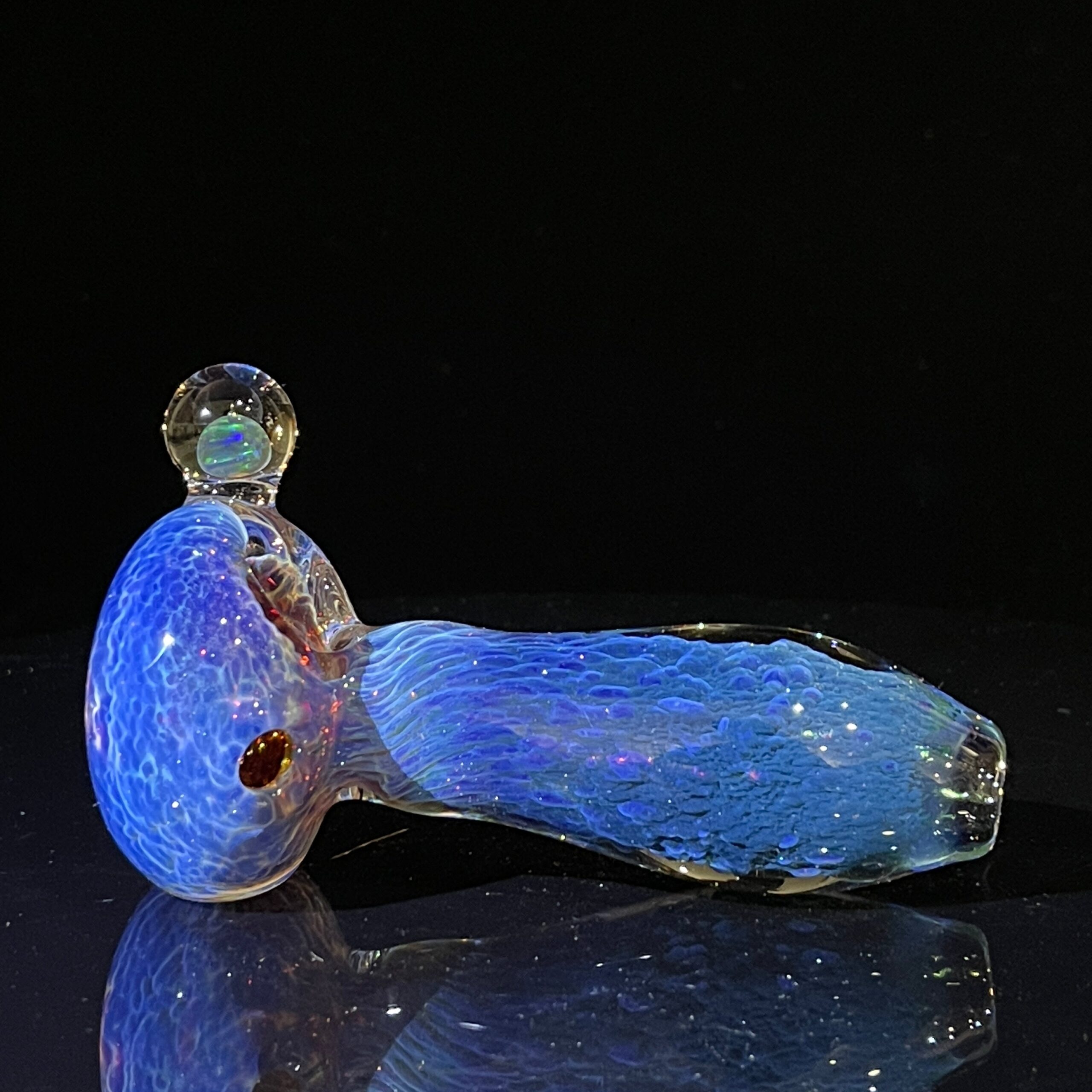 Design: Frit spoon design with embedded Purple Nebula clouds and a large black opal marble.