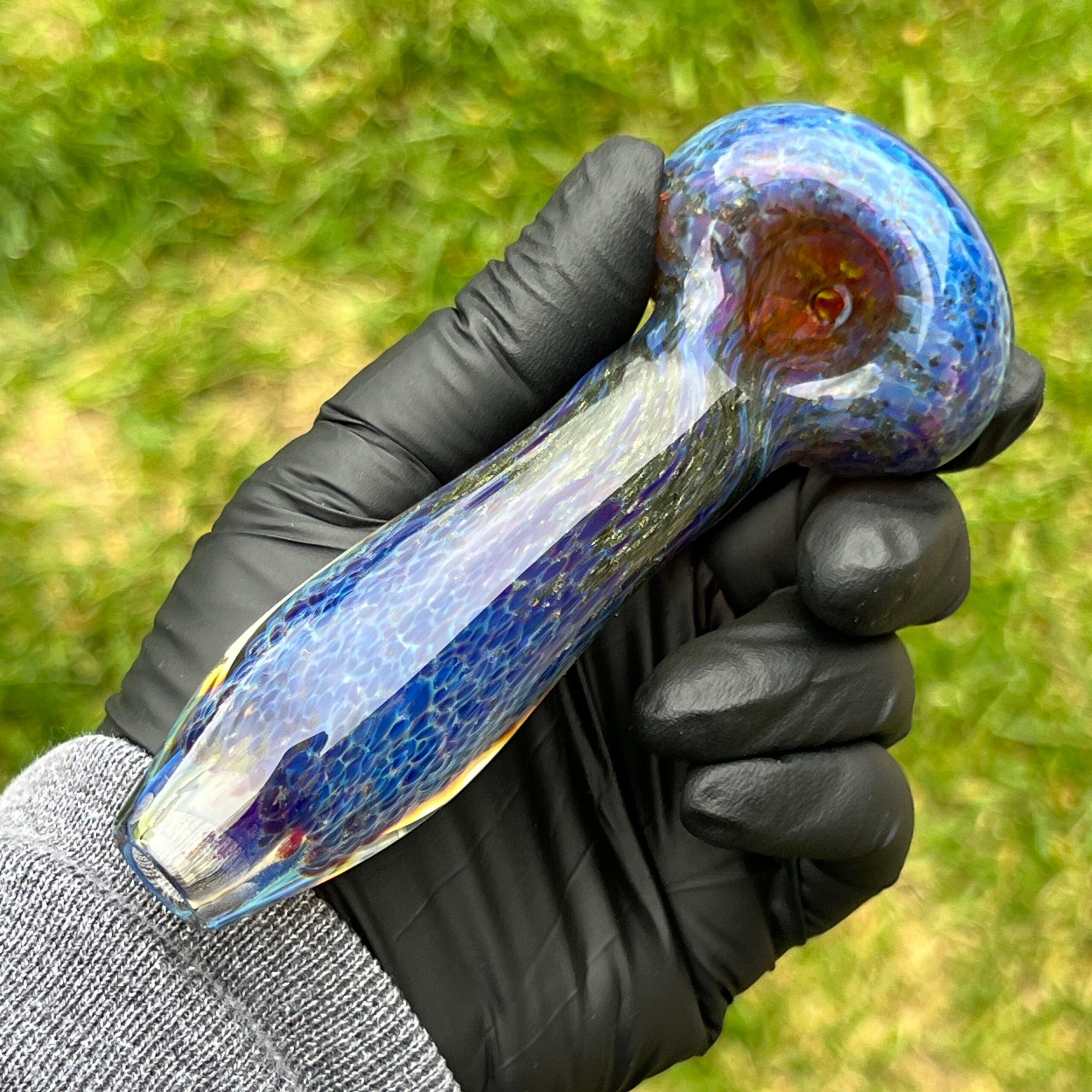 - Exclusive Fuzzy Purple Nebula Clouds: Hand-crafted with my unique frit technique, the swirling nebula design creates a mesmerizing visual spectacle. This isn’t just color; it’s a work of art that transforms your everyday ritual. Unlike mass-produced pipes, each Purple Nebula Pipe is one-of-a-kind, resulting in subtle color variations that add to its unique charm.