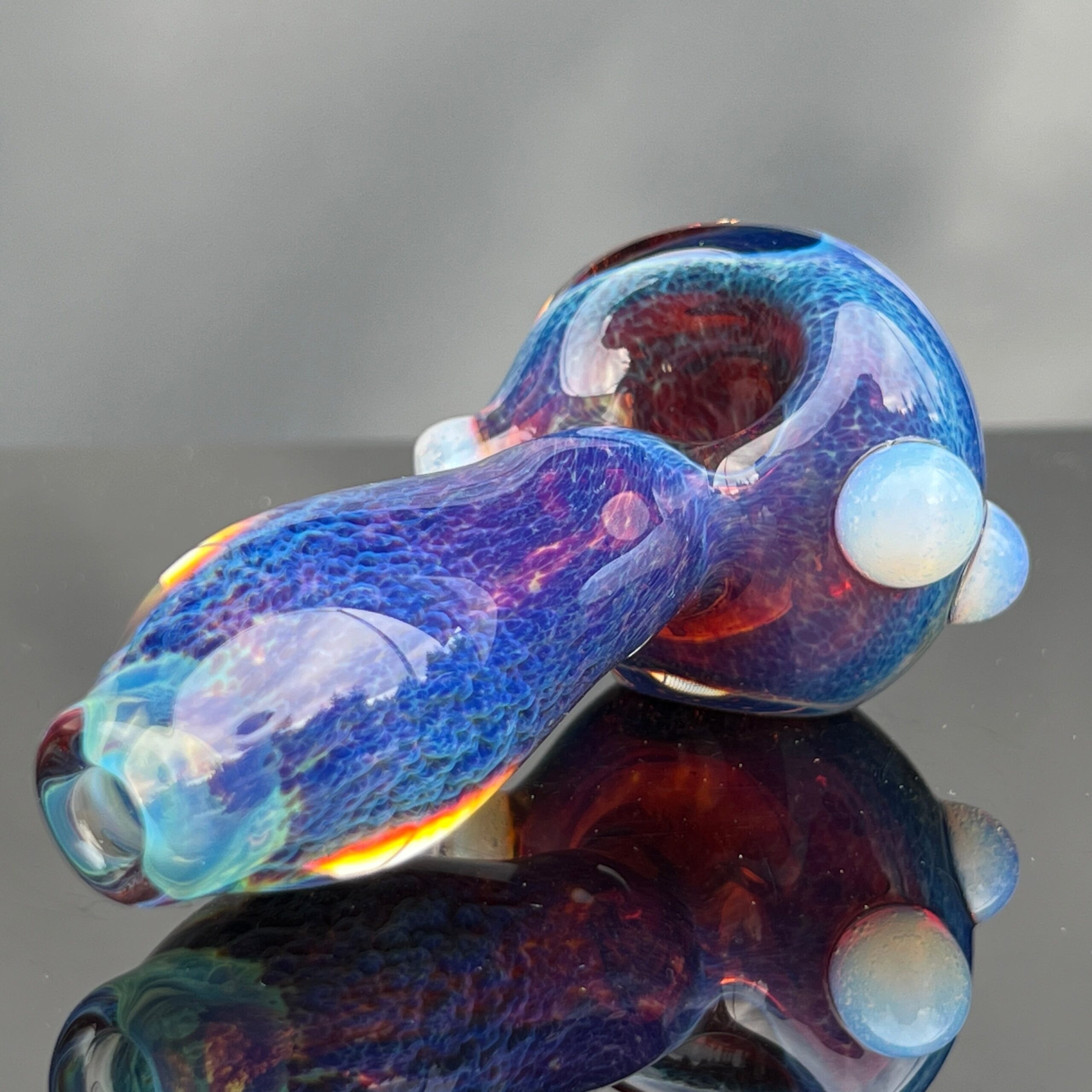 Introducing the Purple Nebula Pipe – a groundbreaking masterpiece that redefines the art of smoking. This isn’t just a pipe; it’s a statement. It’s a journey. It’s the original frit spoon glass pipe that started it all, crafted with unparalleled skill and artistry.