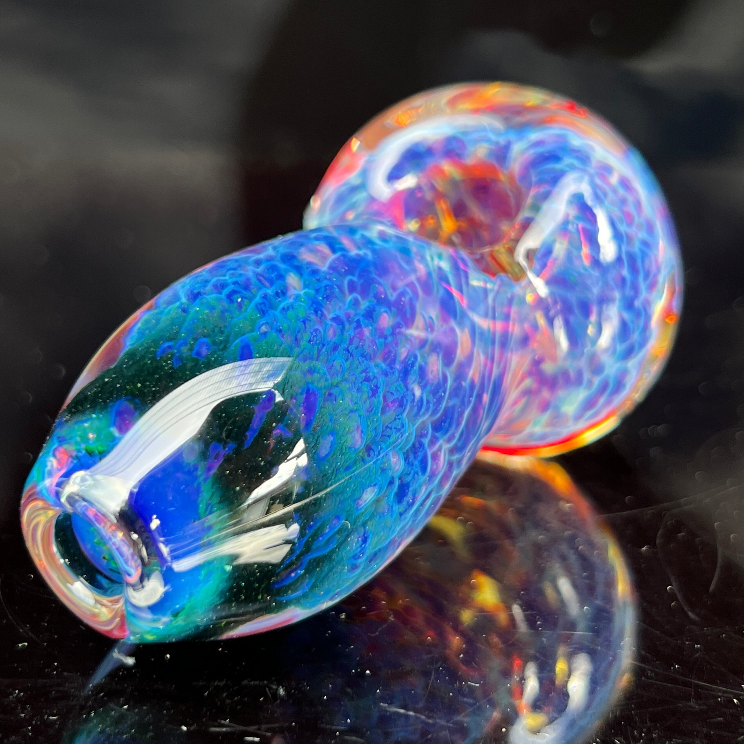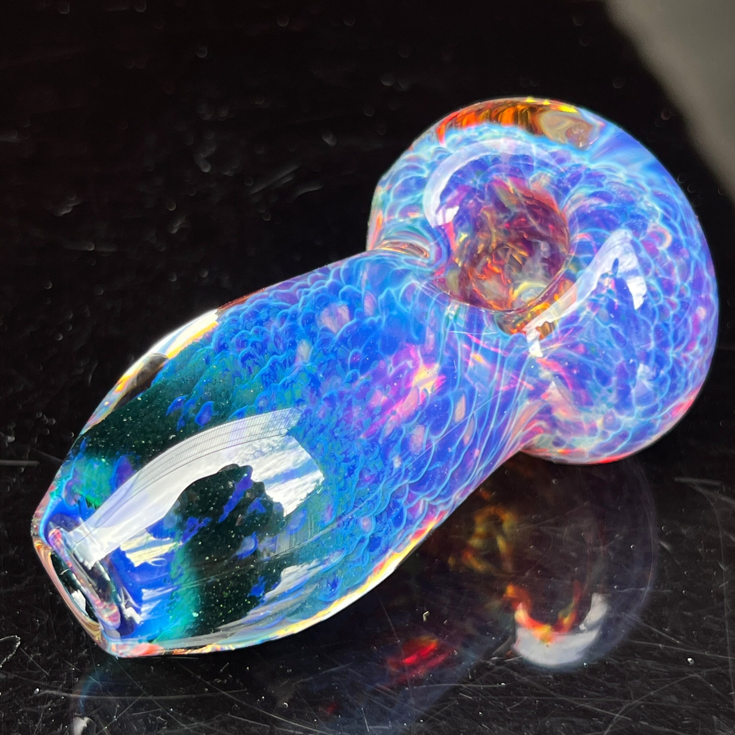 This isn’t your average pipe. The Purple Nebula Pocket Pipe is a thick, durable glass frit spoon, meticulously crafted with our exclusive fuzzy purple cloud design. Its compact size allows you to effortlessly slip it into your pocket, making it the perfect companion for any adventure. But what truly sets it apart is its captivating color-changing feature. With each use, the vibrant purple hues intensify, gradually revealing electrifying blues – a unique and personal evolution that reflects your vaping journey.