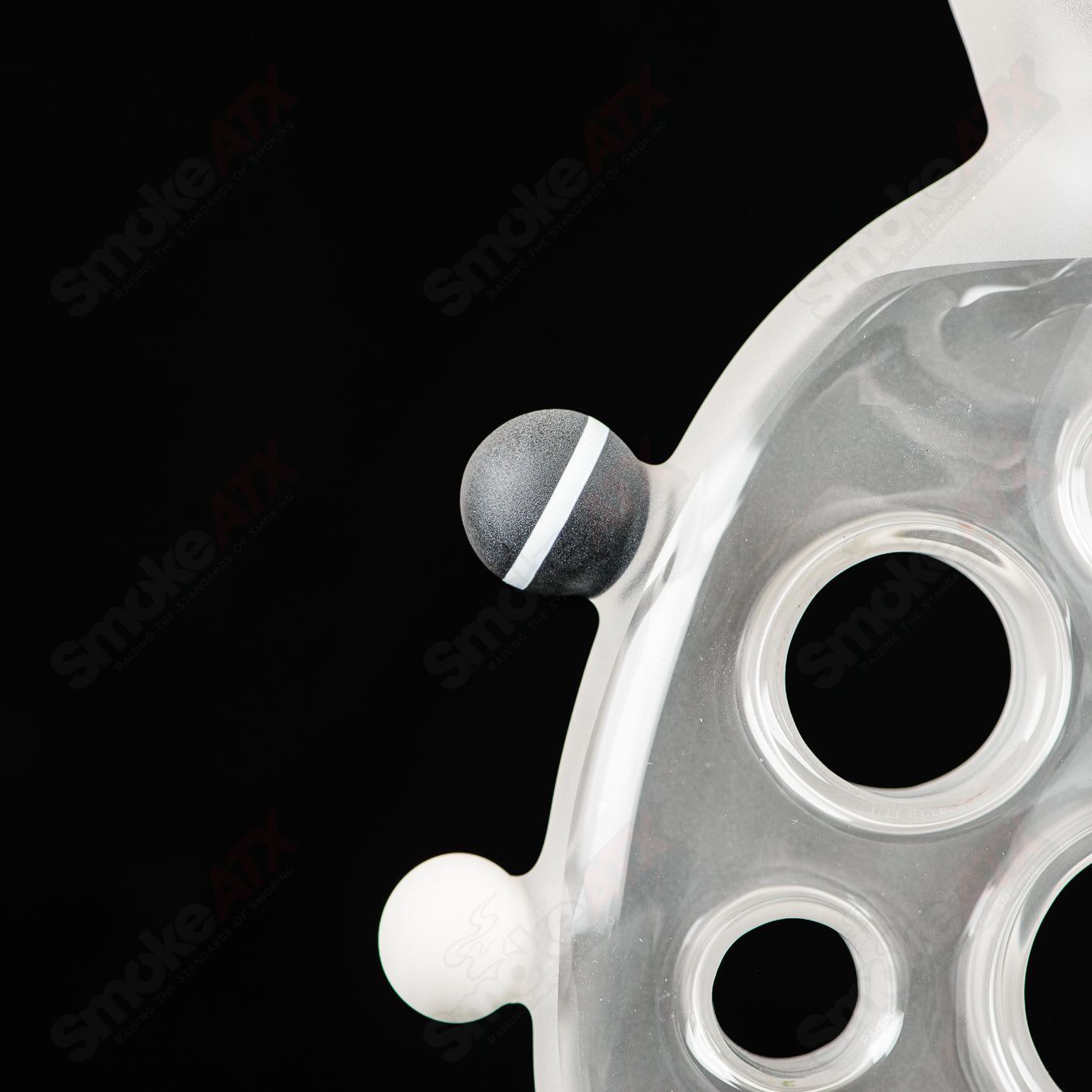 Introducing the Swiss Perc – 1 of 1 “B&W” XXL Classic w/Dizzle, KurtB & CaC – a groundbreaking collaboration that redefines the art of smoking. This isn’t just a water pipe; it’s a handcrafted masterpiece, a testament to the synergy of three visionary artists: Nate Dizzle, Kurt B., and Carlson Jones.