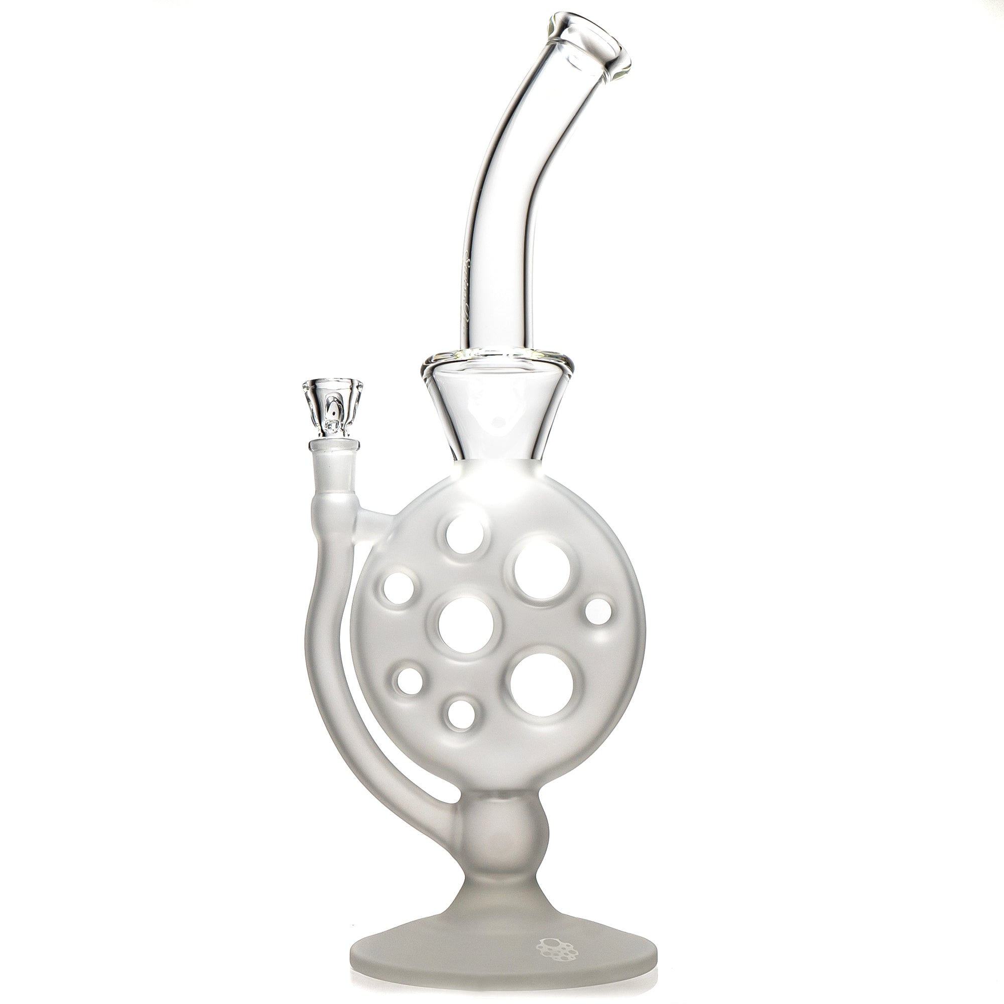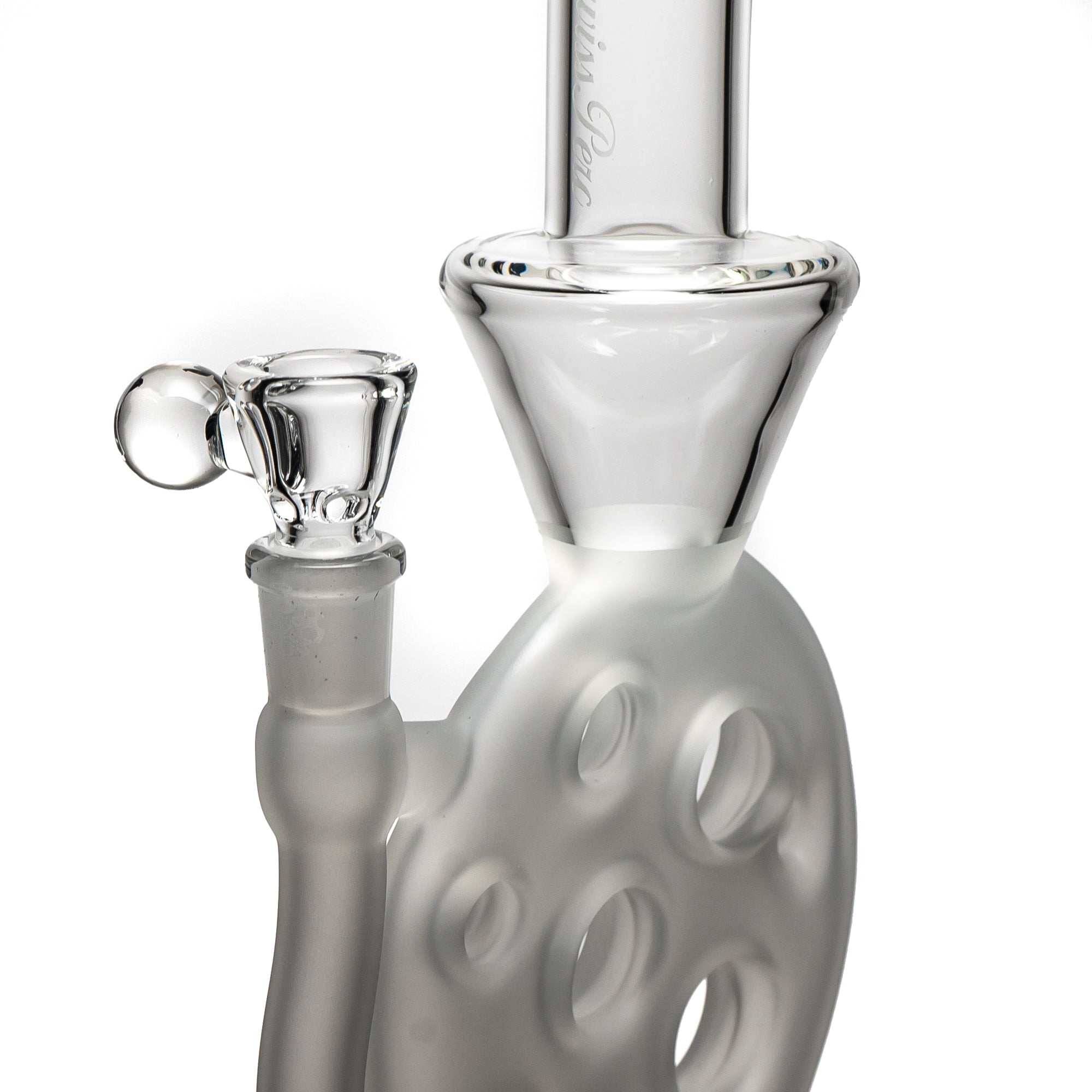 The Swiss Perc – Mini Side Feeder – Blasted – 8 Seal is constructed from high-quality borosilicate glass, known for its durability and resistance to heat. Its sophisticated design makes it both visually appealing and incredibly functional.