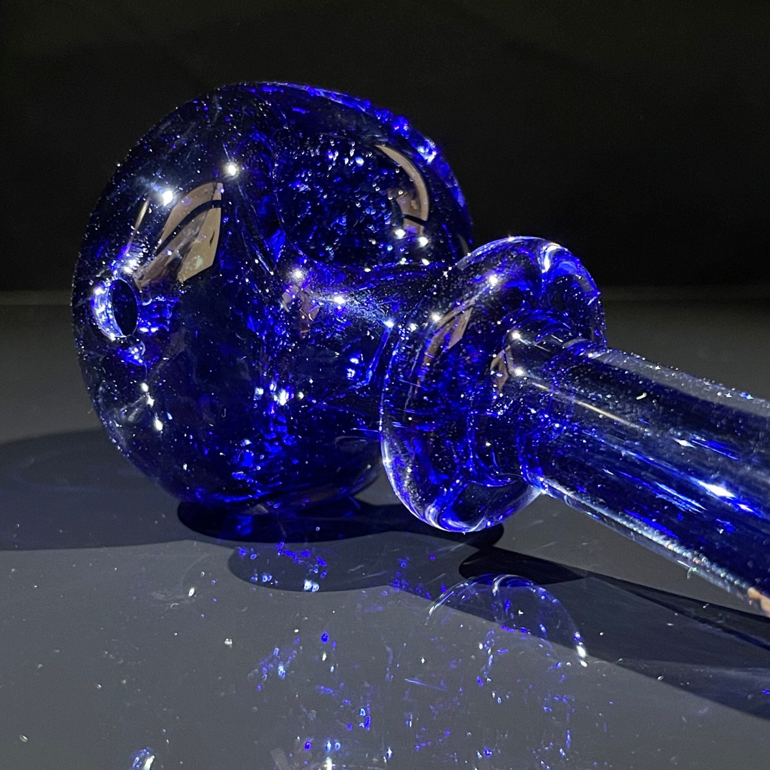 - Stunning Blue Frit Design: The mesmerizing blue frit coloring is more than just aesthetically pleasing; the unique way light plays through the color adds a dynamic visual element to your vaping experience. The color intensifies and deepens with use, making your pipe uniquely yours.