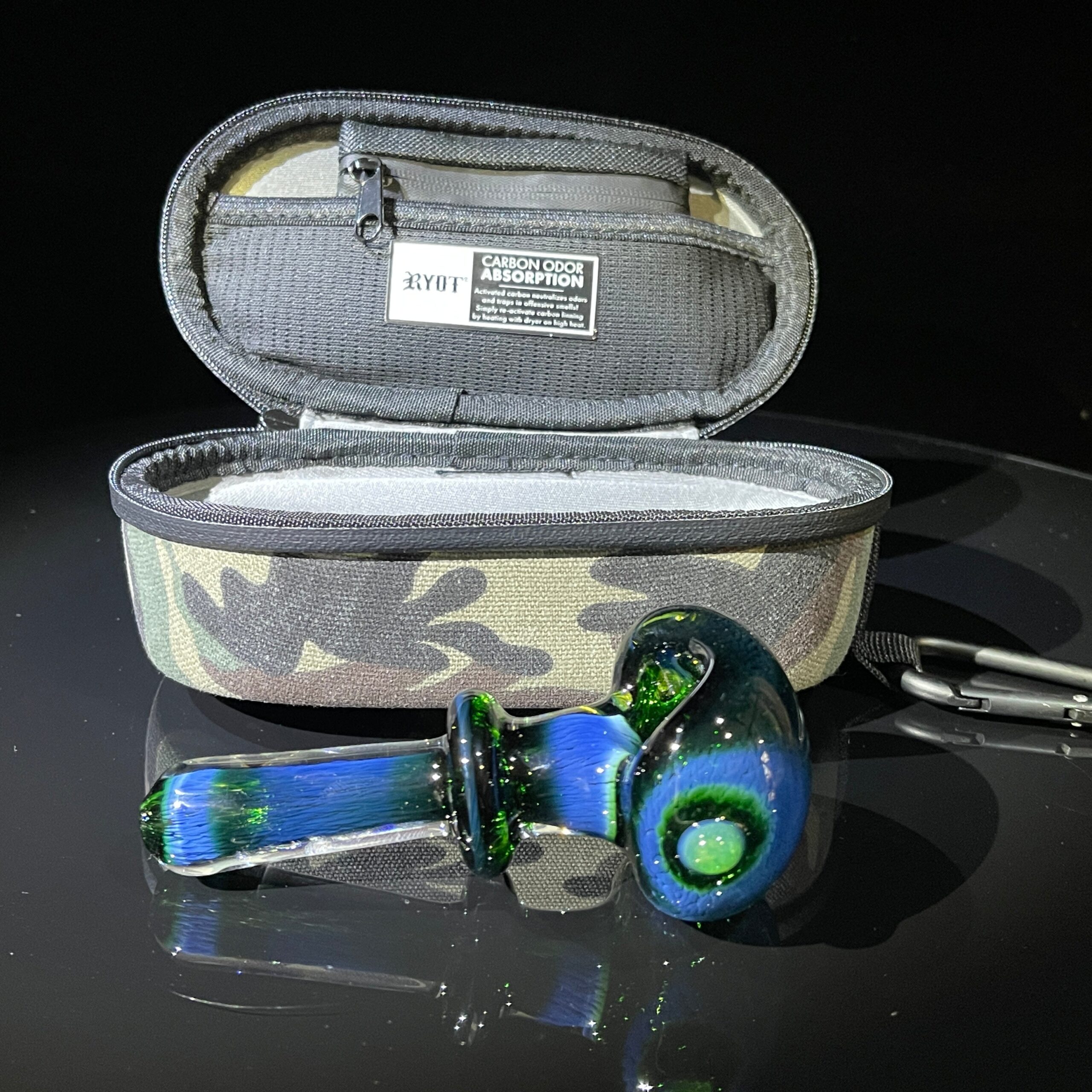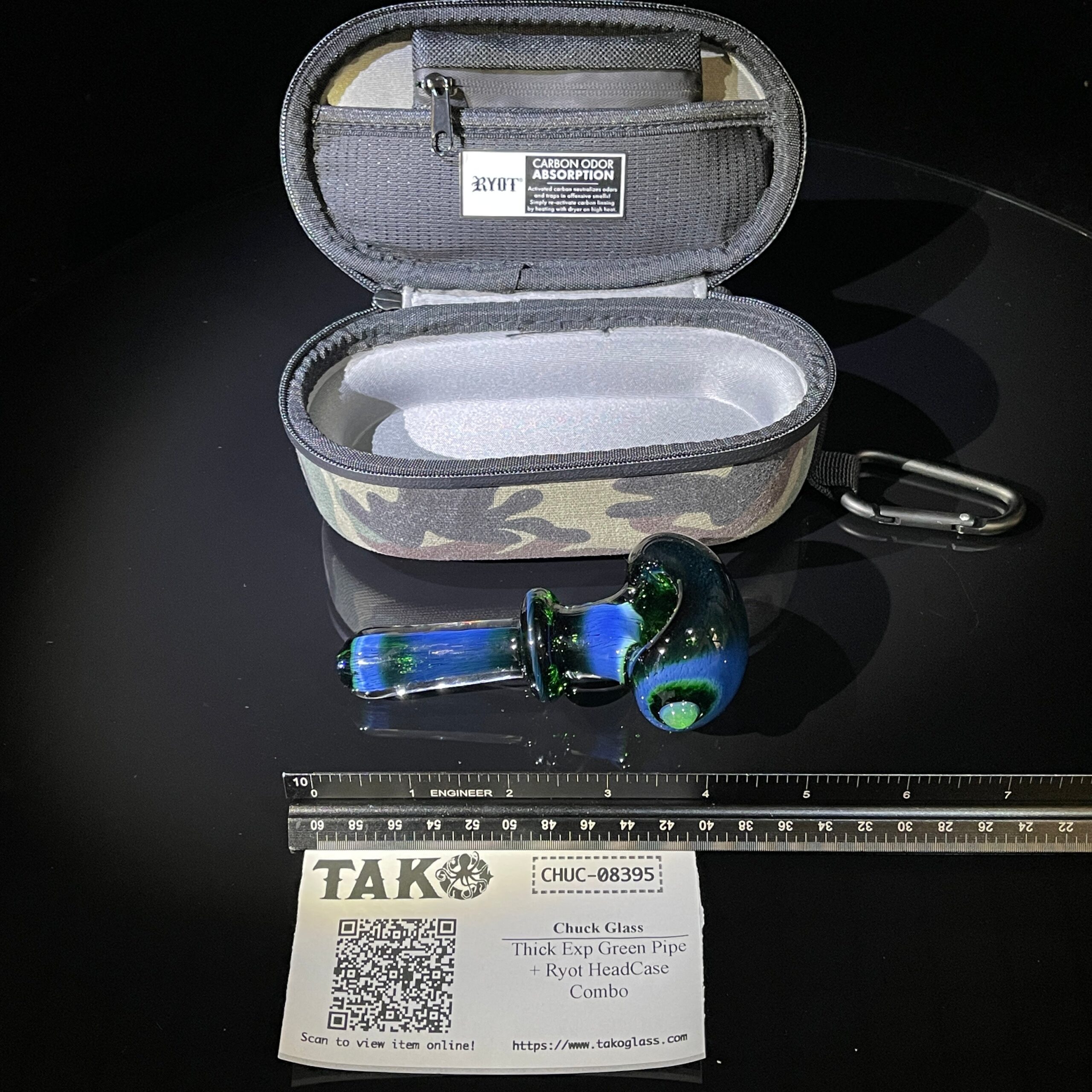 This combo unites a stunning, hand-crafted Thick Exp Green Pipe with the revolutionary Ryot HeadCase, creating an unparalleled smoking and storage experience. Let’s dive into the details: