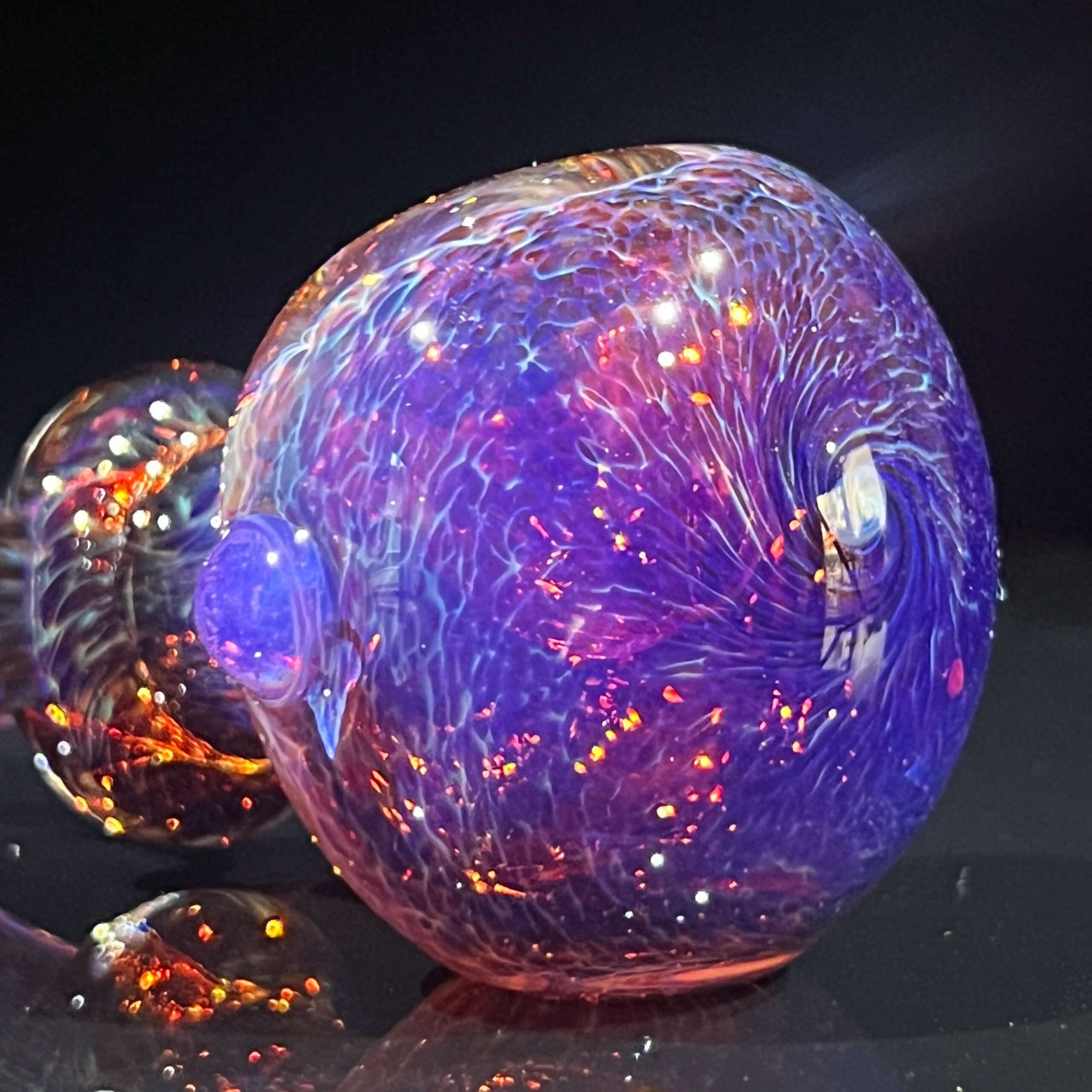 The pipe’s innovative design incorporates an array of functional pink slime marbles, providing a secure and comfortable grip. These marbles, resembling dew drops on a crystal, not only enhance the aesthetic appeal but also prevent slippage, ensuring a superior vaping experience. The “fat maria” (presumably a wider, comfortable mouthpiece) further contributes to the pipe’s ergonomic excellence.