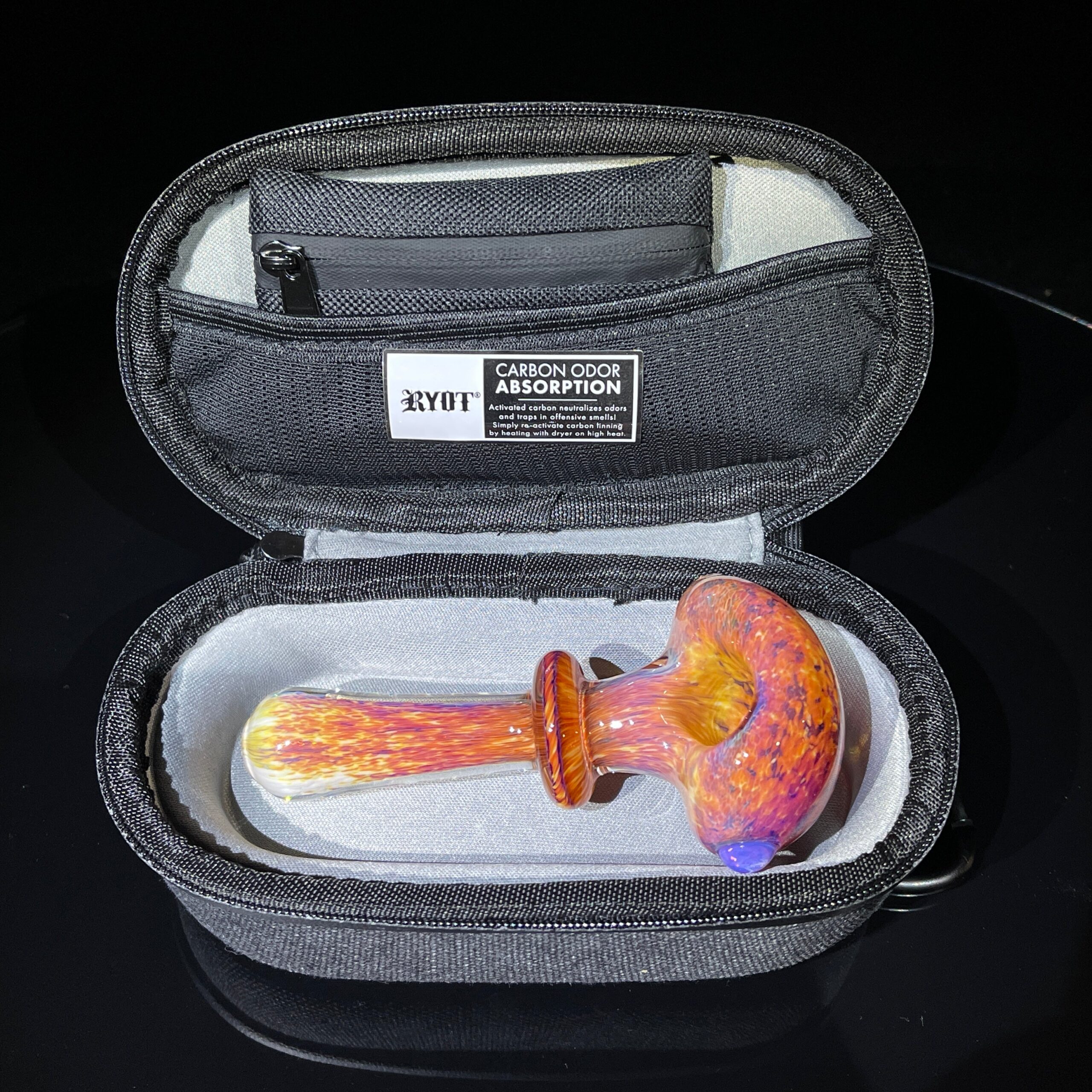 Cleaning your pipe is simple. After each use, gently tap out any ash or residue. For a deeper clean, use isopropyl alcohol and a pipe cleaner. Regular cleaning will maintain the pipe’s vibrant colors and ensure optimal performance. The Ryot HeadCase can be spot-cleaned with a damp cloth. For odor reactivation, simply place the case in the dryer for 5 minutes, as mentioned above.