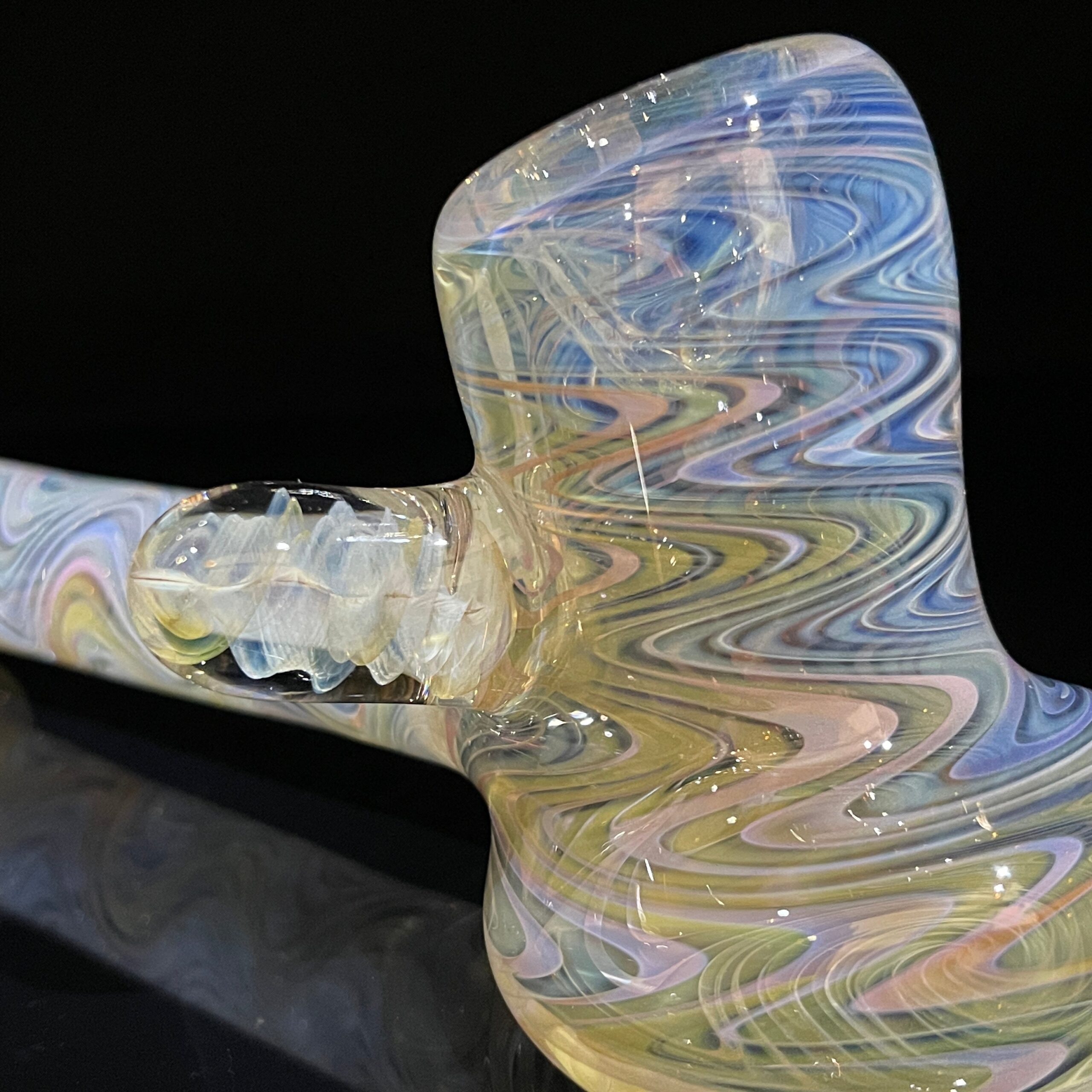 Keeping your Twisted Fume Hammer clean is easy. Simply wipe down the exterior with a damp cloth after each use. For deeper cleaning, use a pipe cleaner and isopropyl alcohol to gently clean the inside of the mouthpiece and carb.