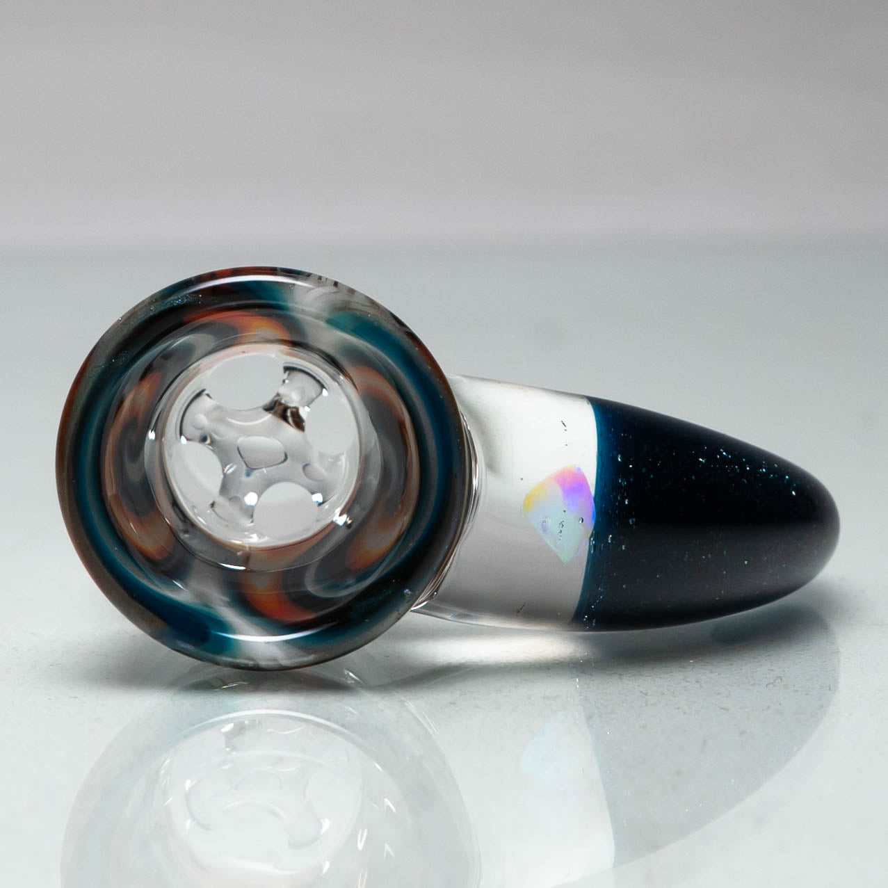 Tired of clunky, restrictive airflow that leaves your vape feeling underwhelming? Introducing the Unity Glassworks – 4 Hole Worked Opal Horn Slide – 18mm – Fire Ice & Blue Stardust – a groundbreaking solution for vapers seeking a superior, personalized experience.
