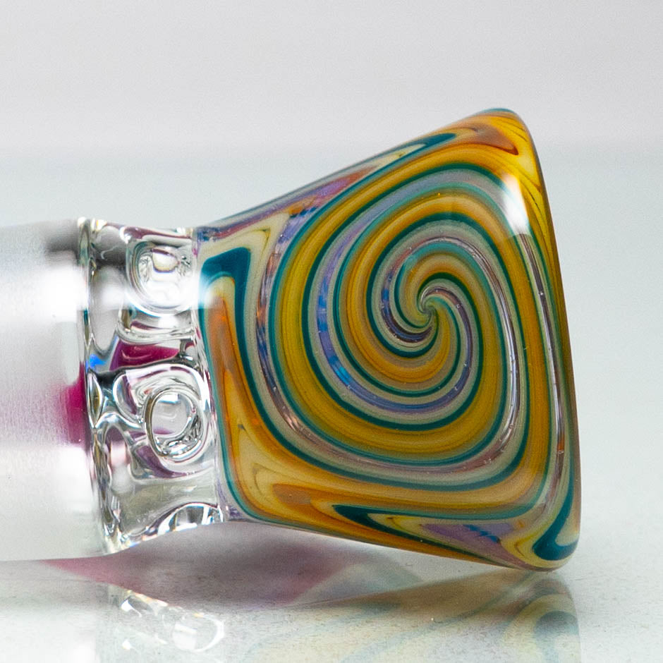 Tired of clunky, restrictive airflow that ruins your vaping experience? Introducing the Unity Glassworks – 4 Hole Worked Opal Horn Slide – 18mm – Yellow Blue & Stargazer, a groundbreaking solution designed for unparalleled smooth draws and breathtaking aesthetics.