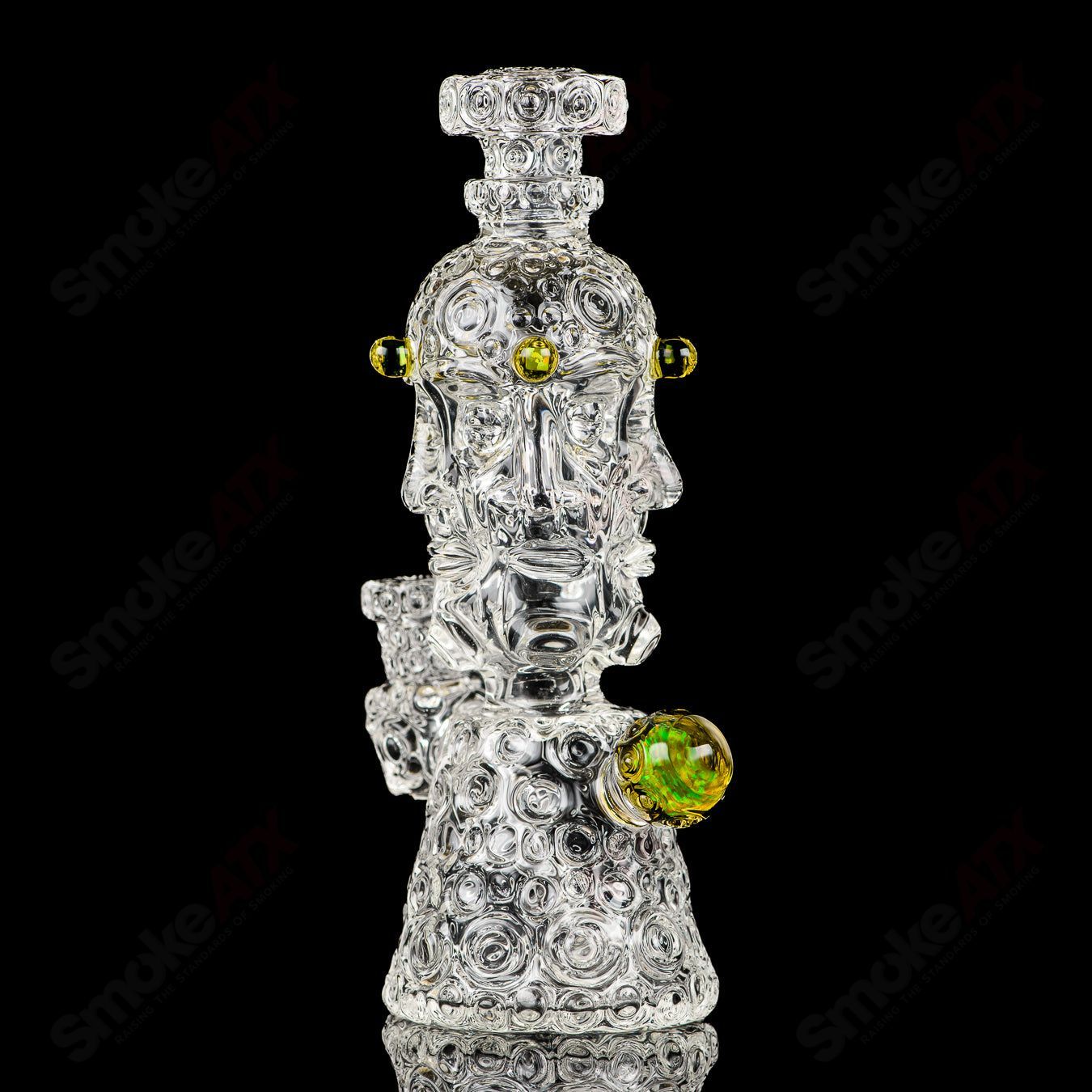- Intricate Tiki-Inspired Design: The Watch Tower’s captivating design features five elongated Tiki-like faces, each with a unique expression. This stunning visual artistry adds a touch of mystique and personality to your vaping routine, setting it far apart from generic devices.