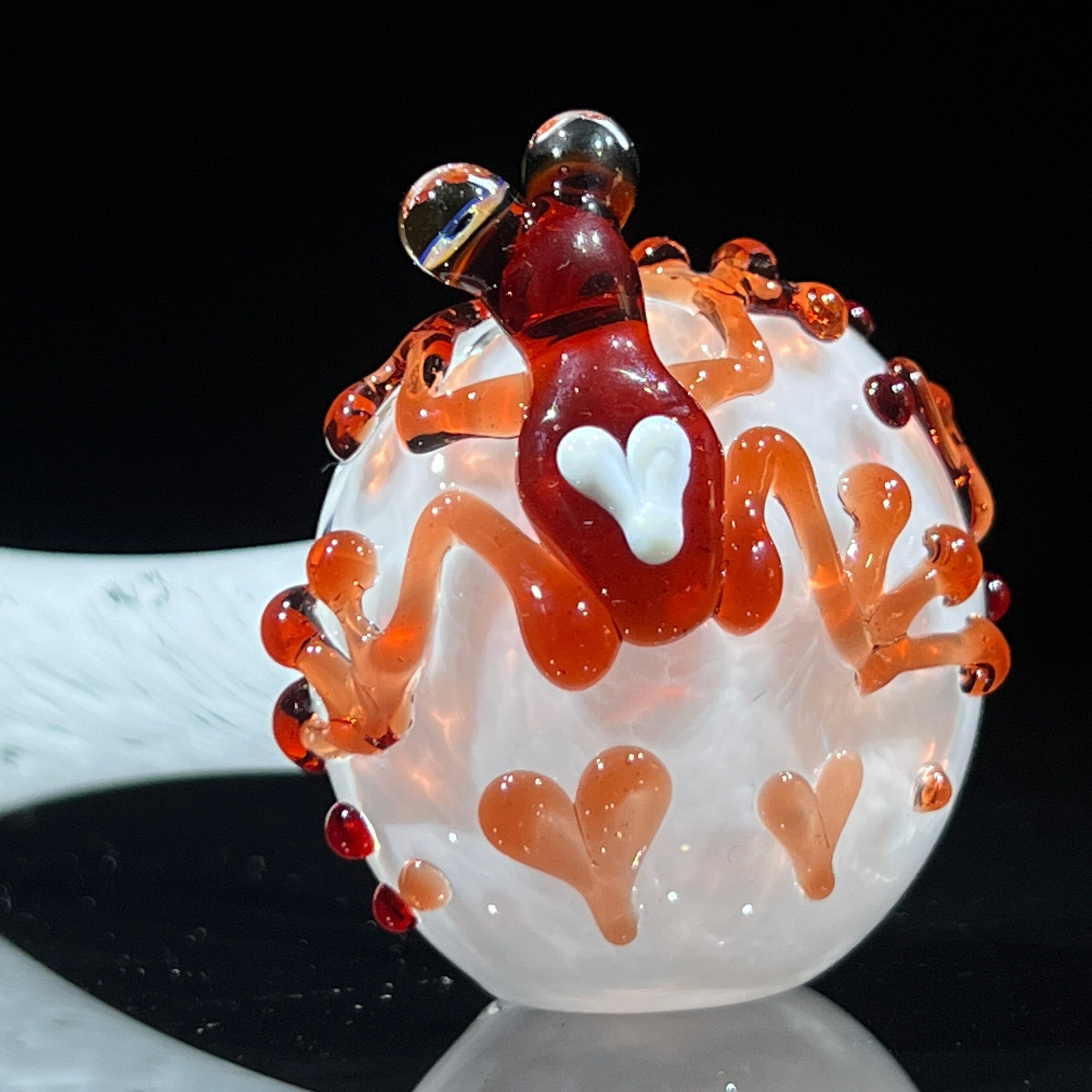 - Red Hand-Laid Hearts: Delicate red hearts meticulously hand-laid around the bowl and mouthpiece add a touch of romance and exquisite detail. This attention to detail sets the Valentine’s Day Frog Pipe apart from mass-produced vapes.