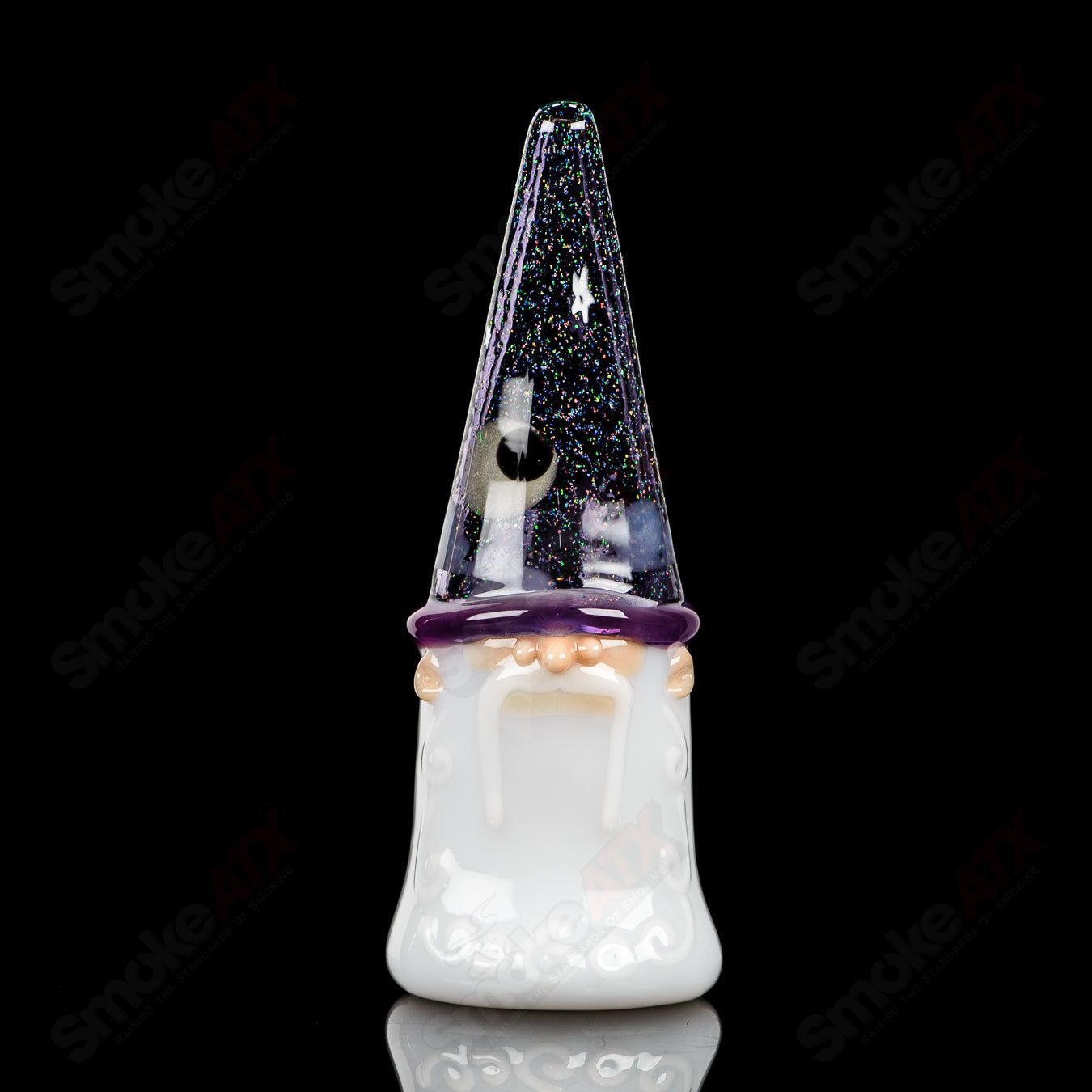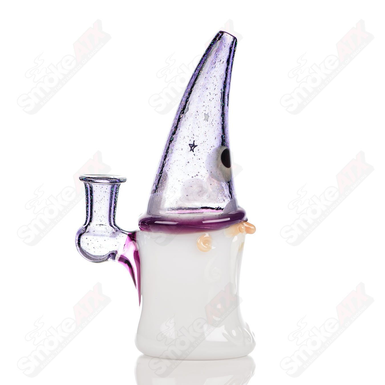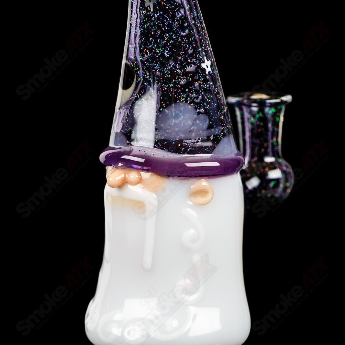 The Warlock Jammer Stargazer is meticulously handcrafted from high-quality borosilicate glass, known for its durability and heat resistance. Its dimensions are approximately L 3.25″ x W 2.25″ x H 6.25″.