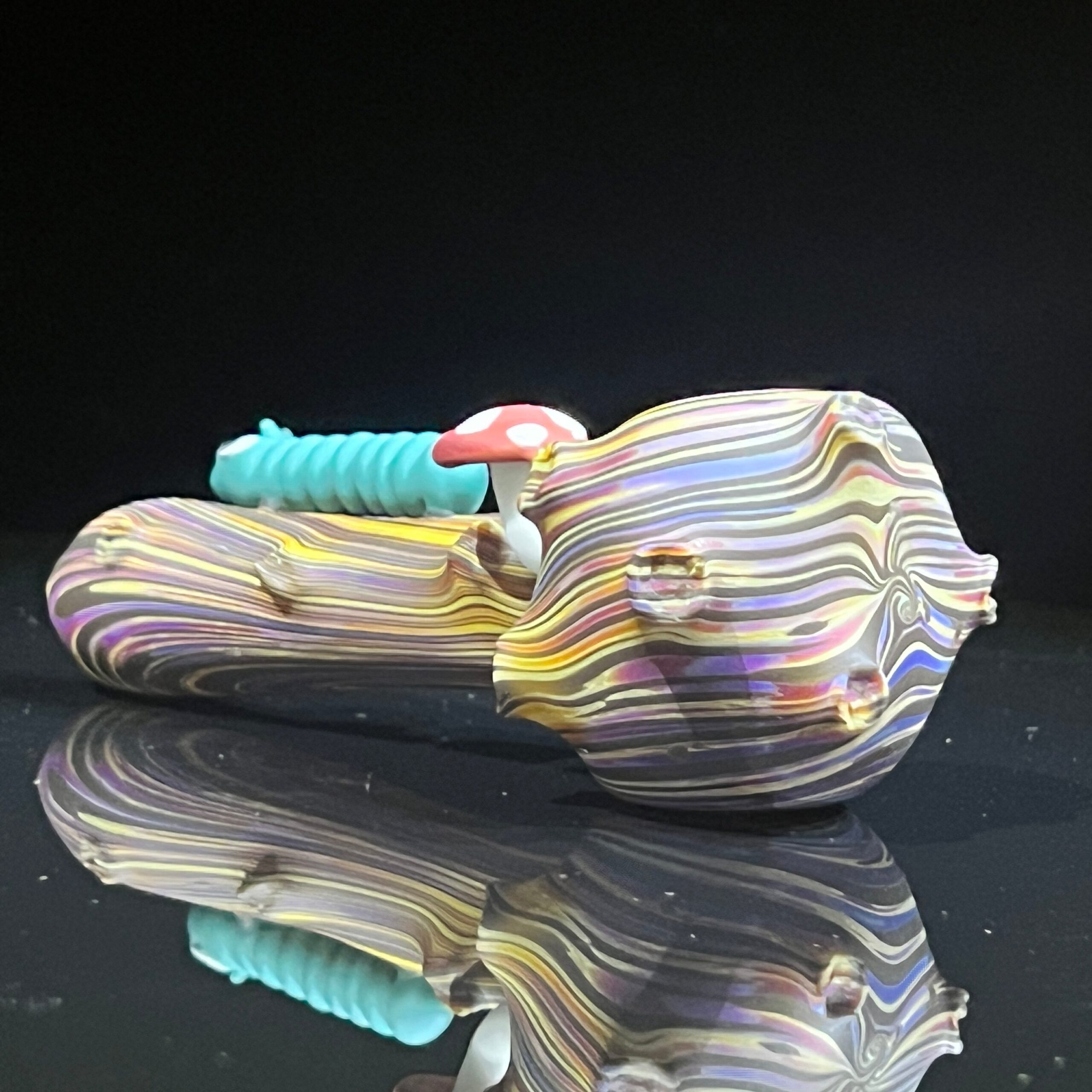 - Sandblasted Glass Body: The pipe’s body is meticulously sandblasted, creating a unique, earthy texture reminiscent of a naturally weathered mushroom. This not only enhances the aesthetic appeal but also provides a comfortable, non-slip grip.